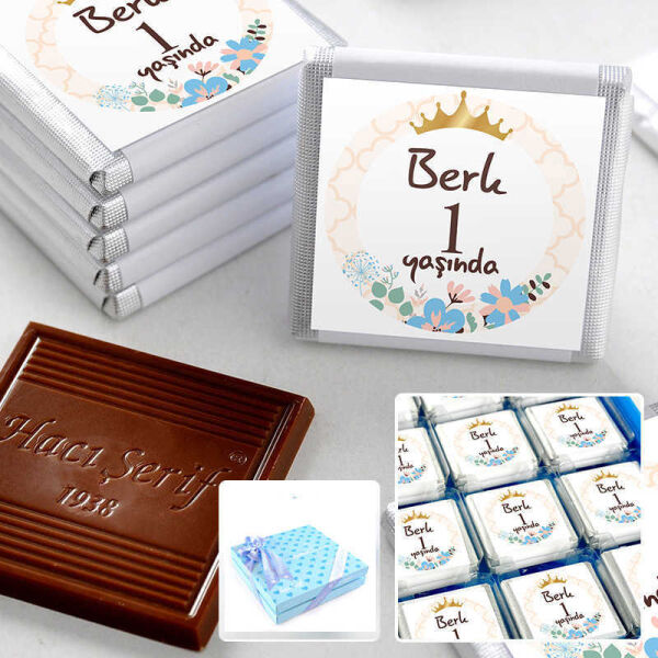Bebeğinizin 1 yaşı için isimli 32 adet madlen çikolata (Etikette 1 yaş-2 yaş-3 yaş gibi değişiklik yapılabilir)