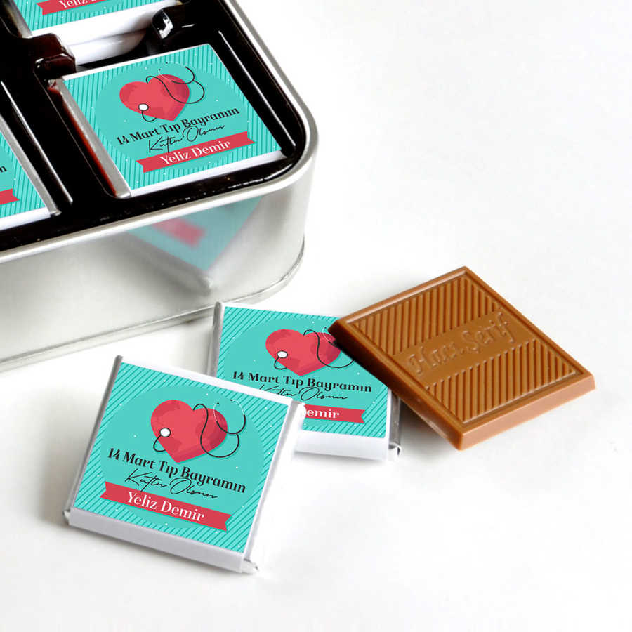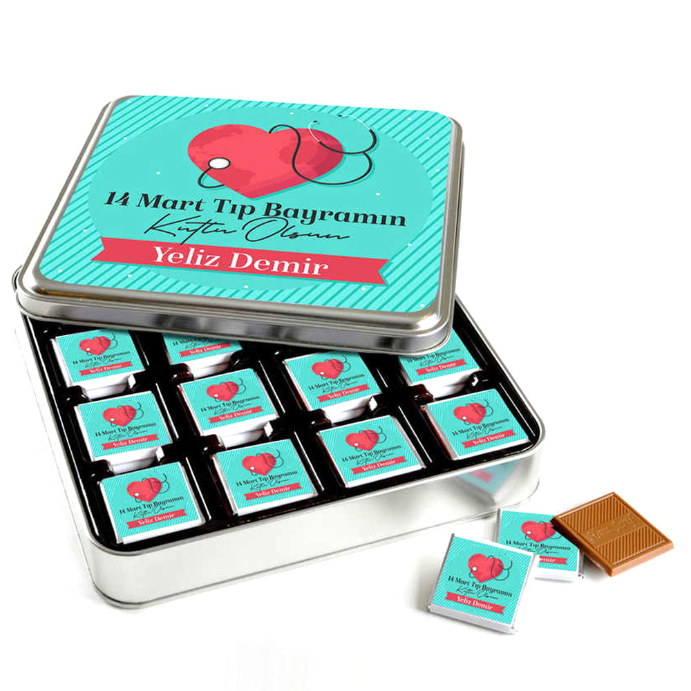 Kutu kapak üzerine ve madlen çikolatalara 14 Mart Tıp Bayramı mesajı yapıştırılarak gönderim yapılır.
