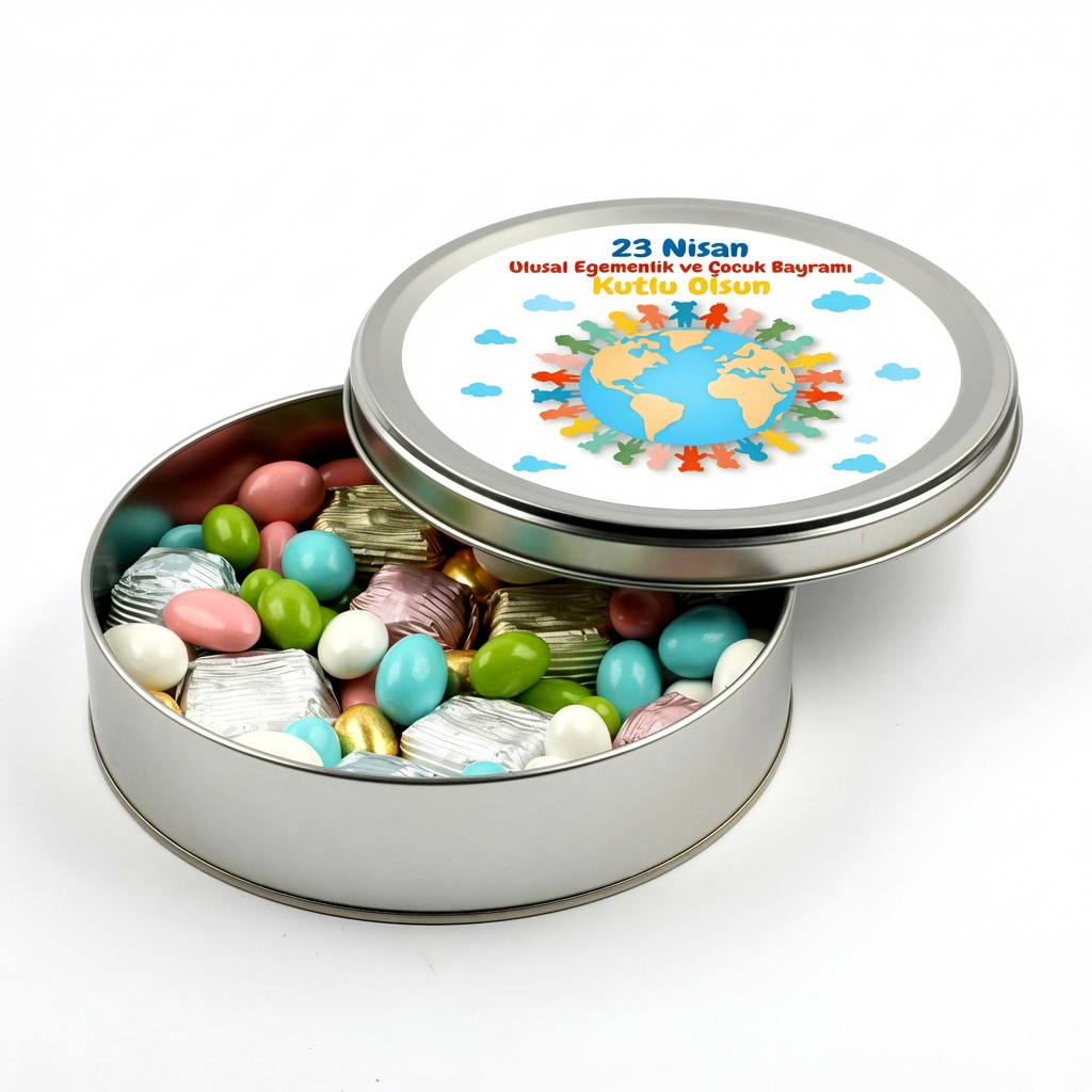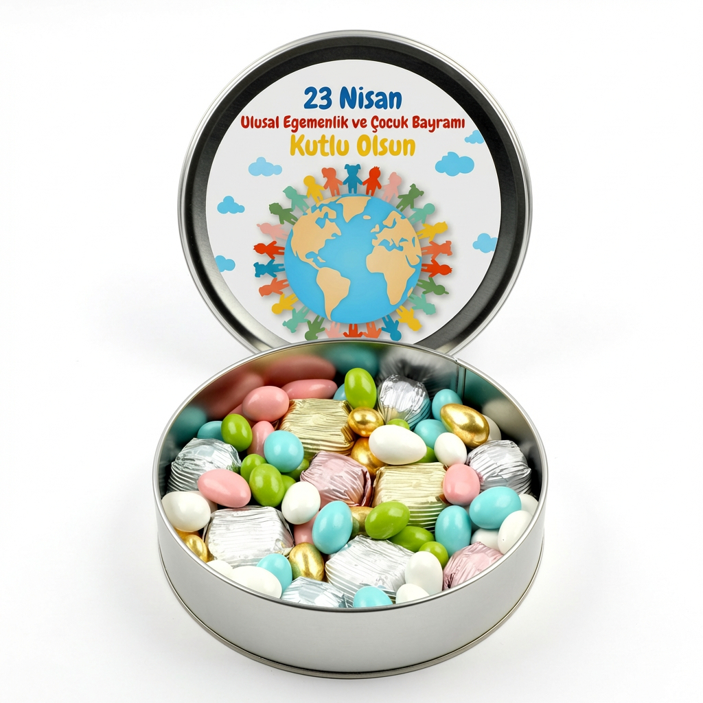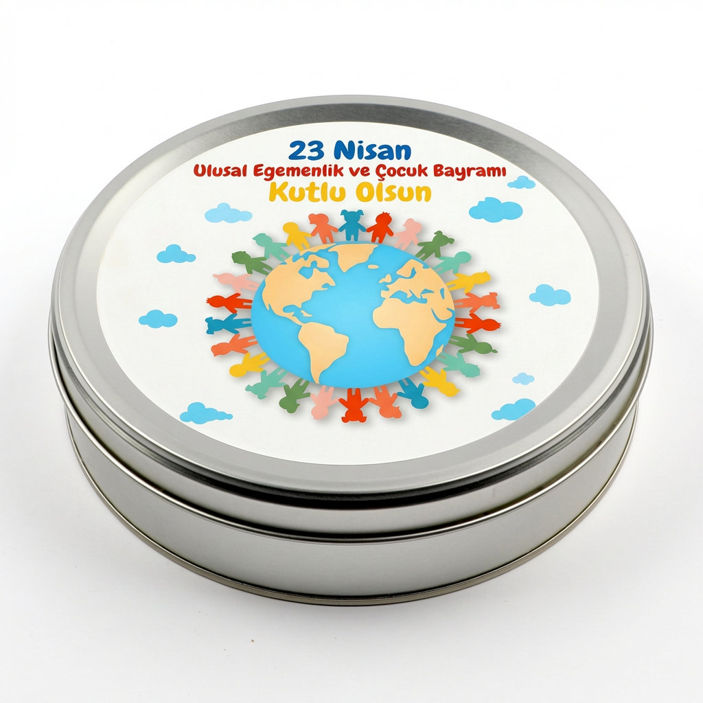 Metal kutu üzerinde 23 Nisan'a özel çalışma bulunmaktadır.