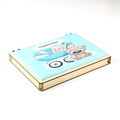 Ahşap Dekorlu Kutuda Erkek Bebek Çikolatası (48 Adet Madlen Çikolata)