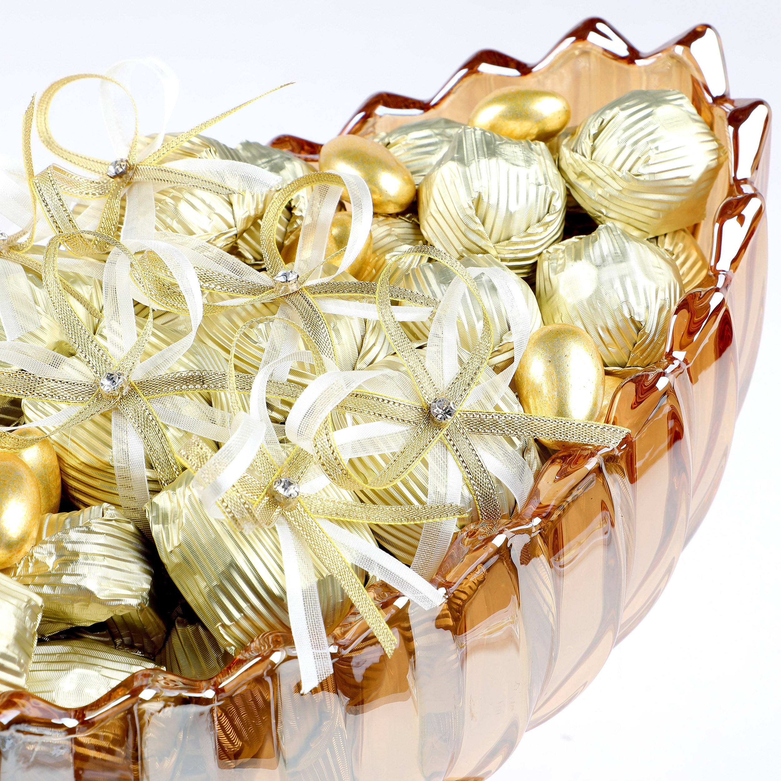 Altın Ayaklı Oval Cam Tabak Söz Nişan Kız İsteme Çikolatası