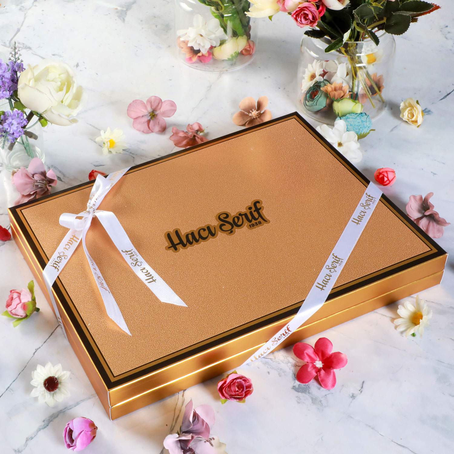 Altın renkli hediye kutusunda, aynı renkli çantasında ve kurdele yapılarak gönderilmektedir.