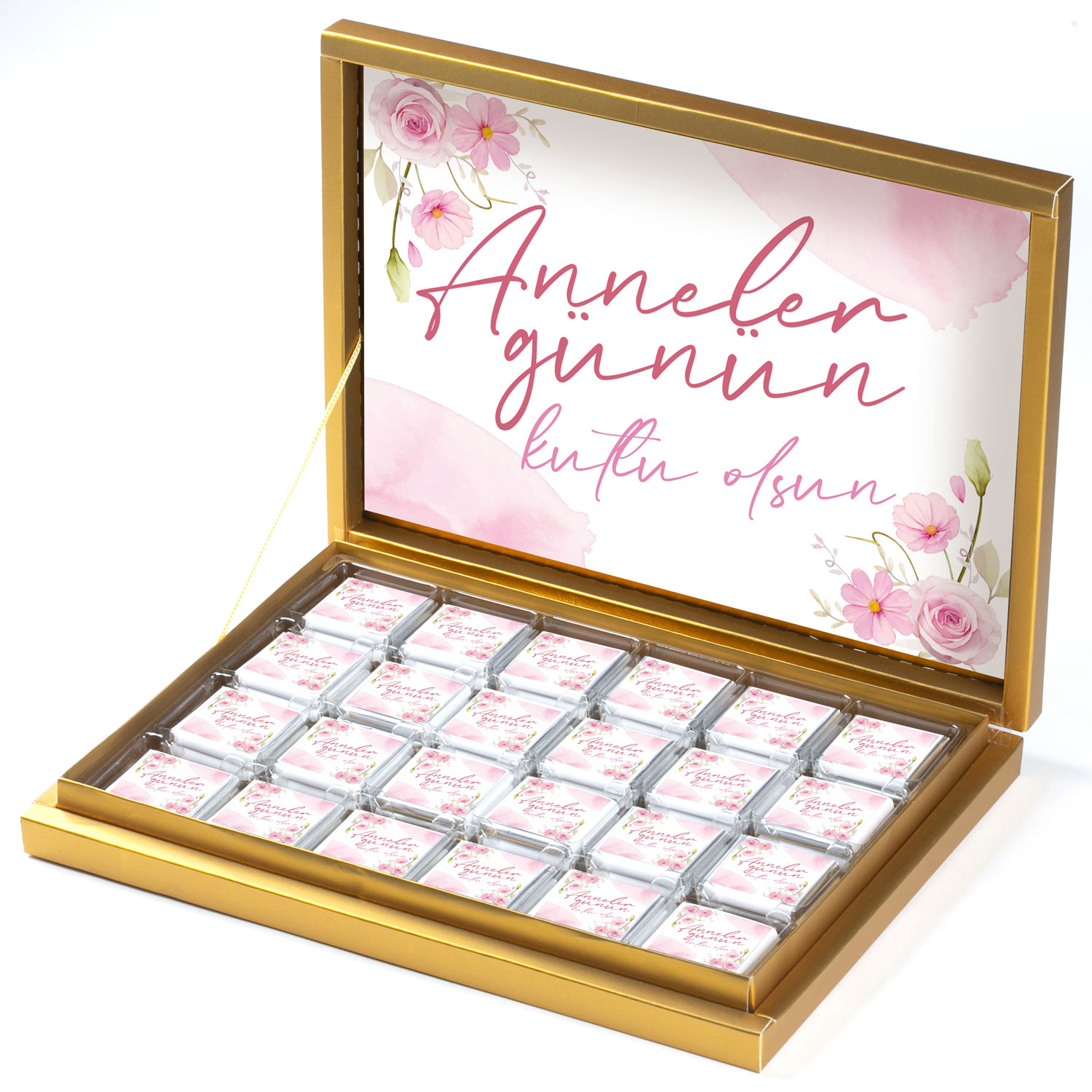 Gelince Haber Ver48 adet sütlü madlen çikolata (340gr) üzerine ve kapak içine "Anneler Günün Kutlu Olsun" mesajı yapıştırılarak Gönderilir.