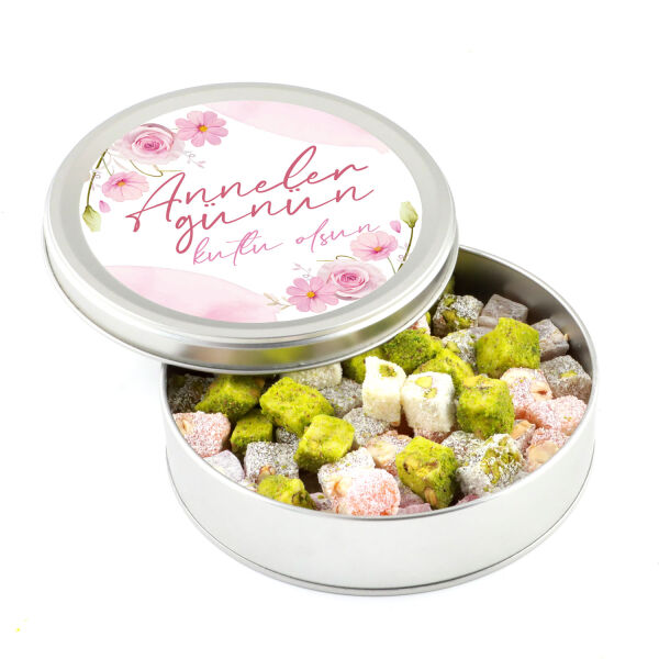 Anneler Günü Hediyesi Çifte Kavrulmuş Lokum (Metal Yuvarlak Kutu) 300g
