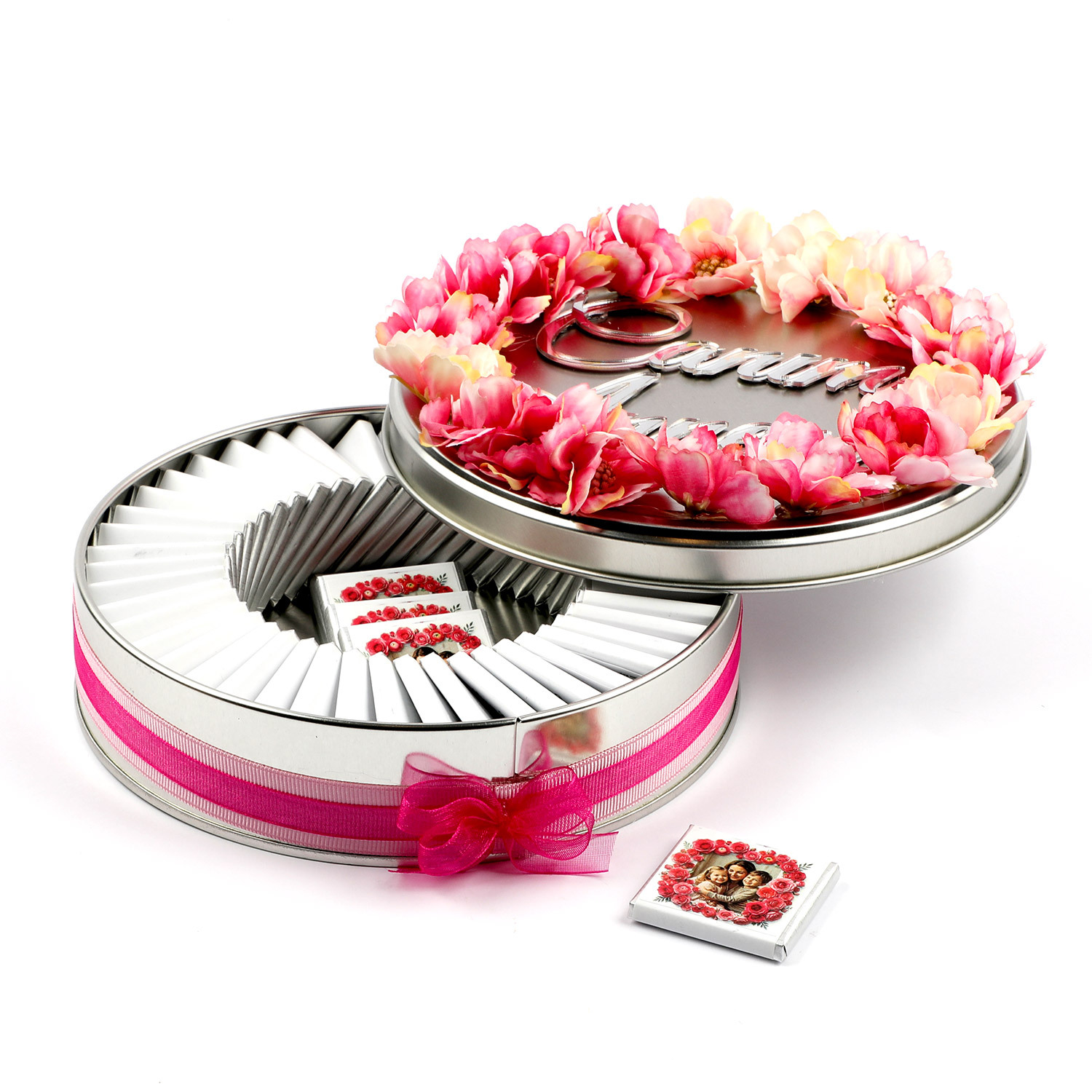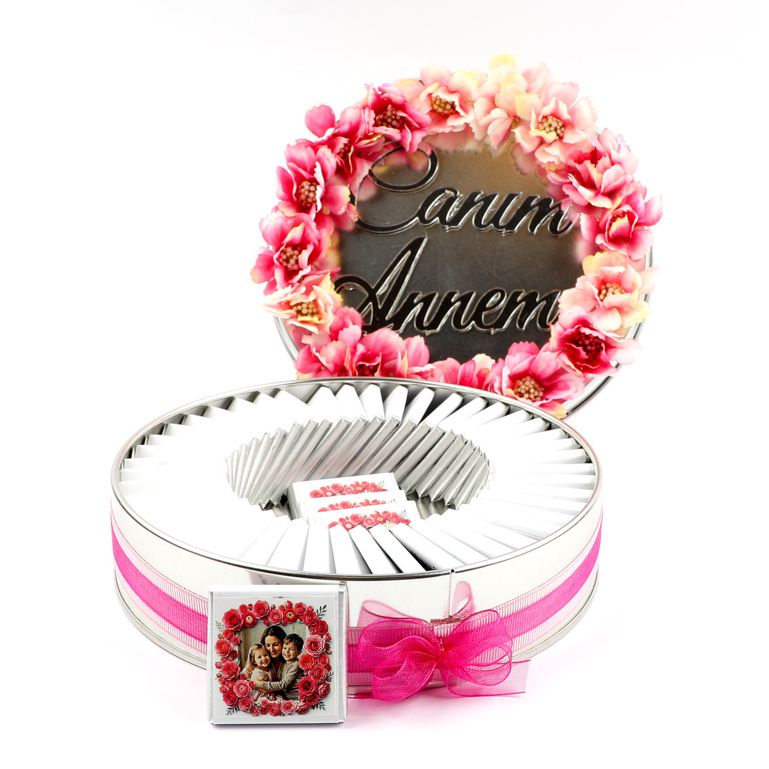 Anneler Günü Hediyesi Gül Dekorlu Metal Kutuda Fotoğraflı Malden Çikolata