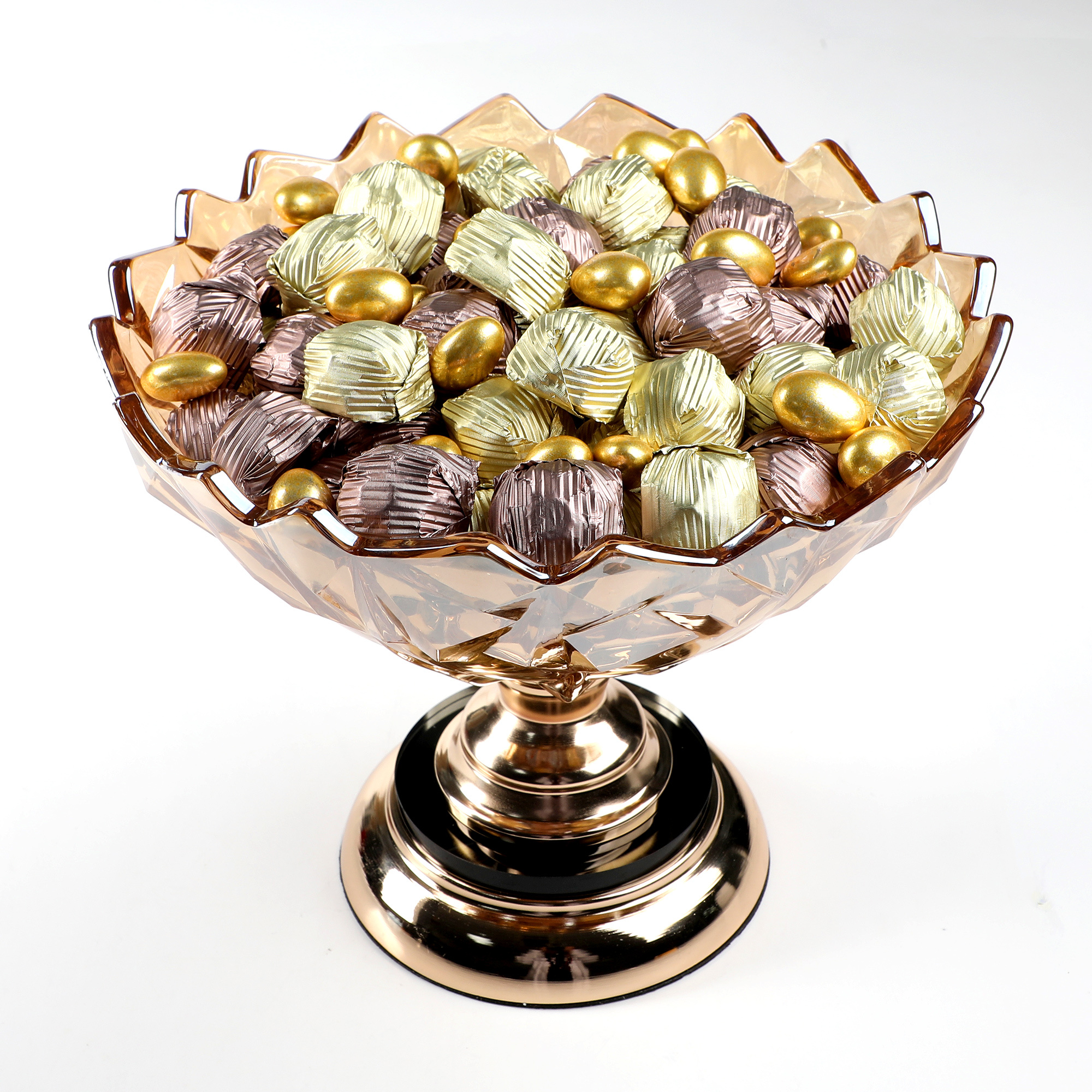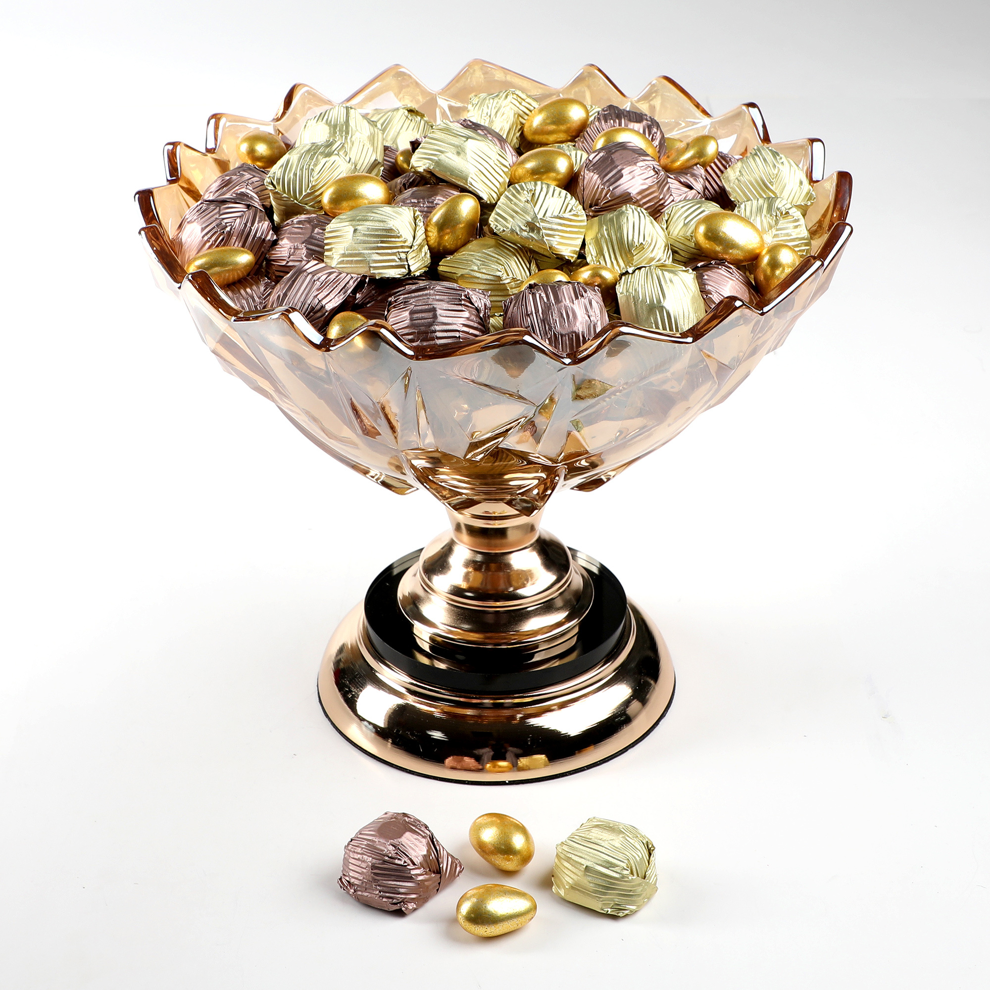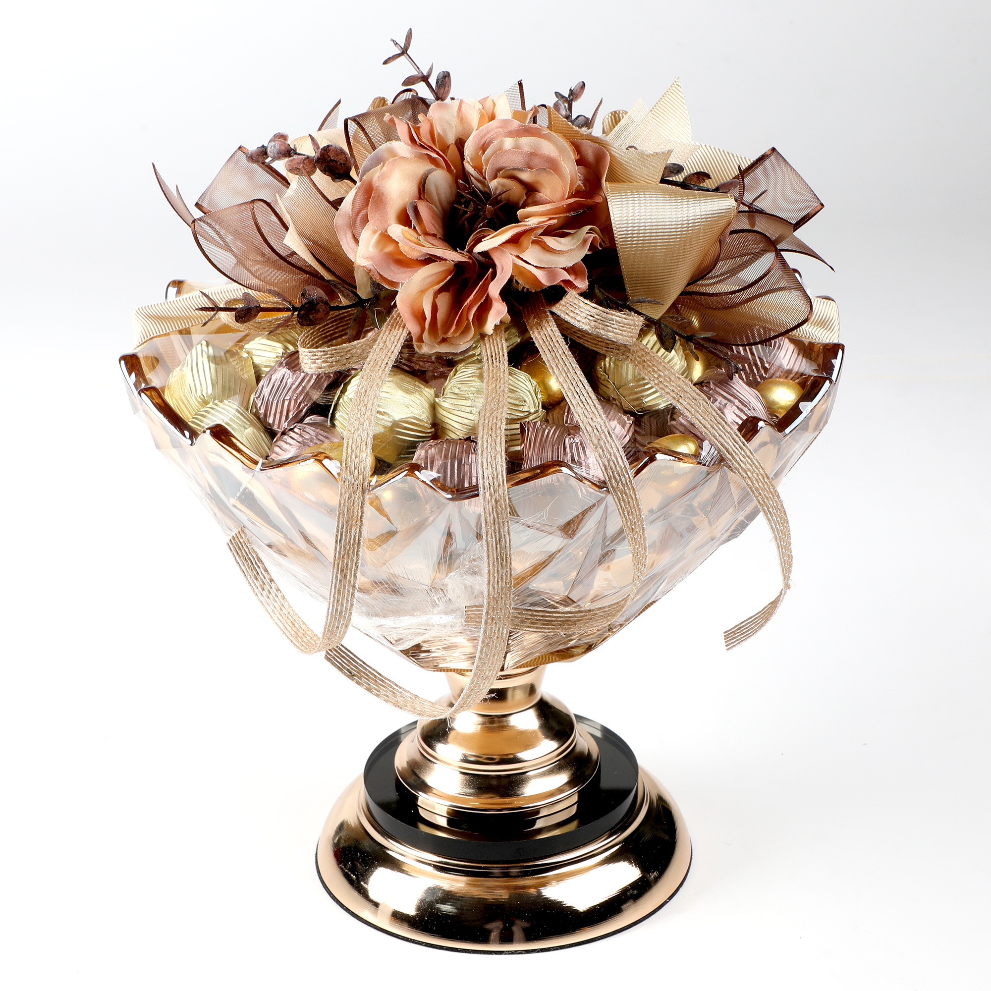 Ayaklı Cam Sunumlukta Söz Nişan Kız İsteme Çikolatası Altın Kahverengi Kristal Çikolata Draje
