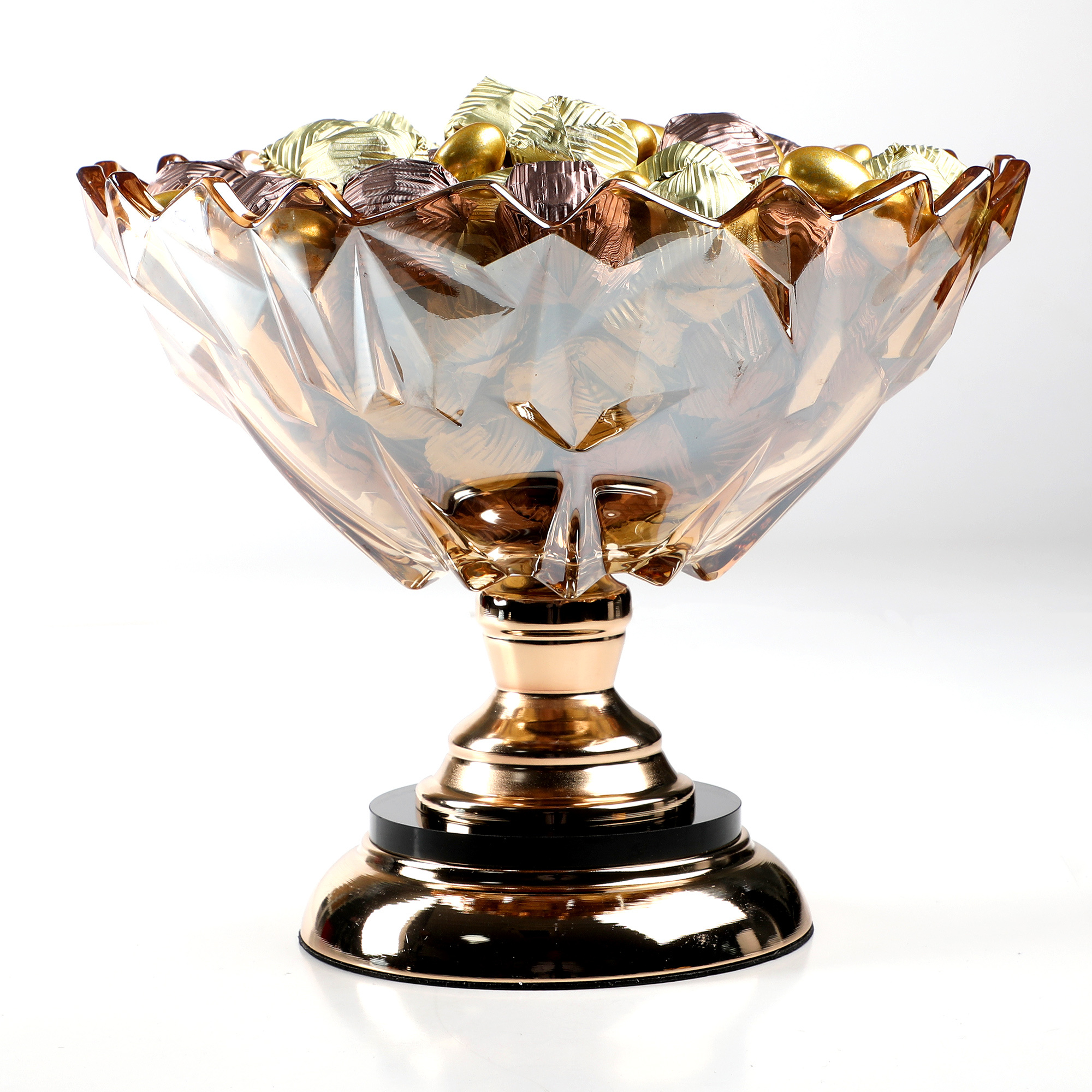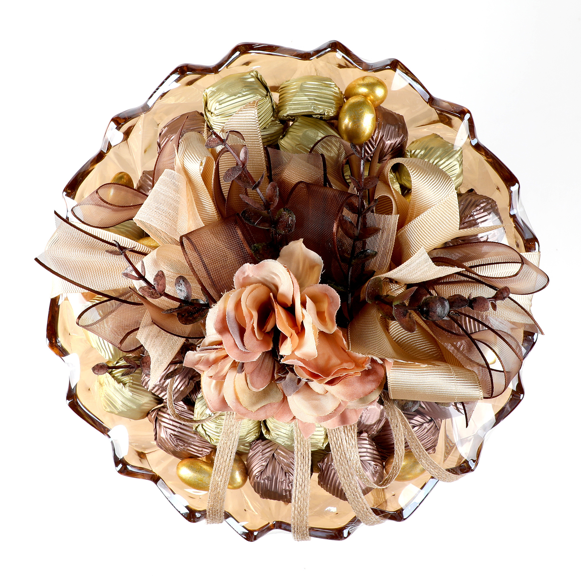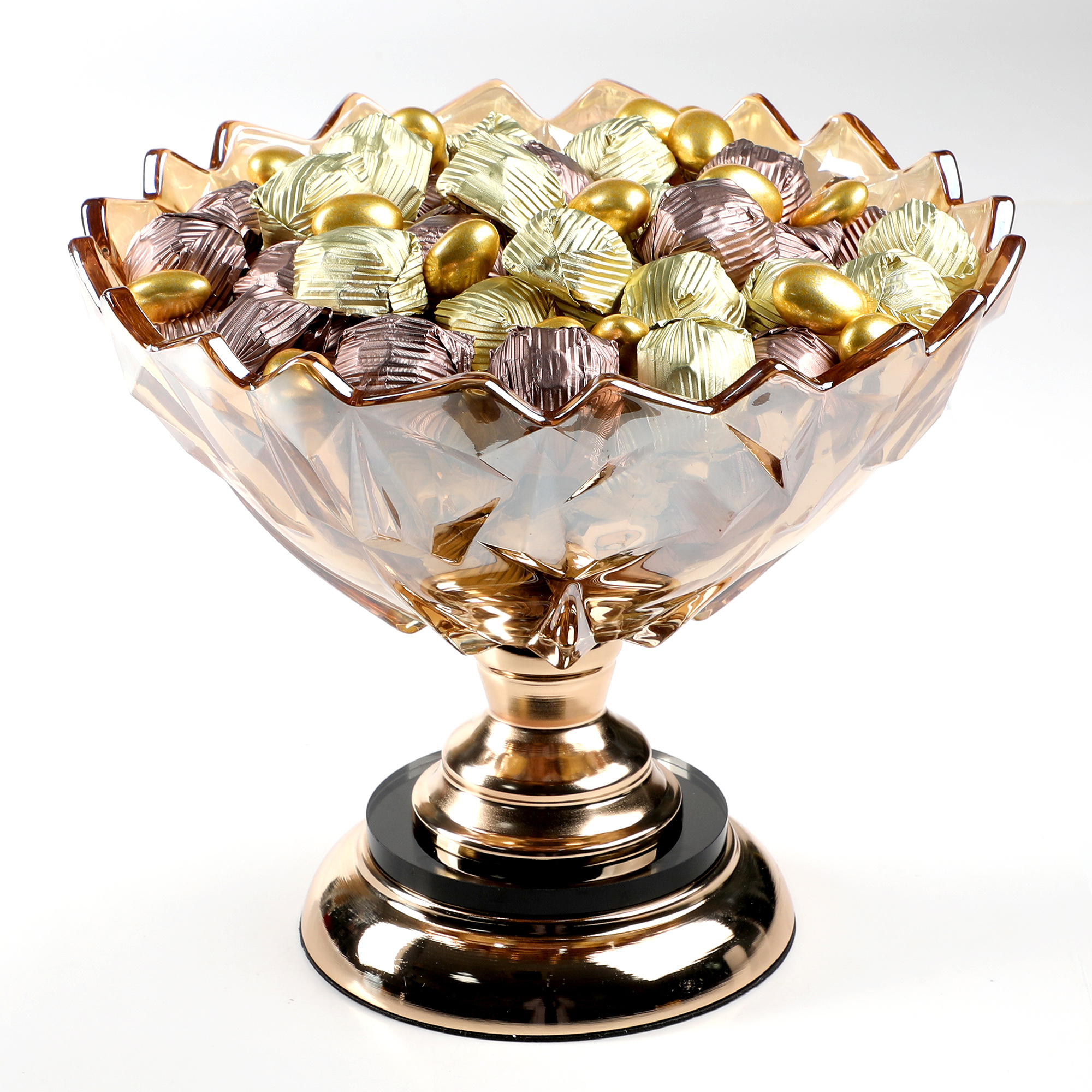Ayaklı Cam Sunumlukta Söz Nişan Kız İsteme Çikolatası Altın Kahverengi Kristal Çikolata Draje