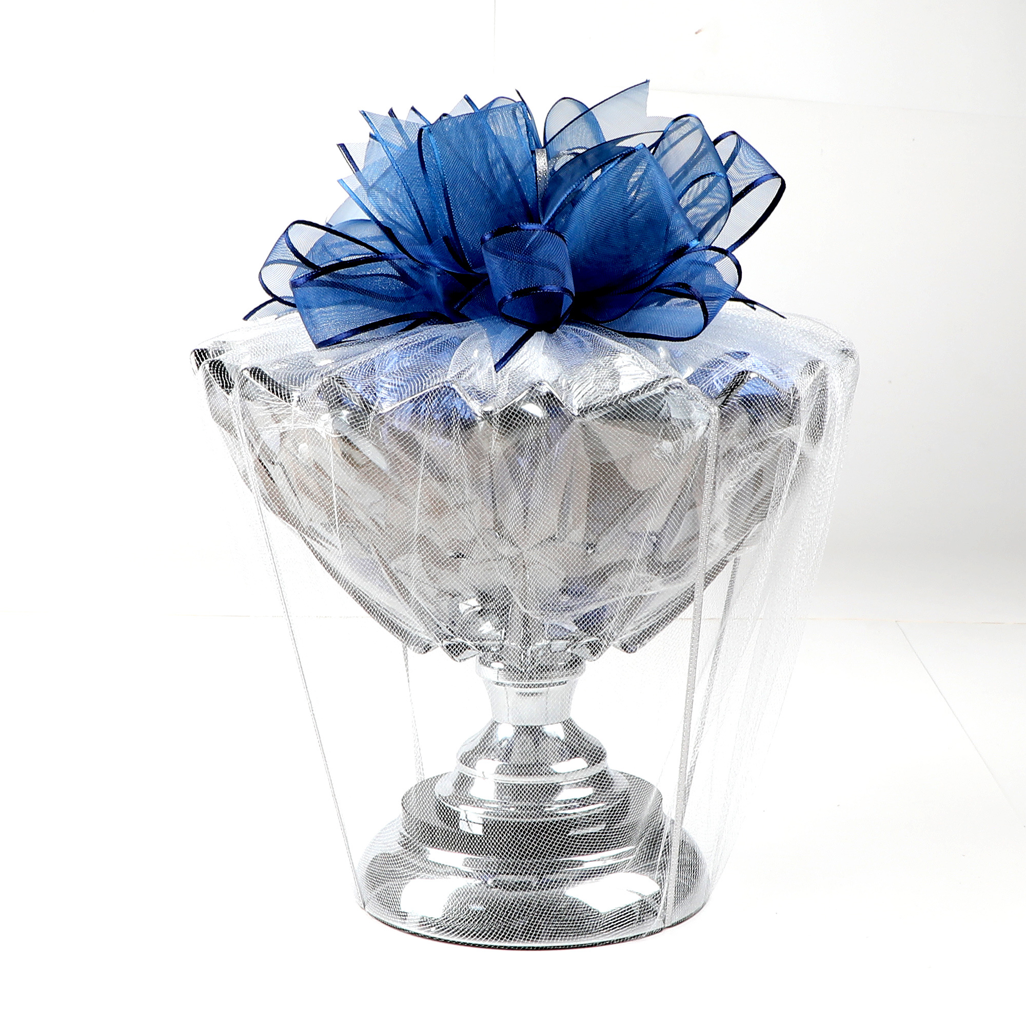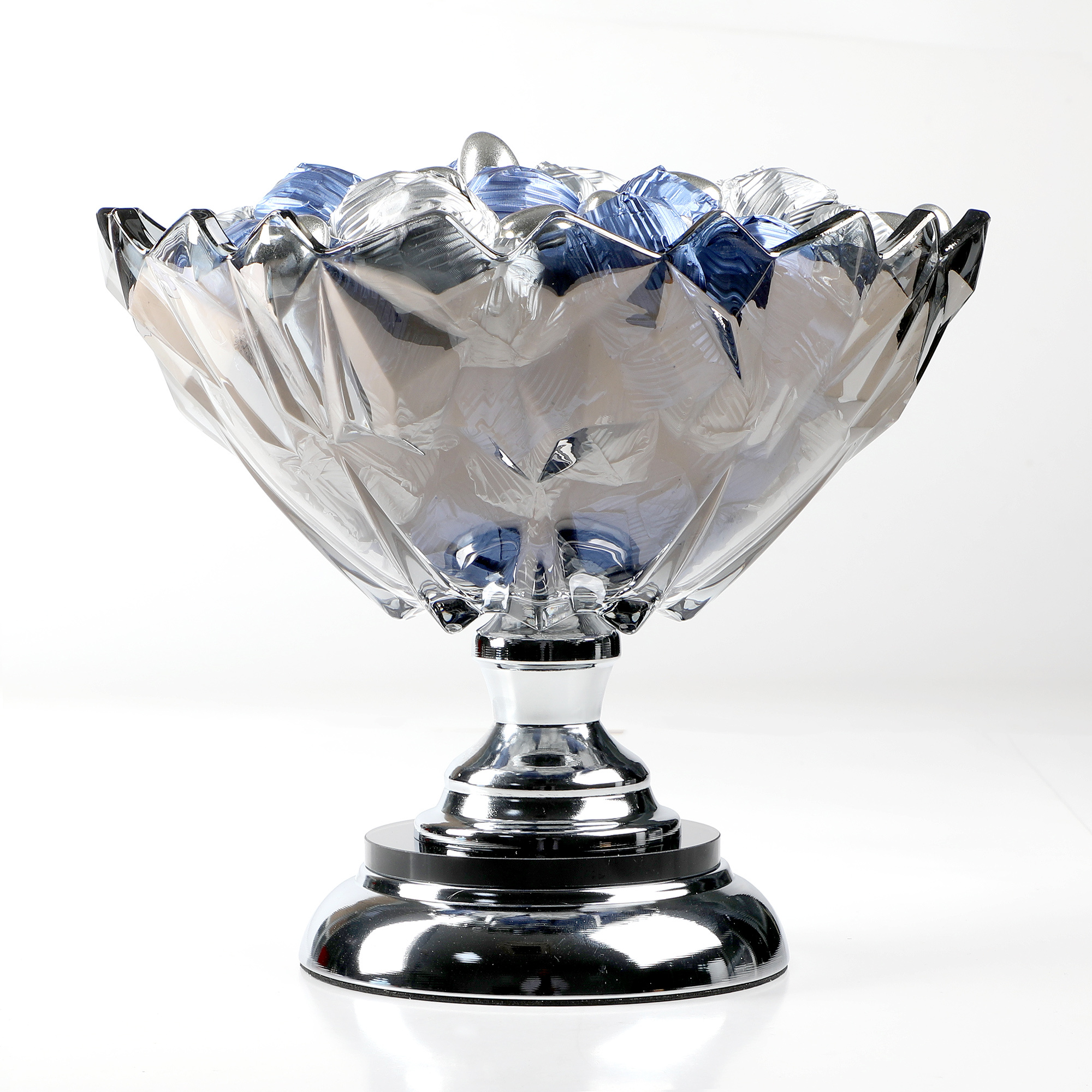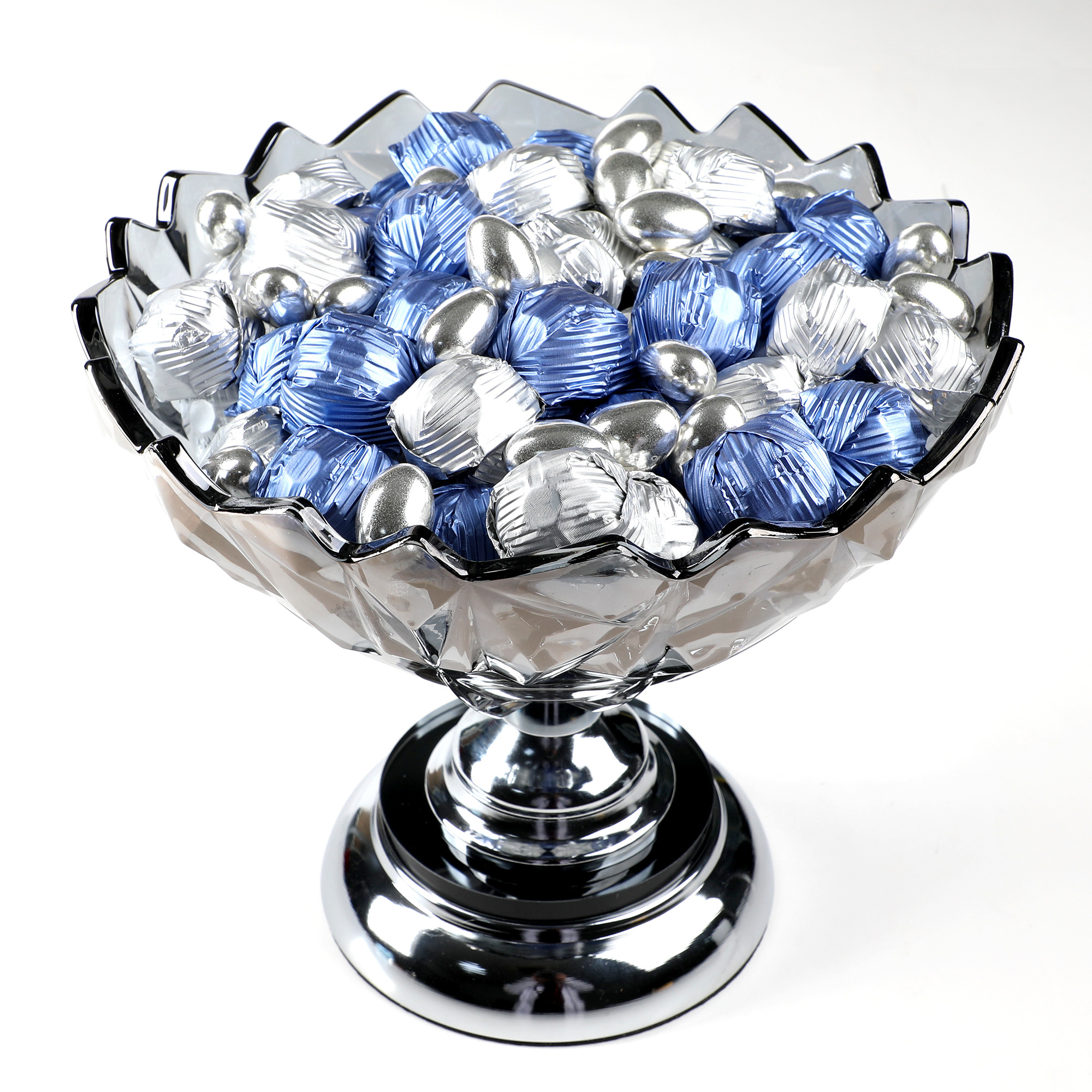 Ayaklı Cam Sunumlukta Söz Nişan Kız İsteme Çikolatası Gümüş Lacivert Kristal Çikolata Draje