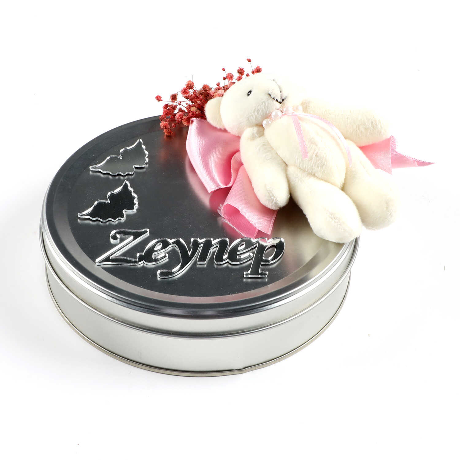Ayıcık Figürlü Kız Bebek Çikolatası (Metal Yuvarlak Kutu) 50 Adet Madlen