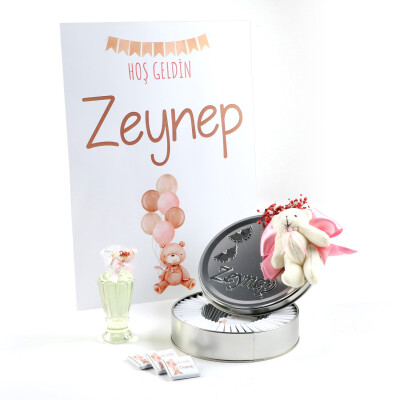 Ayıcık Figürlü Kız Bebek Çikolatası (Metal Yuvarlak Kutu) 50 Adet Madlen+Kolonya+Afiş