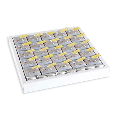 25 adet aynalı yıldızlı kutu içerisinde 1 adet bitter 1 adet sütlü çikolata bulunmaktadır. 375gr