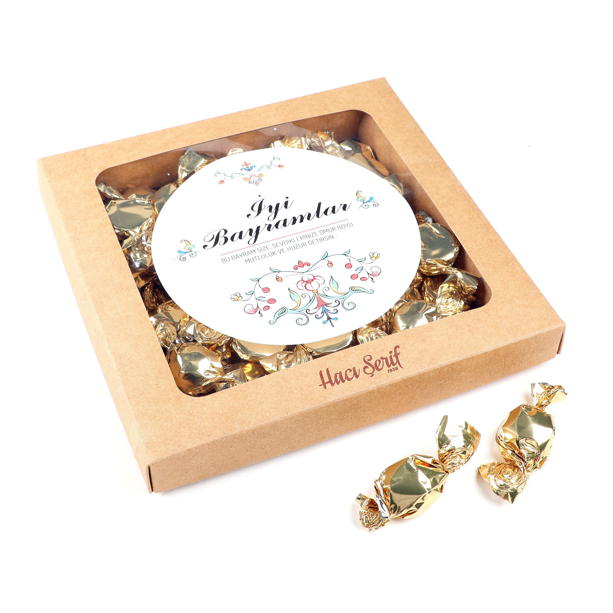 Üzerinde Bayrama özel çalışması ile birlikte gönderilir.