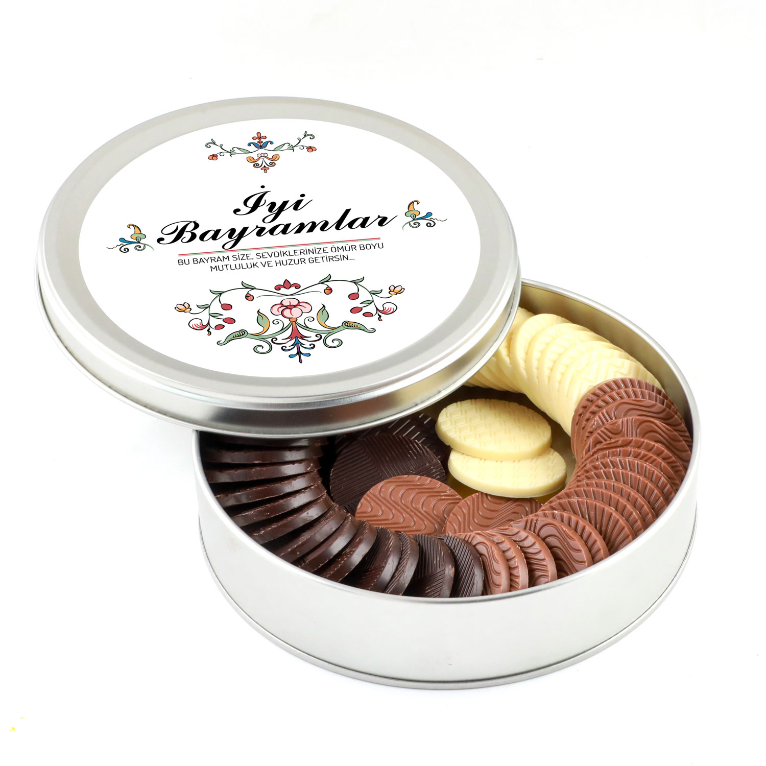 Bayram Hediyesi Yuvarlak Madlen Çikolata (Metal Yuvarlak Kutu)