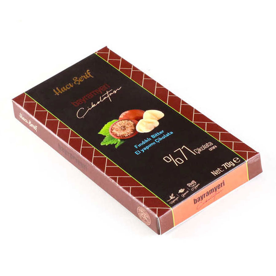 İçindekiler: Bitter Çikolata %70 (Kakao Kitlesi, Şeker, Kakao yağı, Süt, Emülgatör (Soya lesitini), Doğal Vanilin Aroması, Fındık %30 Bitter Çikolatada Kakao kuru maddesi Min:%54