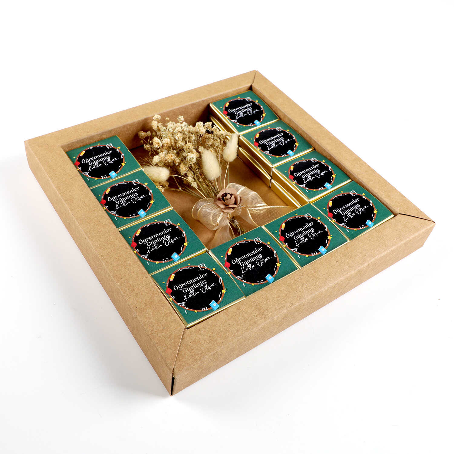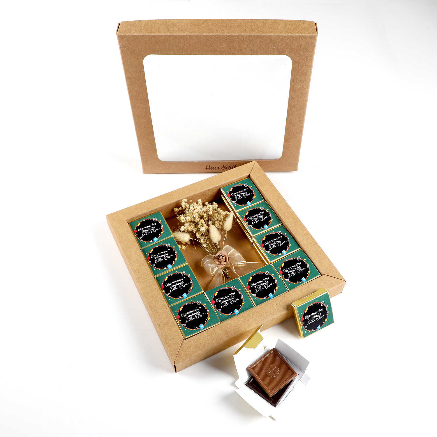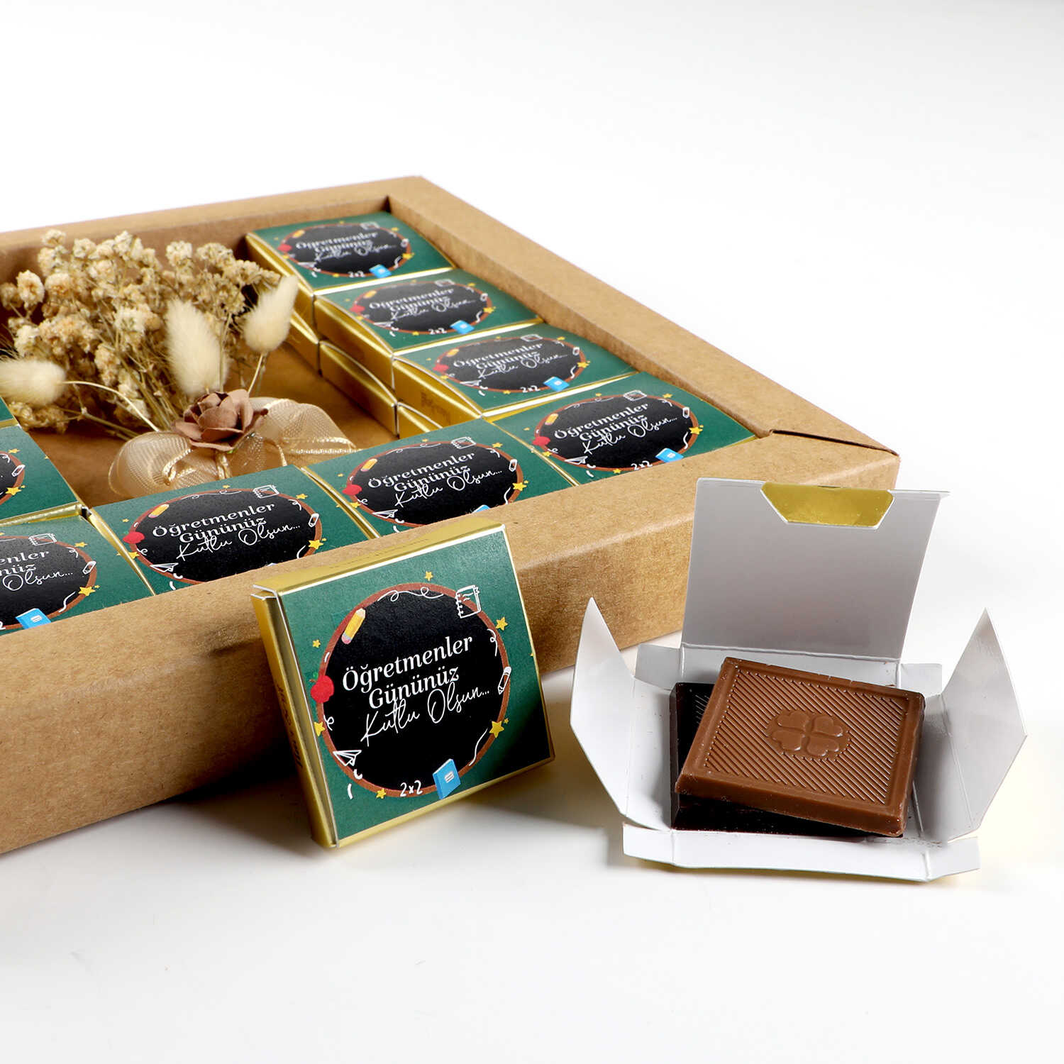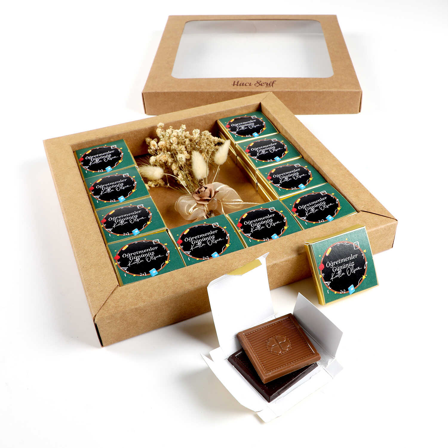 20 Kutuda 40 Adet Sütlü ve Bitter Madlen Çikolata (275g) üzerine "Öğretmenler Gününüz Kutlu Olsun"mesajı yapıştırılarak Gönderilir.