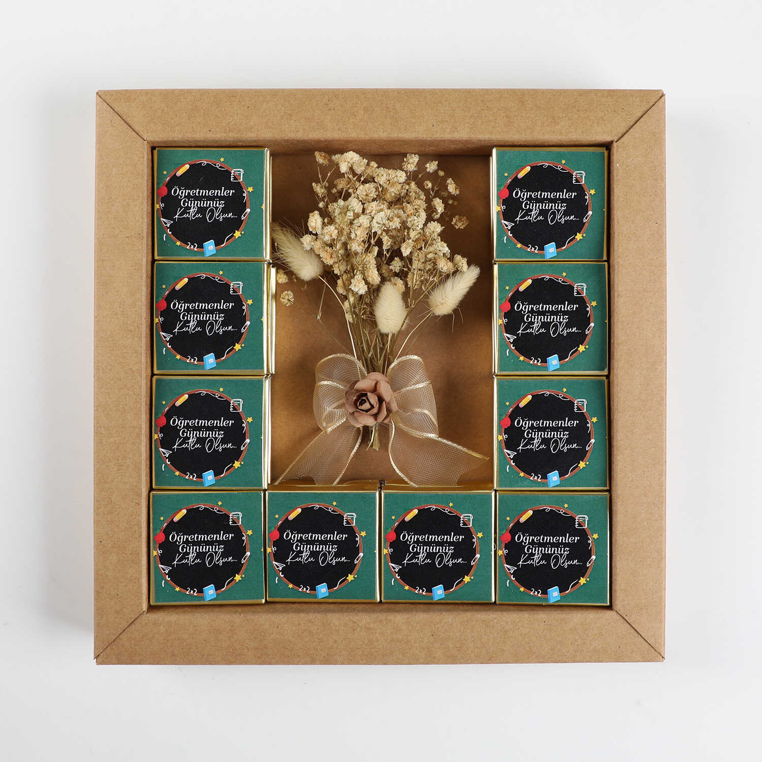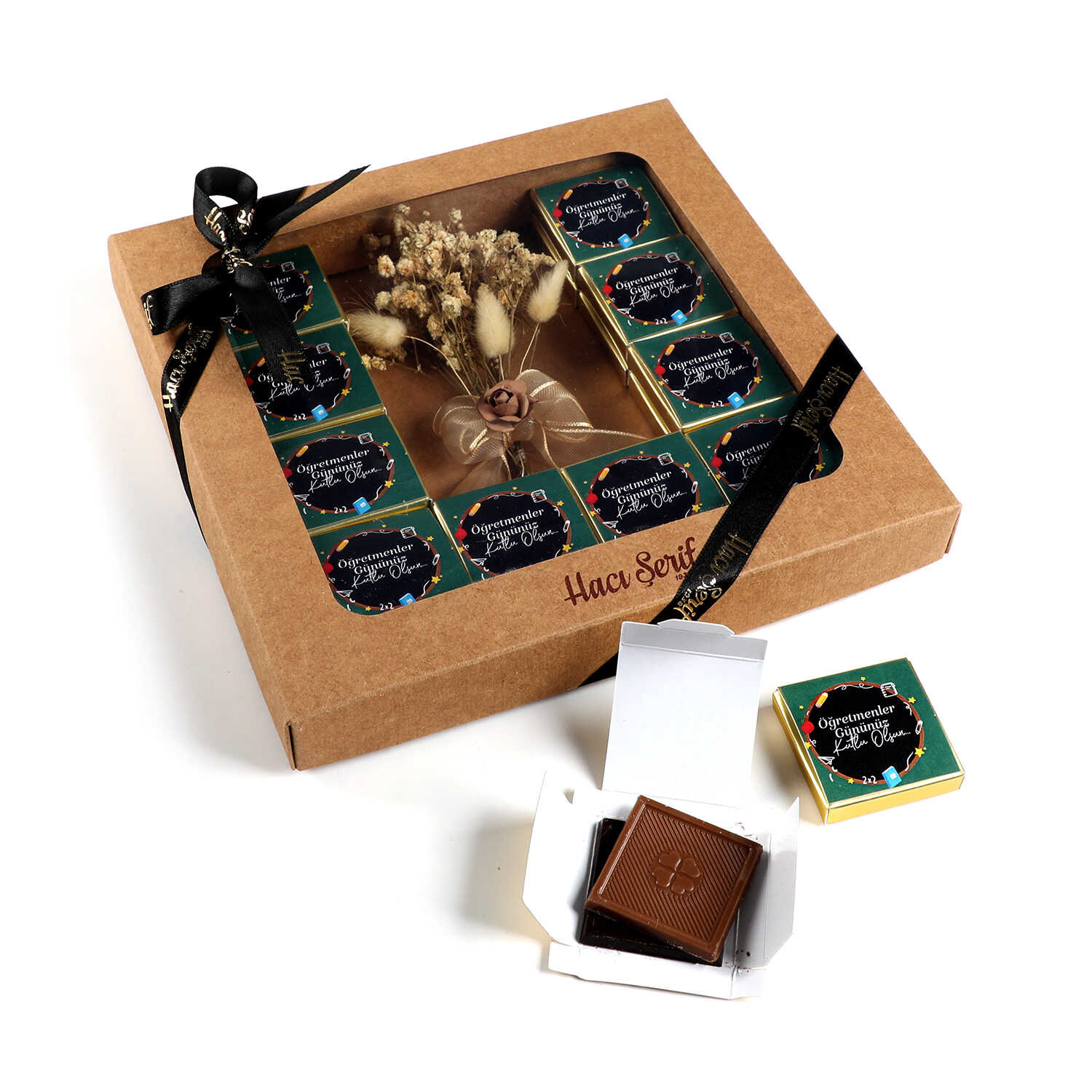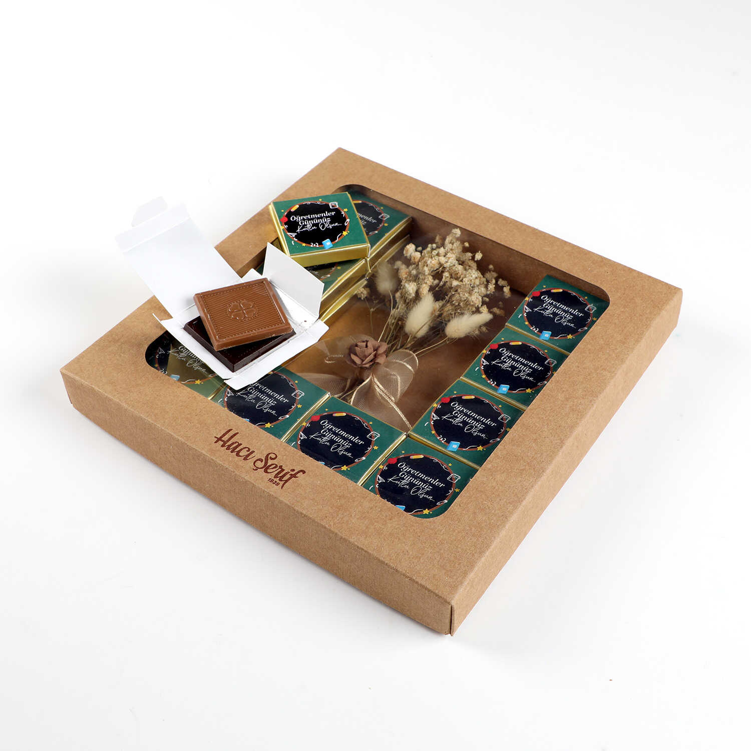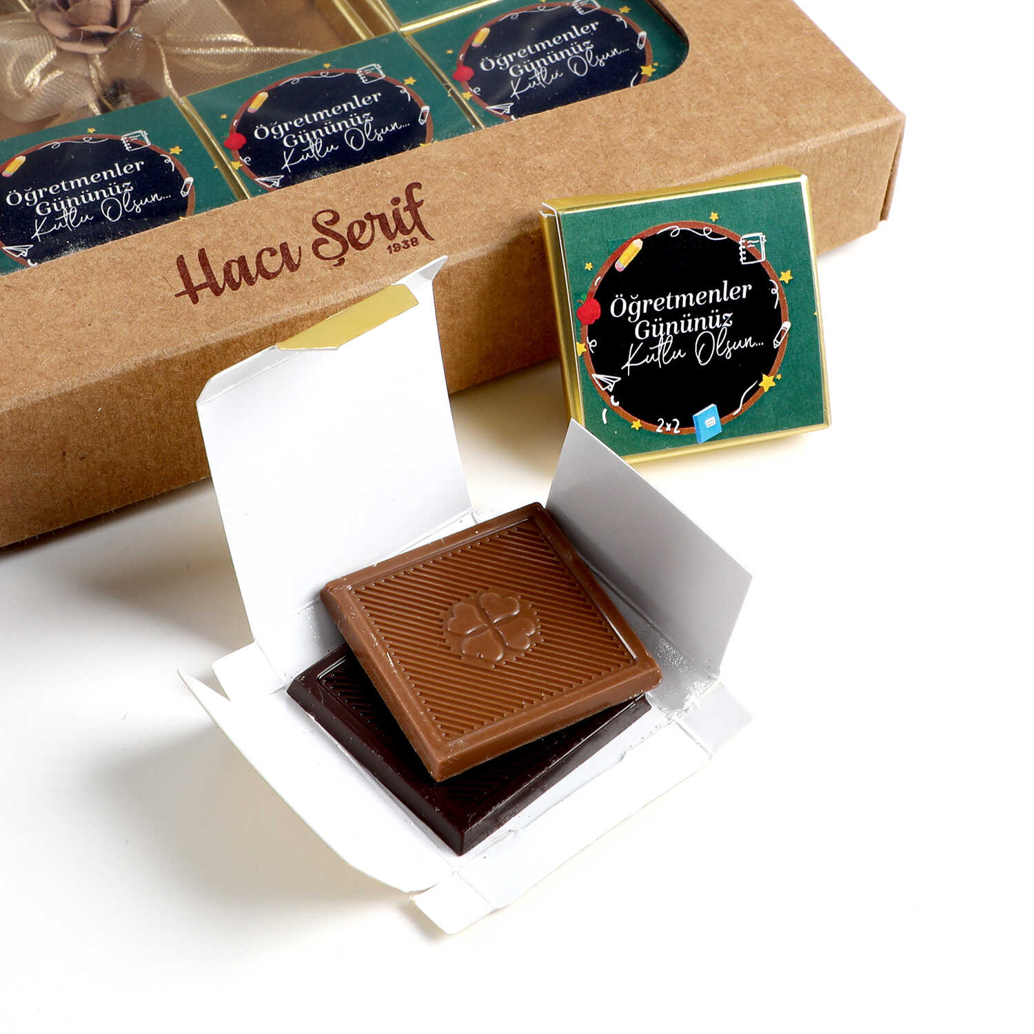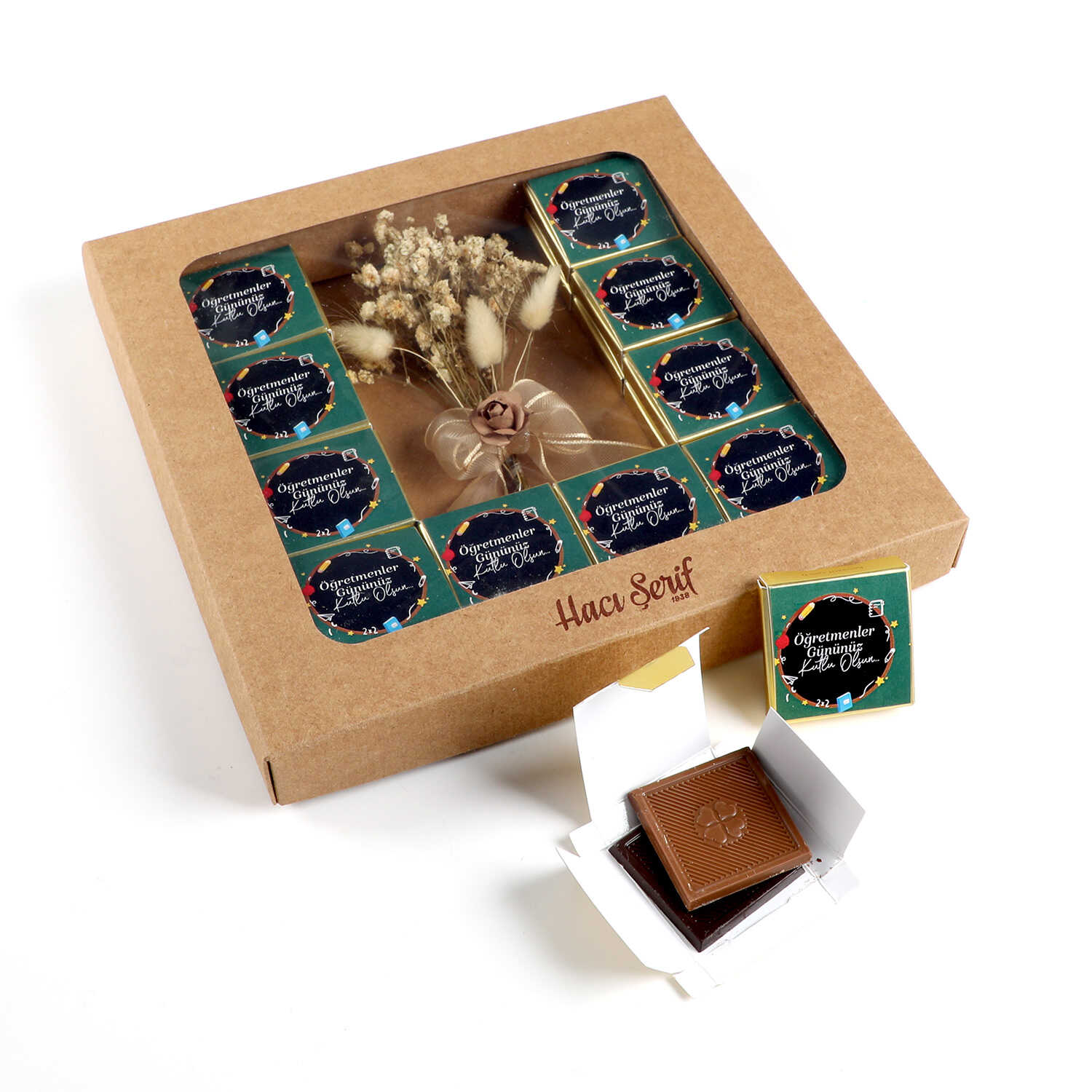 20 Kutuda 40 Adet Sütlü ve Bitter Madlen Çikolata (275g) üzerine "Öğretmenler Gününüz Kutlu Olsun"mesajı yapıştırılarak Gönderilir.