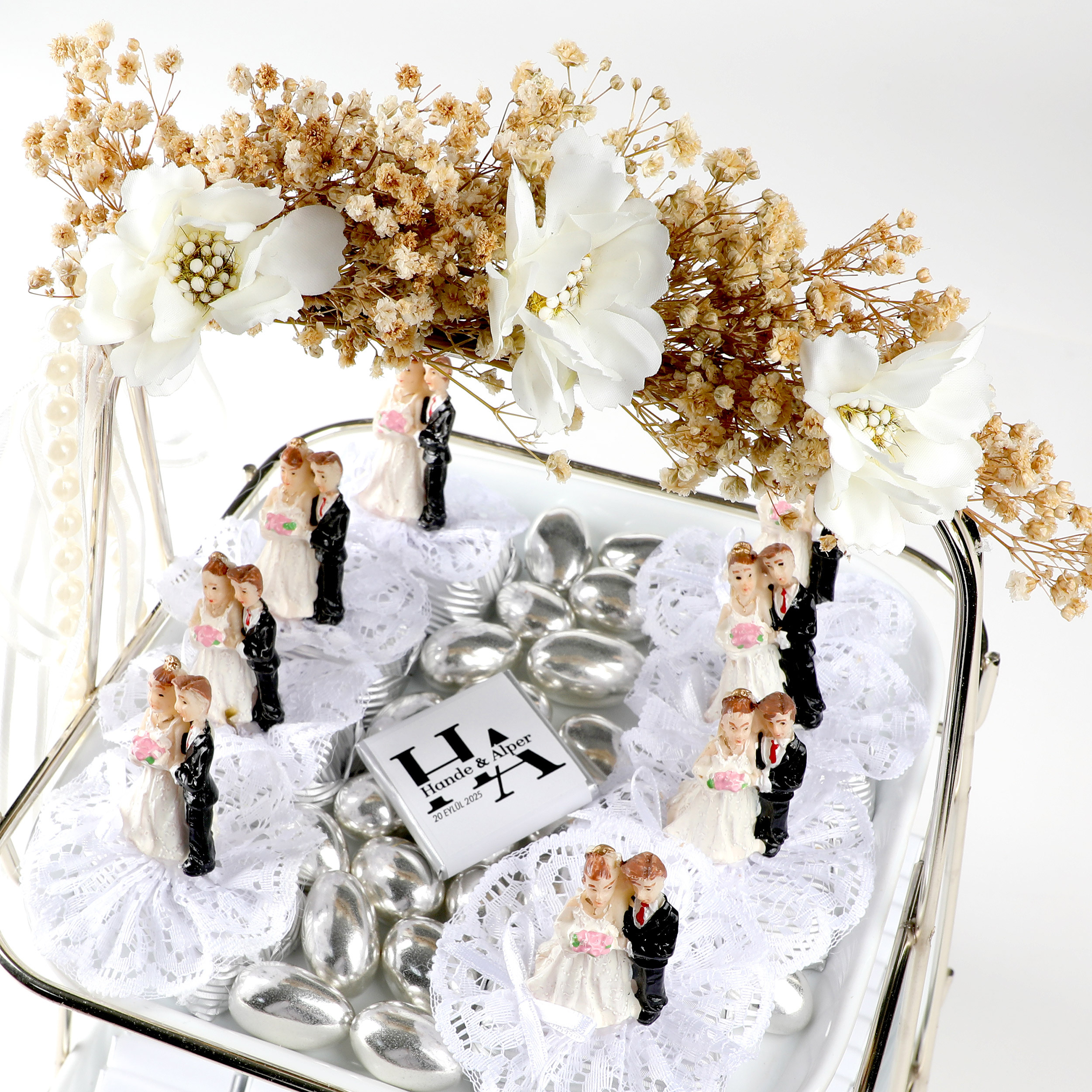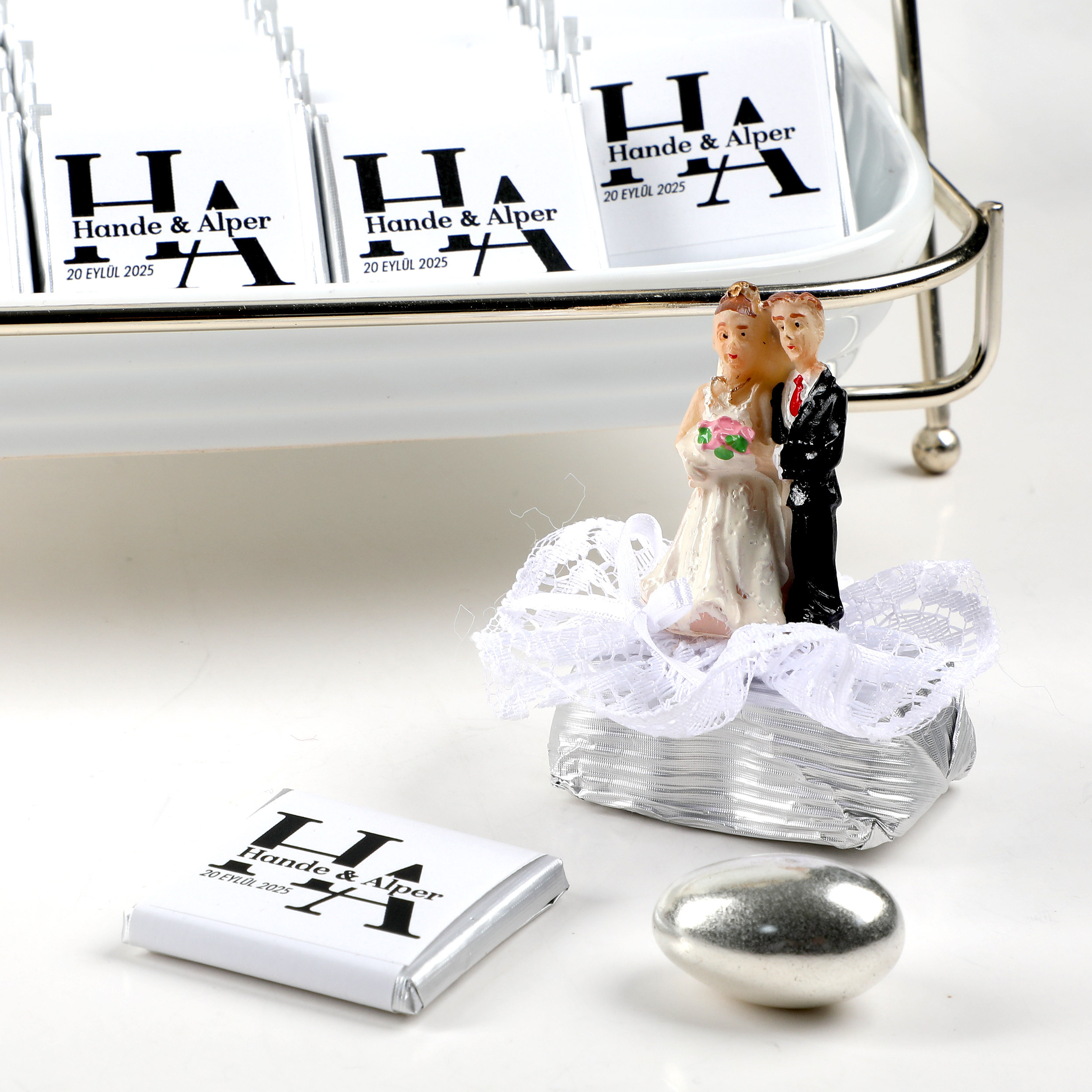 8 adet gelin damat dekorlu baton çikolata