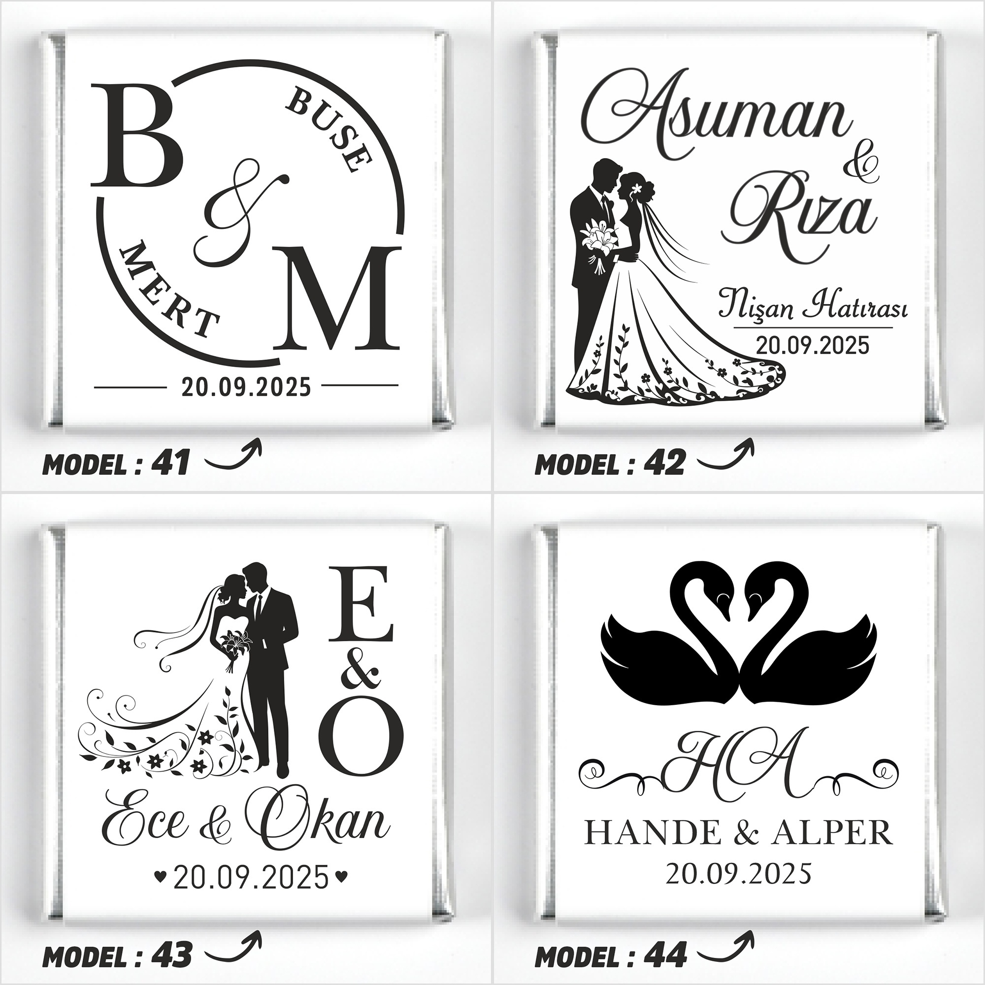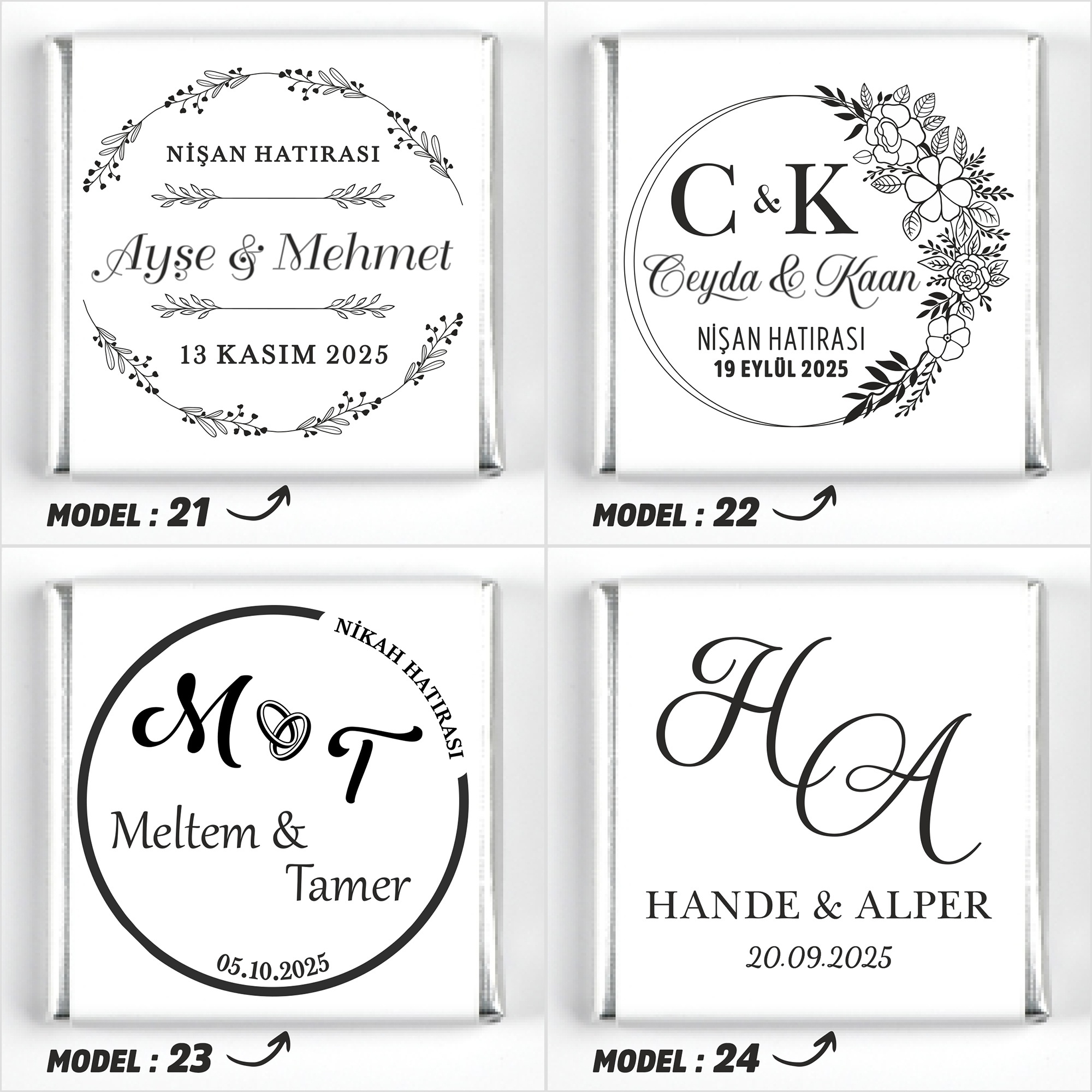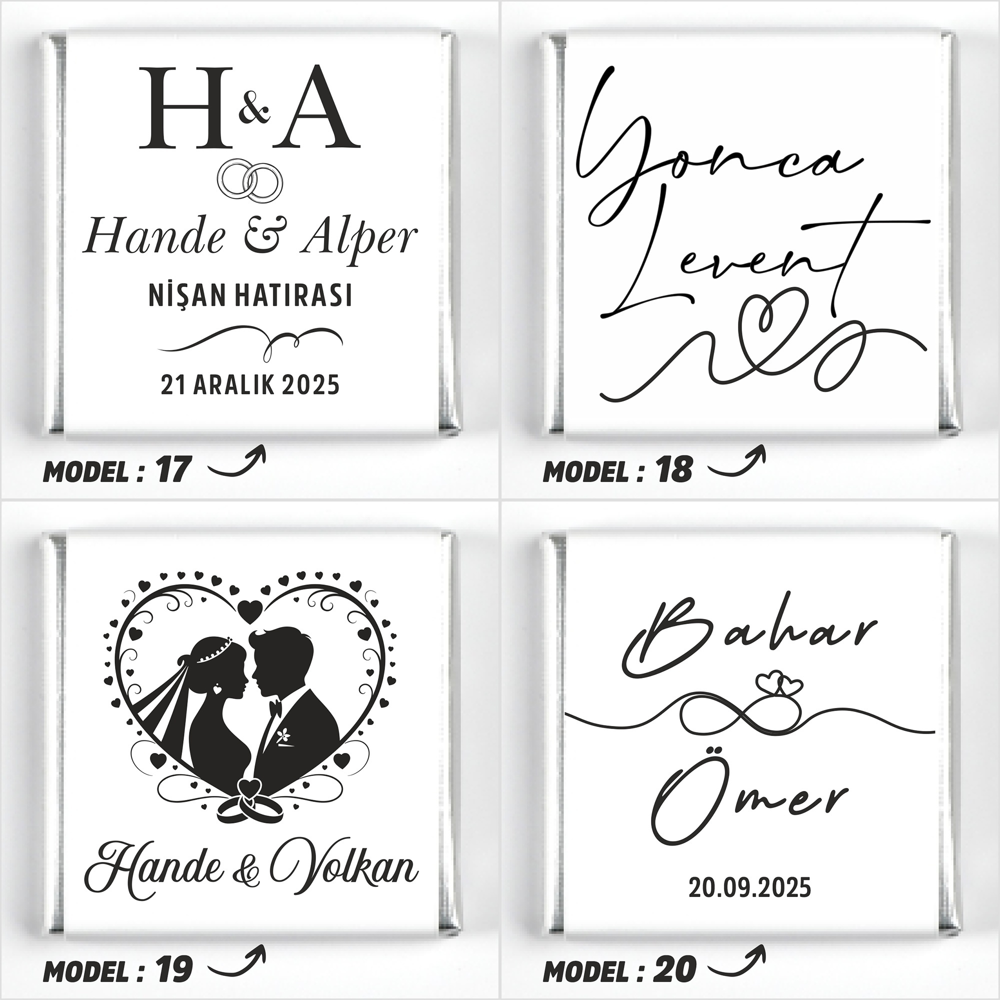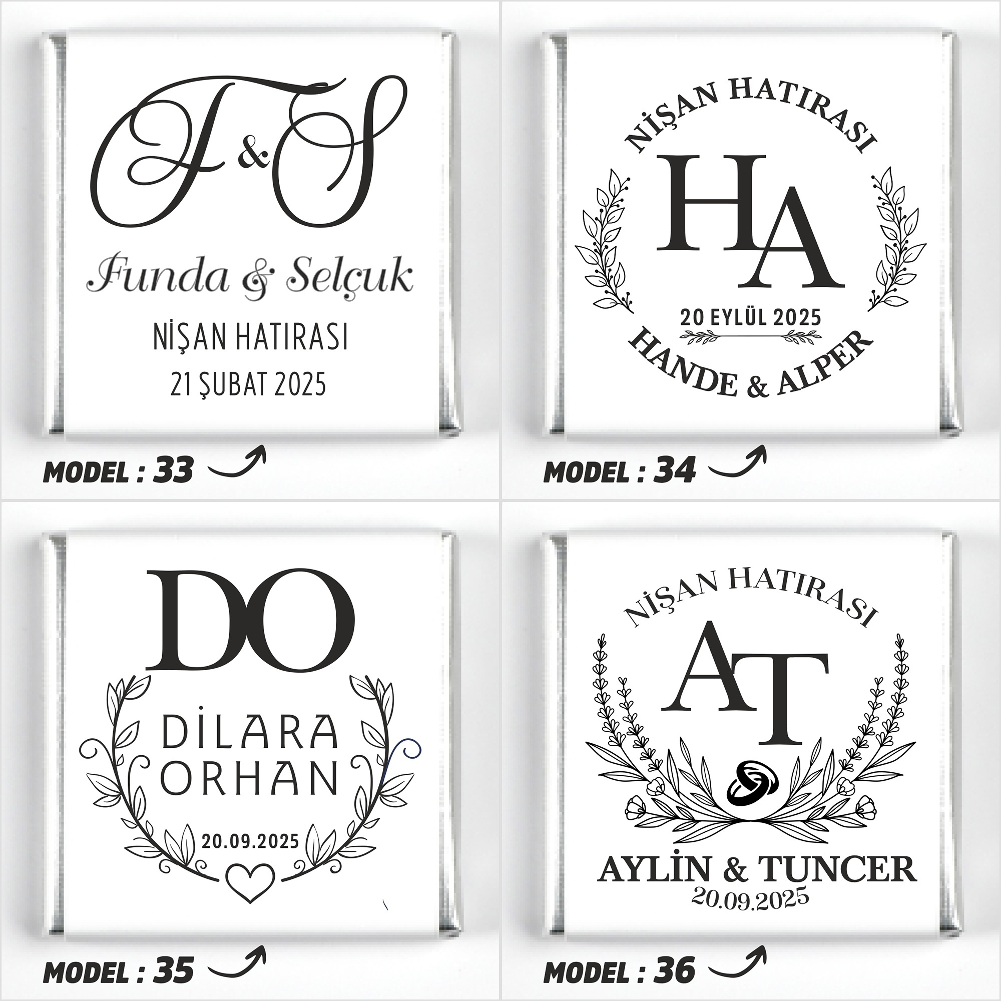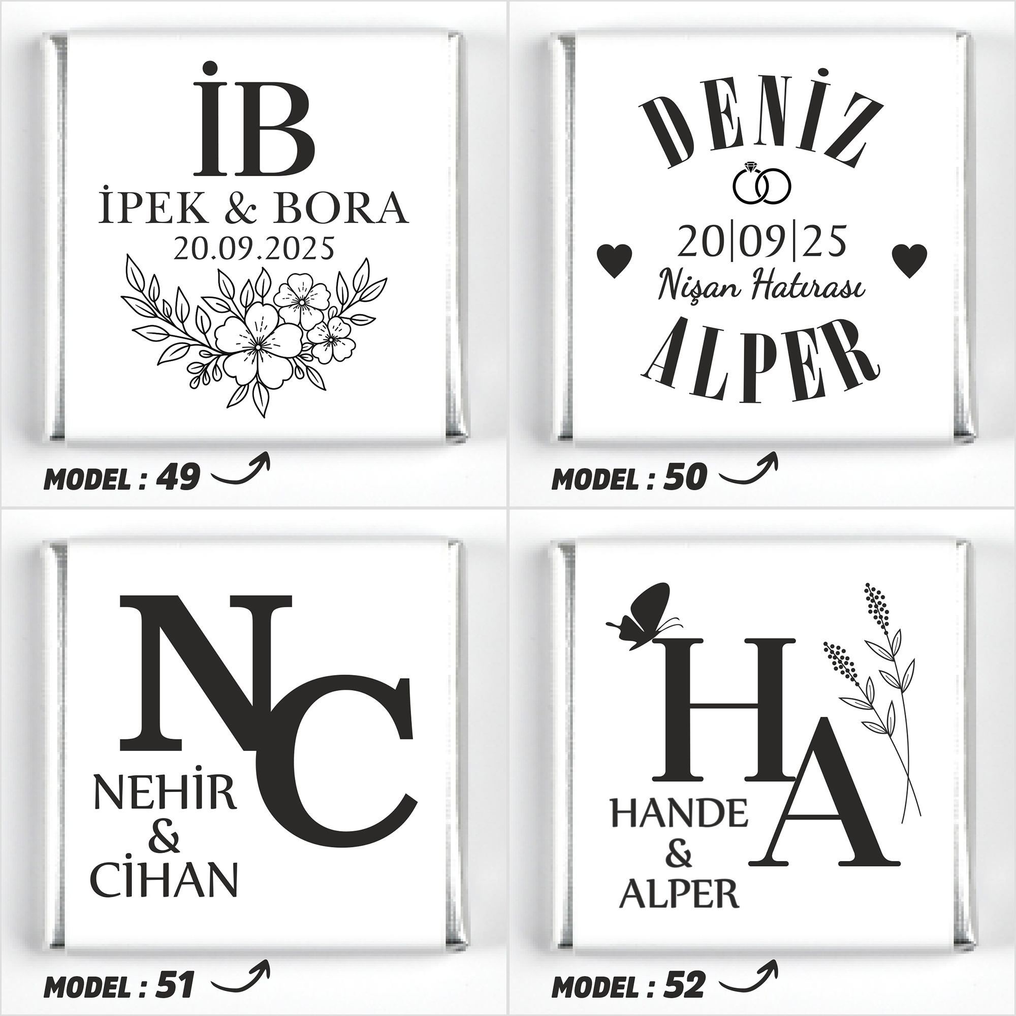 İsimlerinizi, tarih bilgisini ve model seçimini ürün sayfasındaki ilgili kutucuklara yazınız.