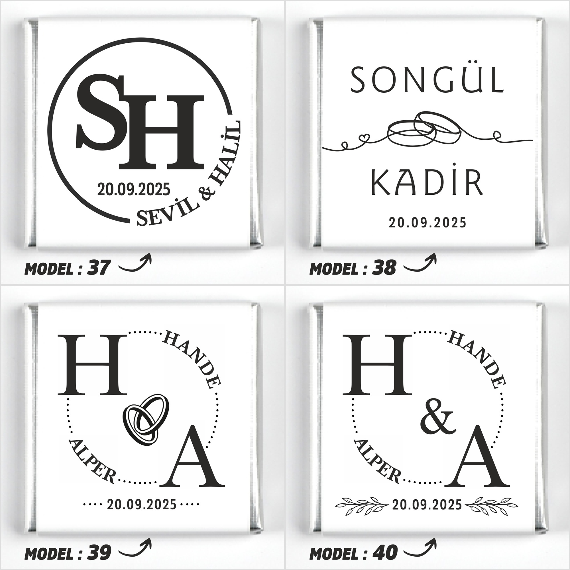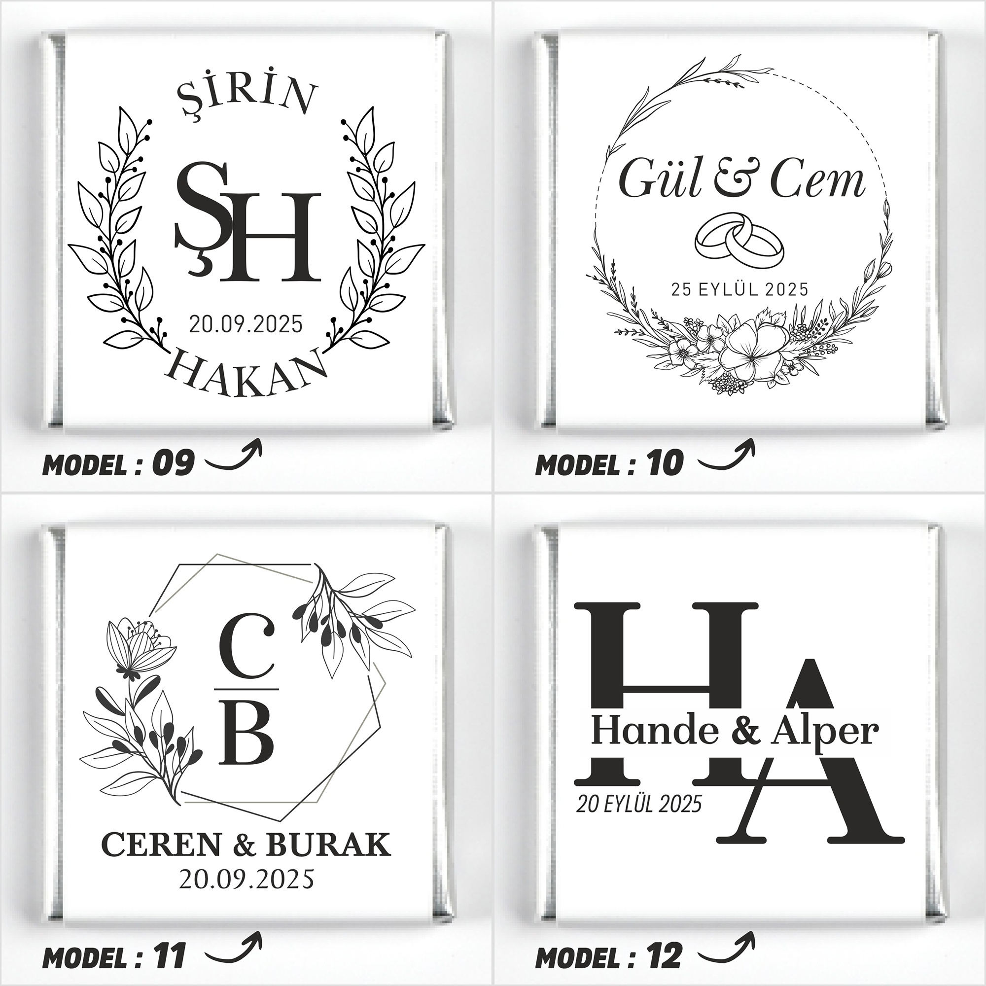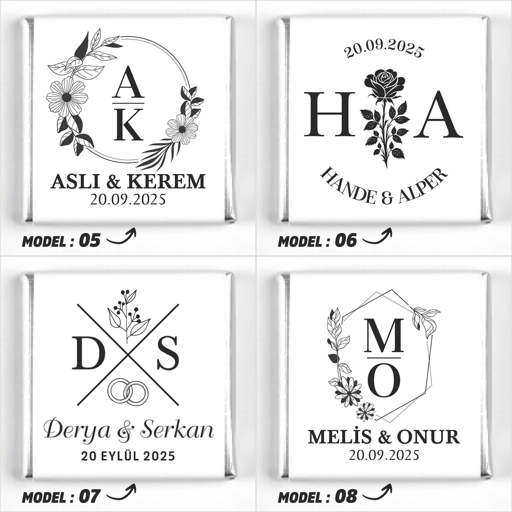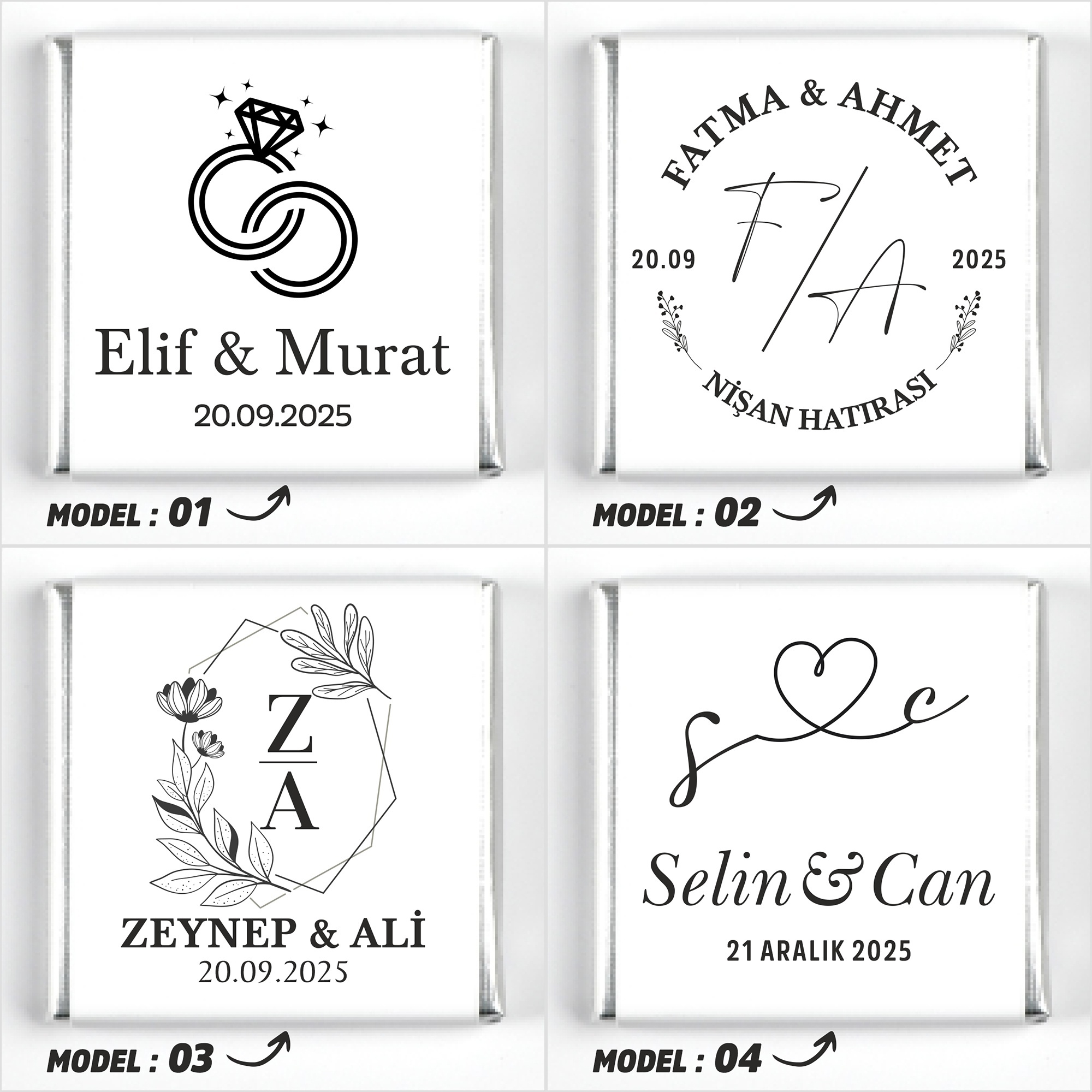 İsimlerinizi, tarih bilgisini ve model seçimini ürün sayfasındaki ilgili kutucuklara yazınız.