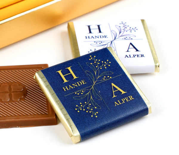 Kapak içi ve madlen çikolatalar üzerinde "İsimleriniz ve Baş Harfleriniz" bulunmaktadır.