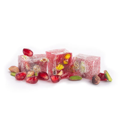Şeker, su, %12 antep fıstığı, mısır nişastası, doğal nar suyu, asitlik düzenleyici (E330), doğal renklendirici (kırmızı turp ekstraktı), doğala özdeş aroma (nar), pudra şekeri.