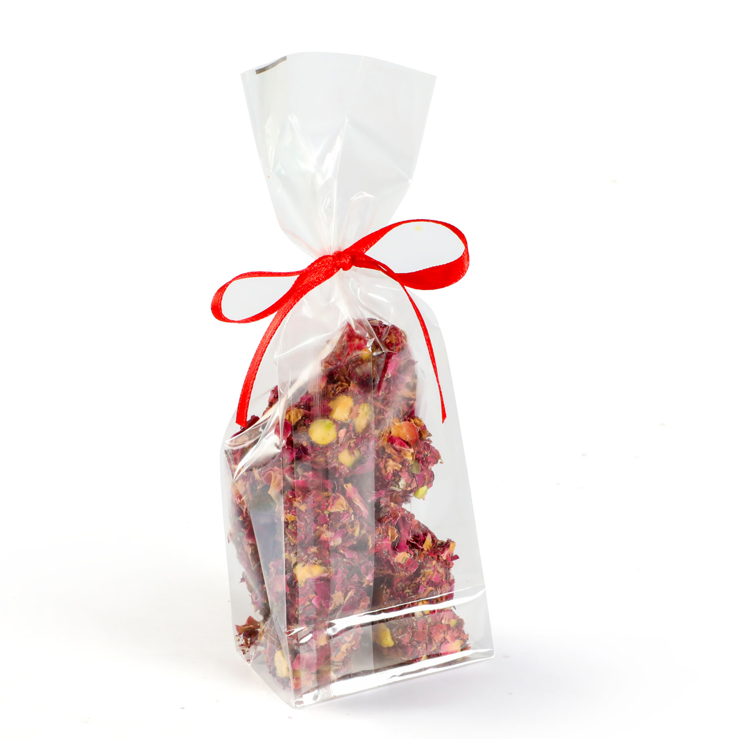 İçindekiler: Şeker, Su, %12 Ant. Fıstığı, Mısır Nişastası, Nar Suyu, Asitlik Düzenleyici (Sitrik Asit(E 330)) ,Renklendiricisi(Kırmızı Turp Ekstraktı), Aroma (Nar)Ürün Üzeri Gül Yaprağı İle Kaplıdır.