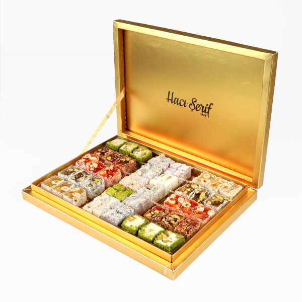 Notify me when its in stockİçindekiler: Toz Şeker, Su, Çeşidine Göre, %17 Ant. Fıstığı, %10 Badem, %20 Ceviz, %12 Fındık,%25 İncir, Çikolata(Hidrojenize Bitkisel Yağ, Şeker, Kakao, Ayçiçek Lesitini, Aroma Verici Vanilya), Kakao, Mısır Nişastası, Nar Suyu, Asitlik Düzenleyici (Sitrik Asit(E 330)) ,Renklendiricisi(Kırmızı Turp Ekstraktı), Aroma(Nar, Vişne), Çeşidine Göre, Çöğen Suyu, Ürün Üzeri Çeşidine Göre %20 Zereç, %20 Hindistan Cevezi, %20 Fındık %20 Kadayıf, %25 Gül Yaprağı Ve %20 Antep Fıstıgı, Kakao İle Kaplıdır.