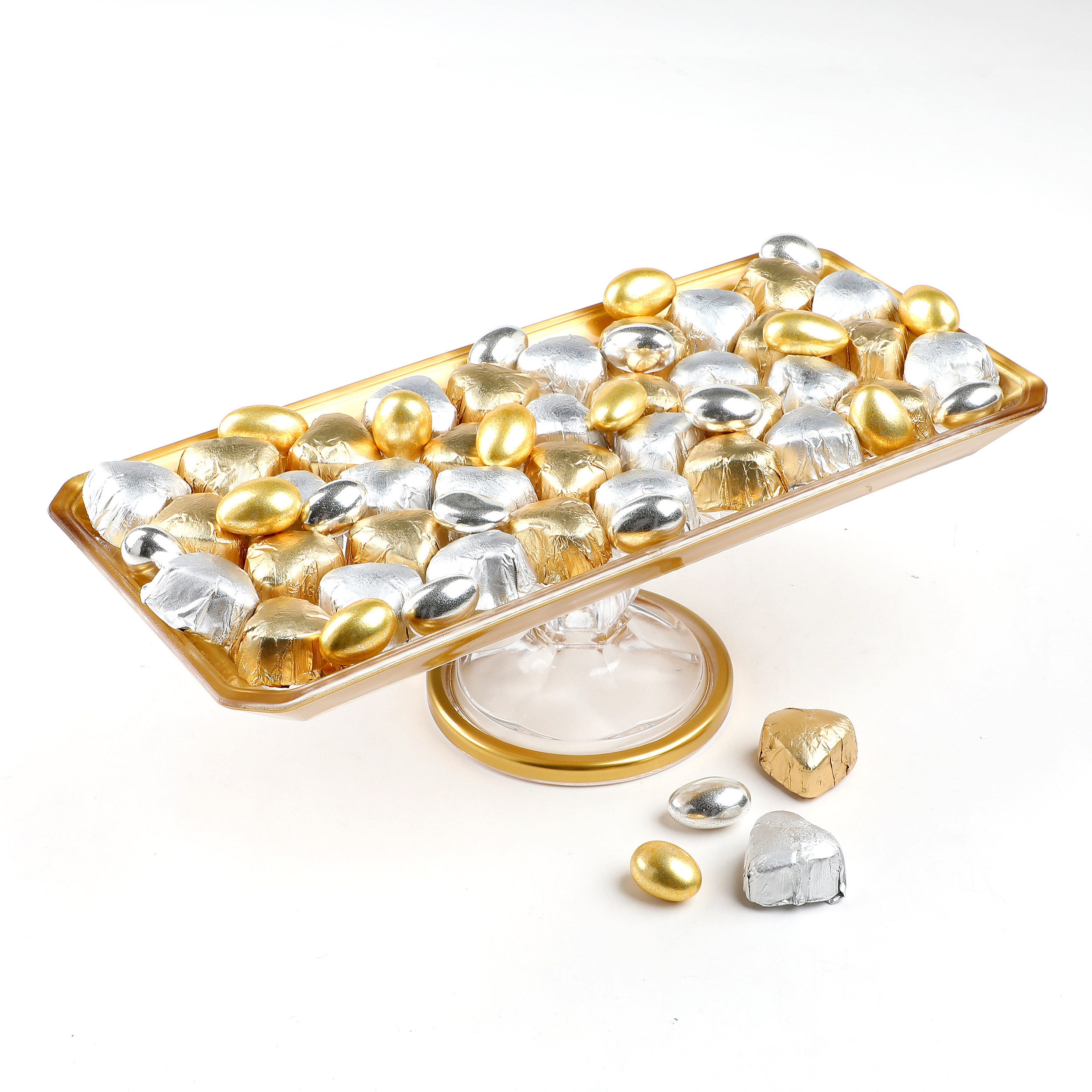 Dikdörtgen Altın Cam Tabak Söz Nişan Kız İsteme Çikolatası