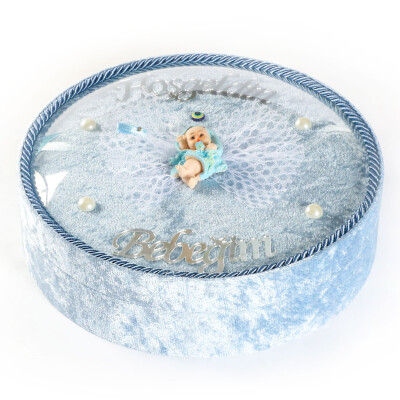 Kutu üzerinde pileksiden 'Hoşgeldin Bebeğim' yazısı ve süsleme vardır. Üstü cam ile kaplıdır.