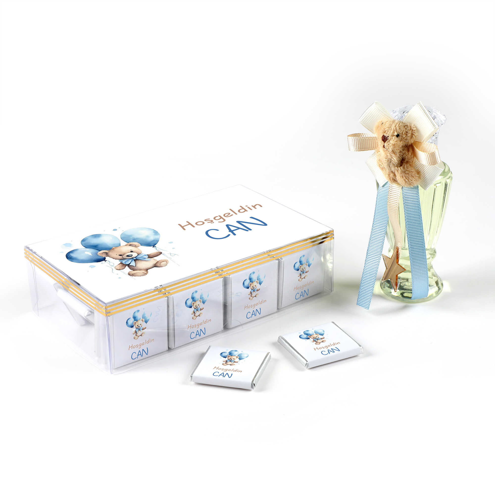 Eğer çikolataların üzerindeki etikette isim yazılmasını istiyorsanız, bebeğin ismini ürün sayfasındaki bebeğin adı kısmına veya ödeme sayfası > kargo seçimi bölümünde not olarak ekleyebilirsiniz.