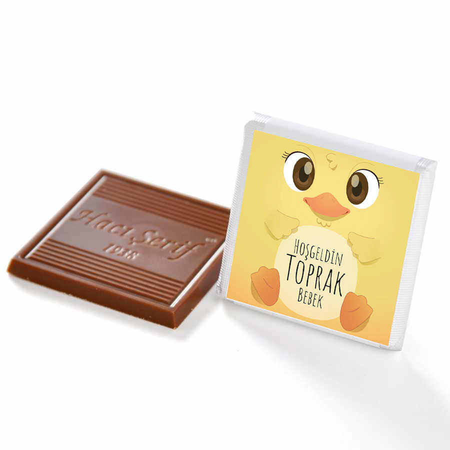 Eğer çikolataların üzerindeki etikette isim yazılmasını istiyorsanız, bebeğin ismini ürün sayfasındaki bebeğin adı kısmına veya ödeme sayfası > kargo seçimi bölümünde not olarak ekleyebilirsiniz.