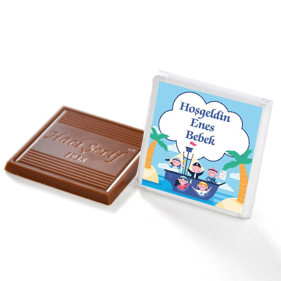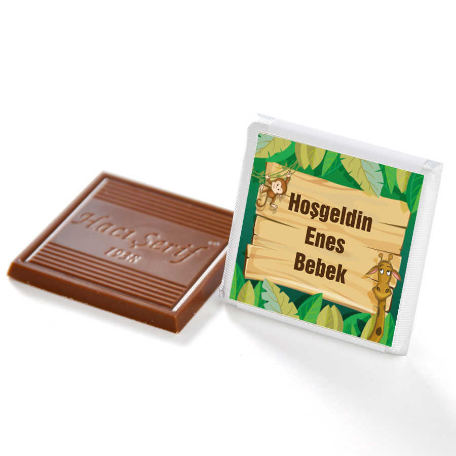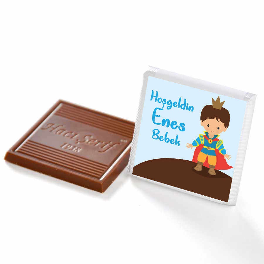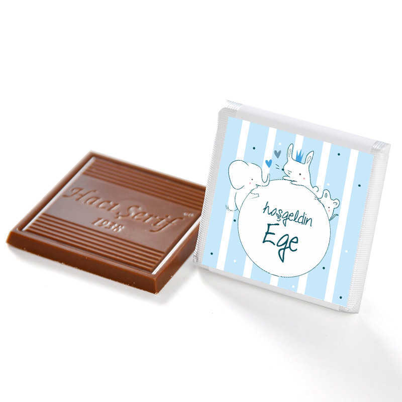 Eğer çikolataların üzerindeki etikette isim yazılmasını istiyorsanız, bebeğin ismini ürün sayfasındaki bebeğin adı kısmına veya ödeme sayfası > kargo seçimi bölümünde not olarak ekleyebilirsiniz.