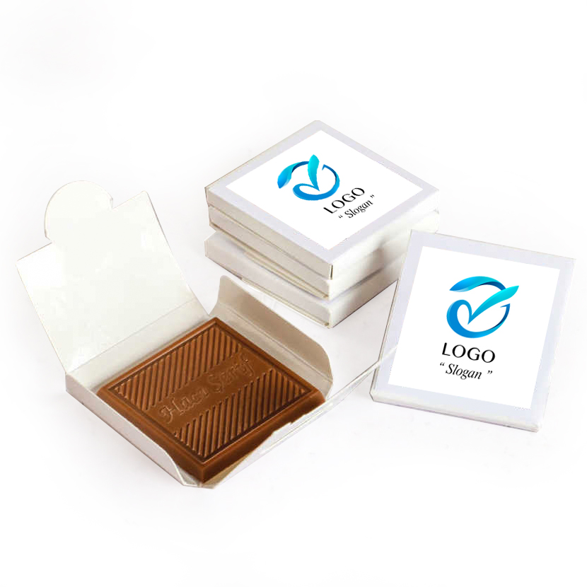 Çikolatalar üzerinde firmanıza özel kare boyutlarda yapılmış çalışmanız bulunacaktır.