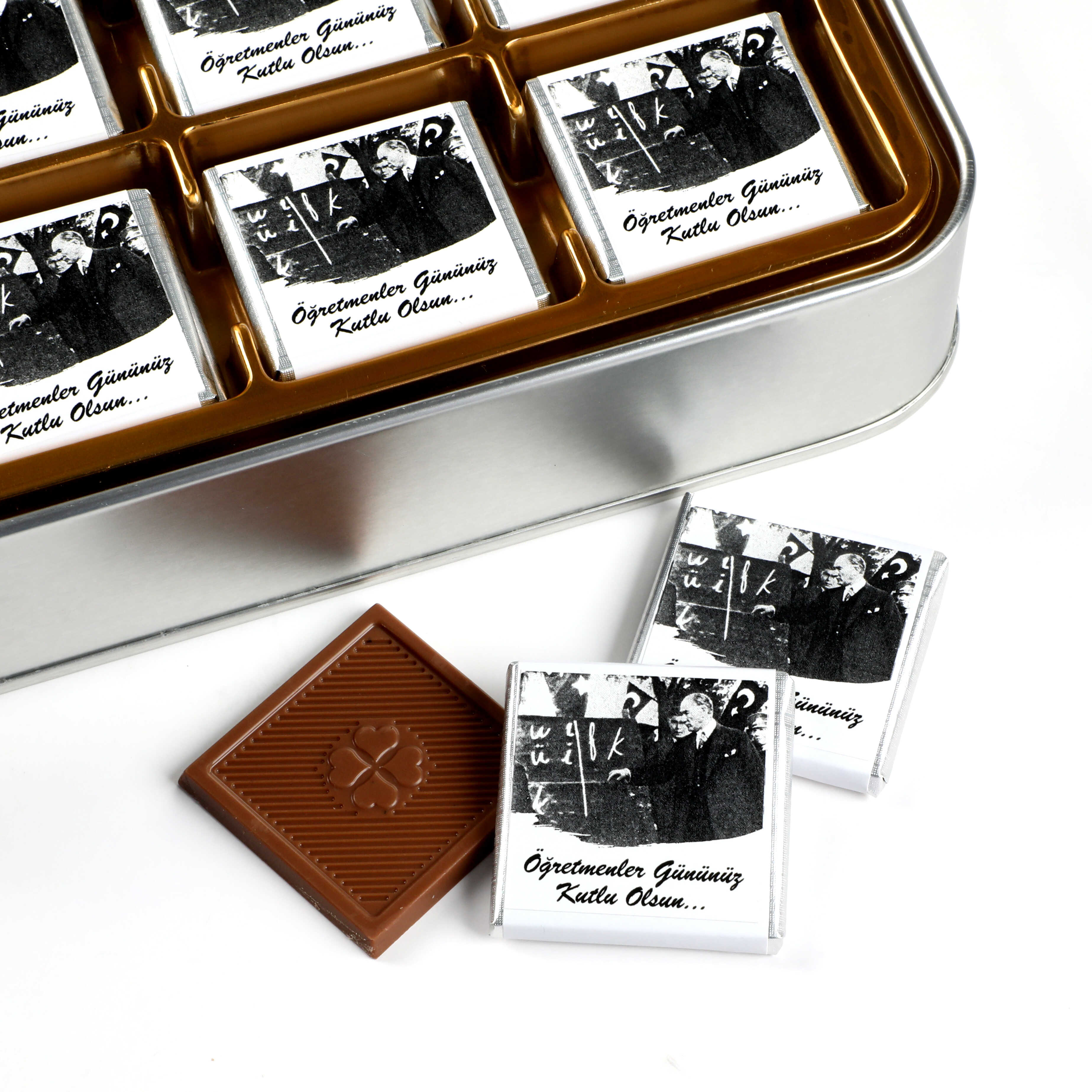 Kapak bölümünde yükleyeceğiniz fotoğraf ve "Öğretmenler Gününüz Kutlu Olsun" mesajı ayrıca Öğretmeninizin ismi eklenir. Madlen çikolatalar üzerinde Atatürk fotoğrafı ve "Öğretmenler Gününüz Kutlu Olsun" mesajı bulunmaktadır.