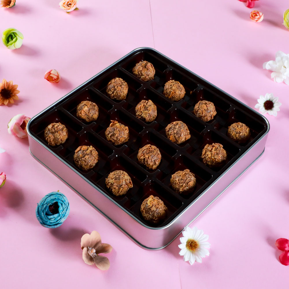 Metal kutu içinde 16 adet tahinli truffle çikolata (Toplam 180gr) bulunmaktadır.