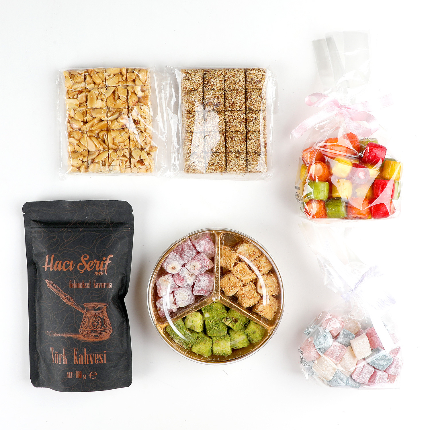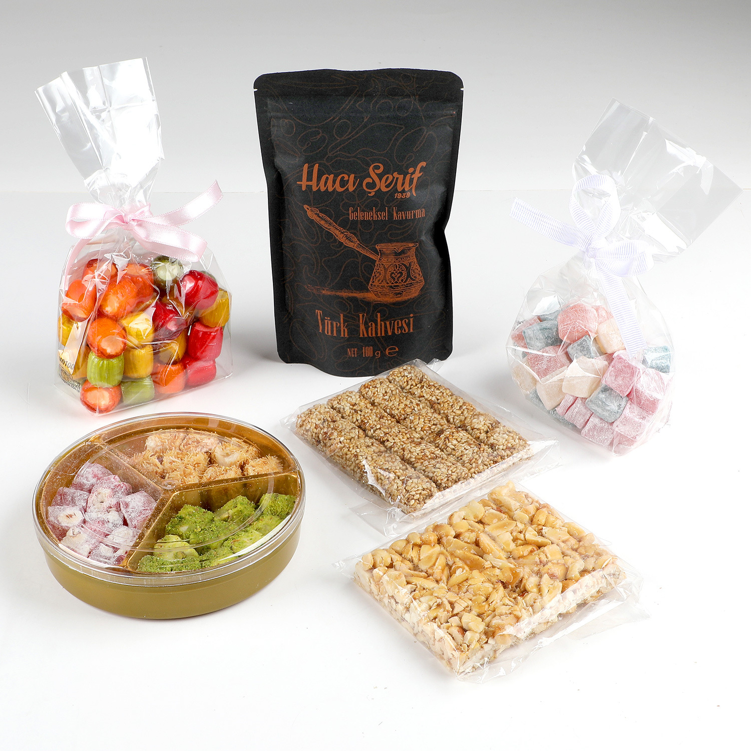 40 Yıllık Hatırın Başlangıcı: Geleneksel Türk Kahvesi (100g) Ve bu muhteşem şöleni taçlandıracak o son dokunuş... En kaliteli Arabica çekirdeklerinden, tam kıvamında kavrulup incecik çekilmiş, mis gibi kokusuyla başınızı döndürecek bir Türk kahvesi. Bol köpüklü bir fincan kahve, bu tatlıların yanında sohbetlerinizi daha da derinleştirecek.
