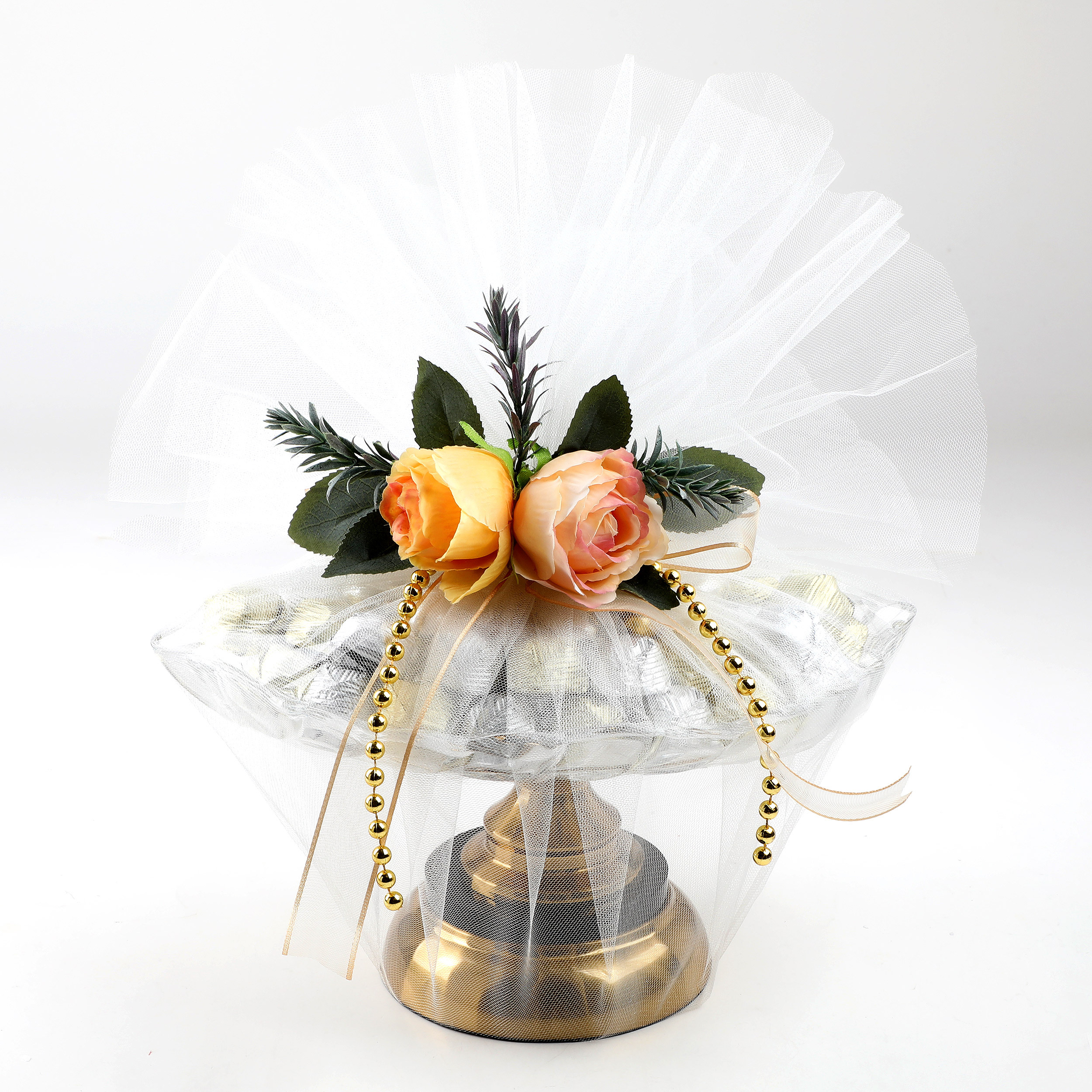 Gold Ayaklı Yaprak Cam Tabak Söz Nişan Kız İsteme Çikolatası