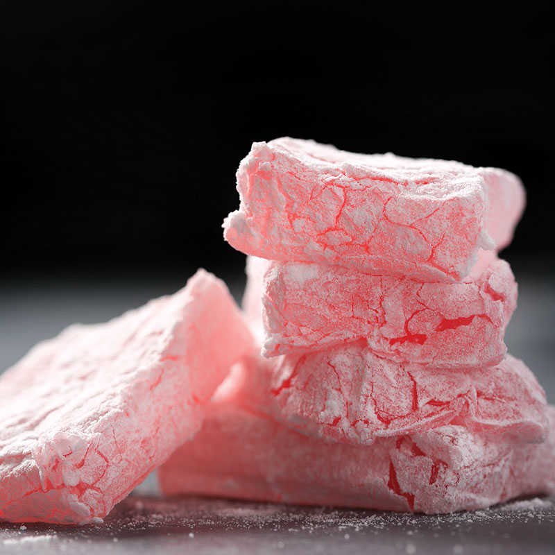Şeker, Su, Mısır Nişastası, Asitlik Düzenleyici Sitrik Asit (E 330), Aroma Vericisi(Gül),Renklendirici(Kırmızı Turp Ekstraktı) Üzeri Pudra Şekeri İle Kaplıdır.