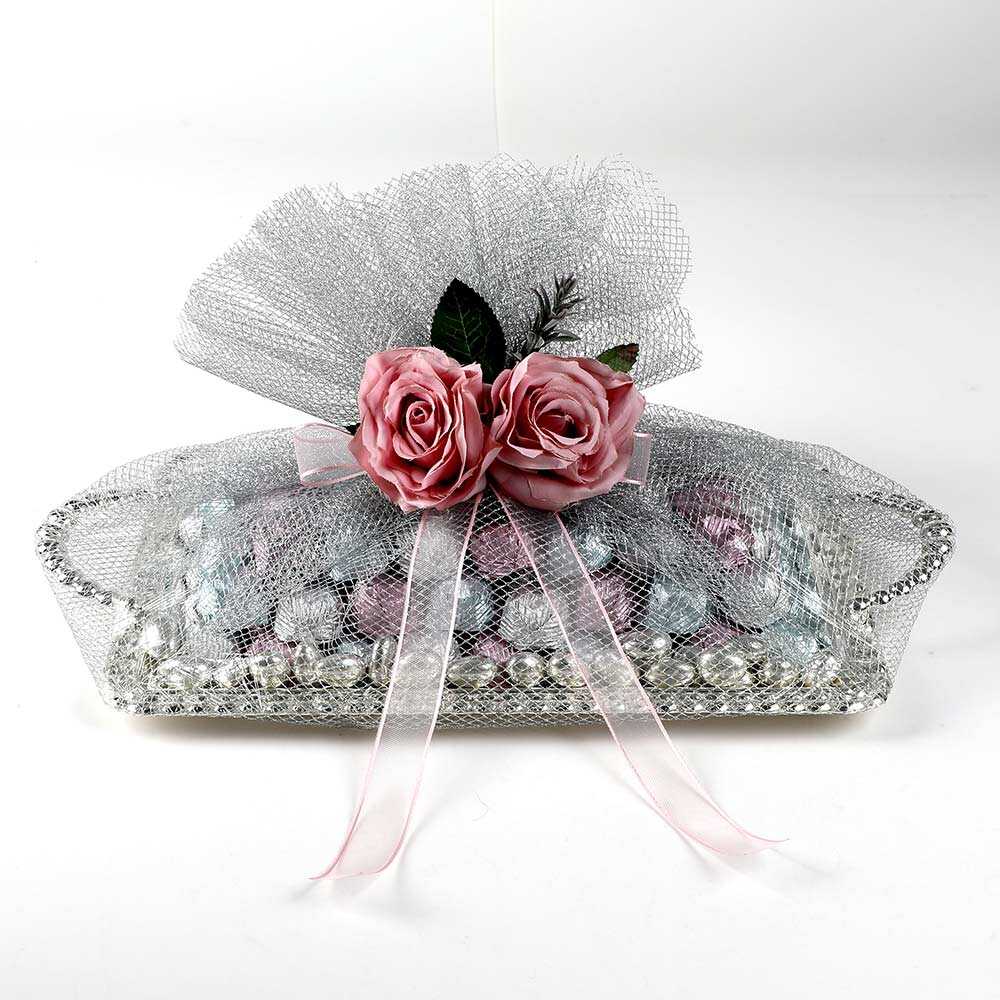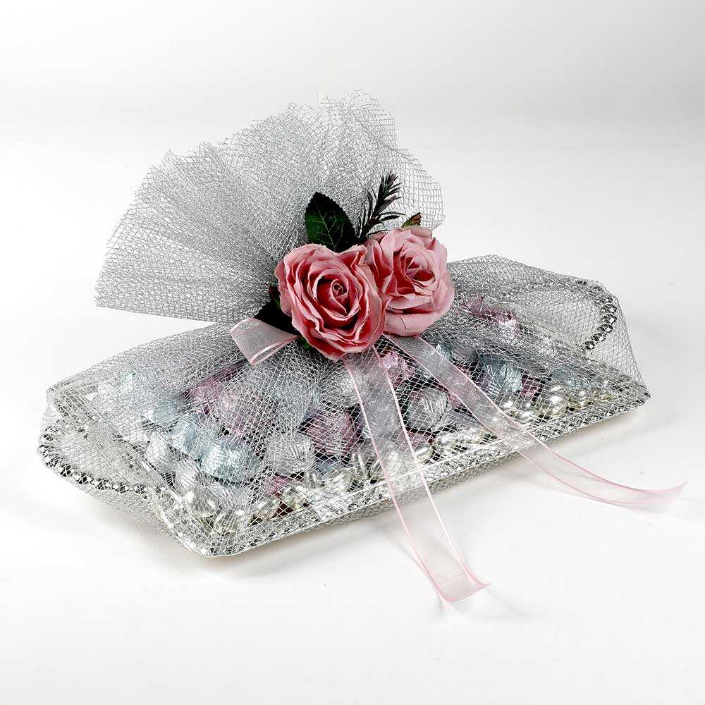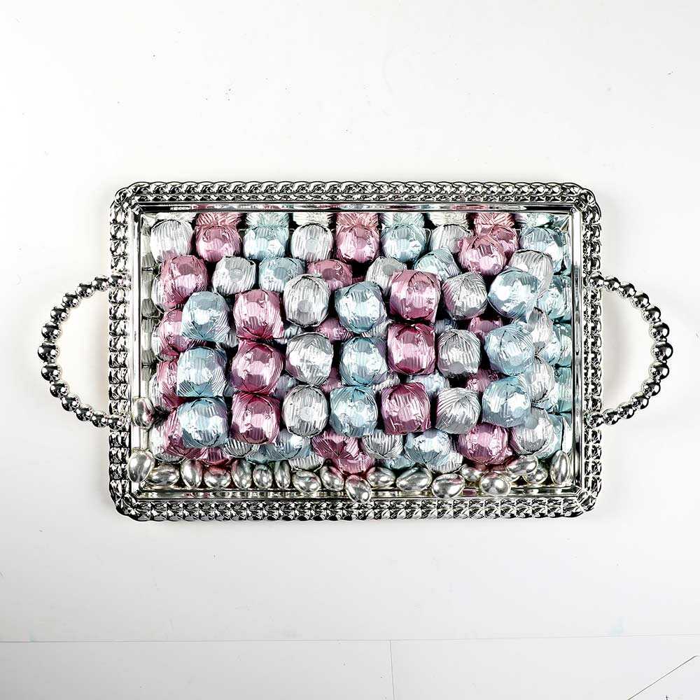 Gümüş Tepside Kristal Kız İsteme Söz Nişan Çikolatası