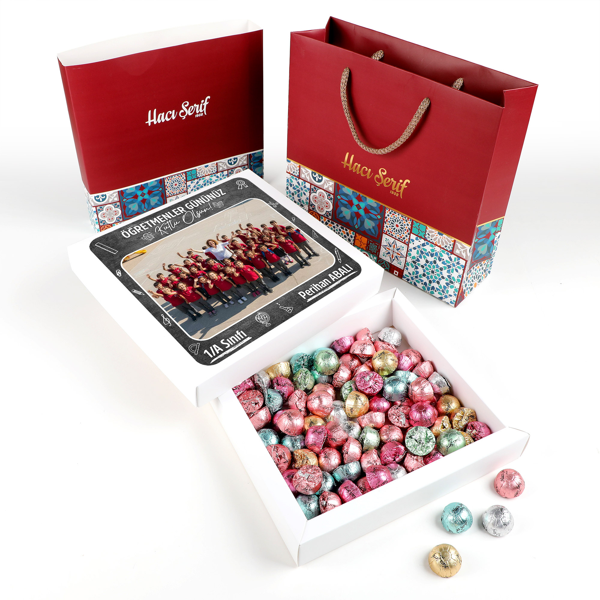 Gelince Haber Verİçerik : 450g Çikolatin (ortalama74-75 adet) Üzerinde Öğretmenler Gününe özel çalışması ile birlikte gönderilir.
