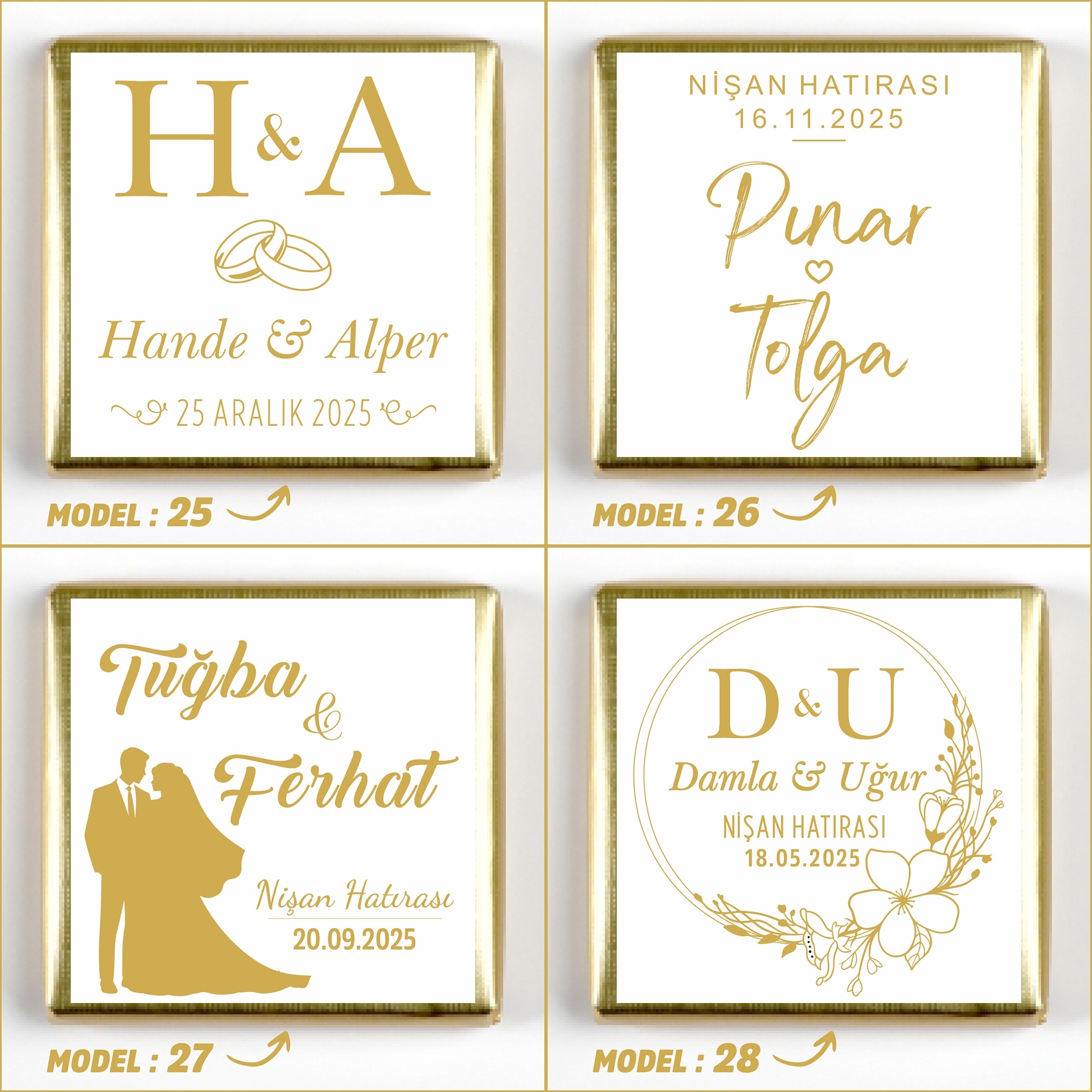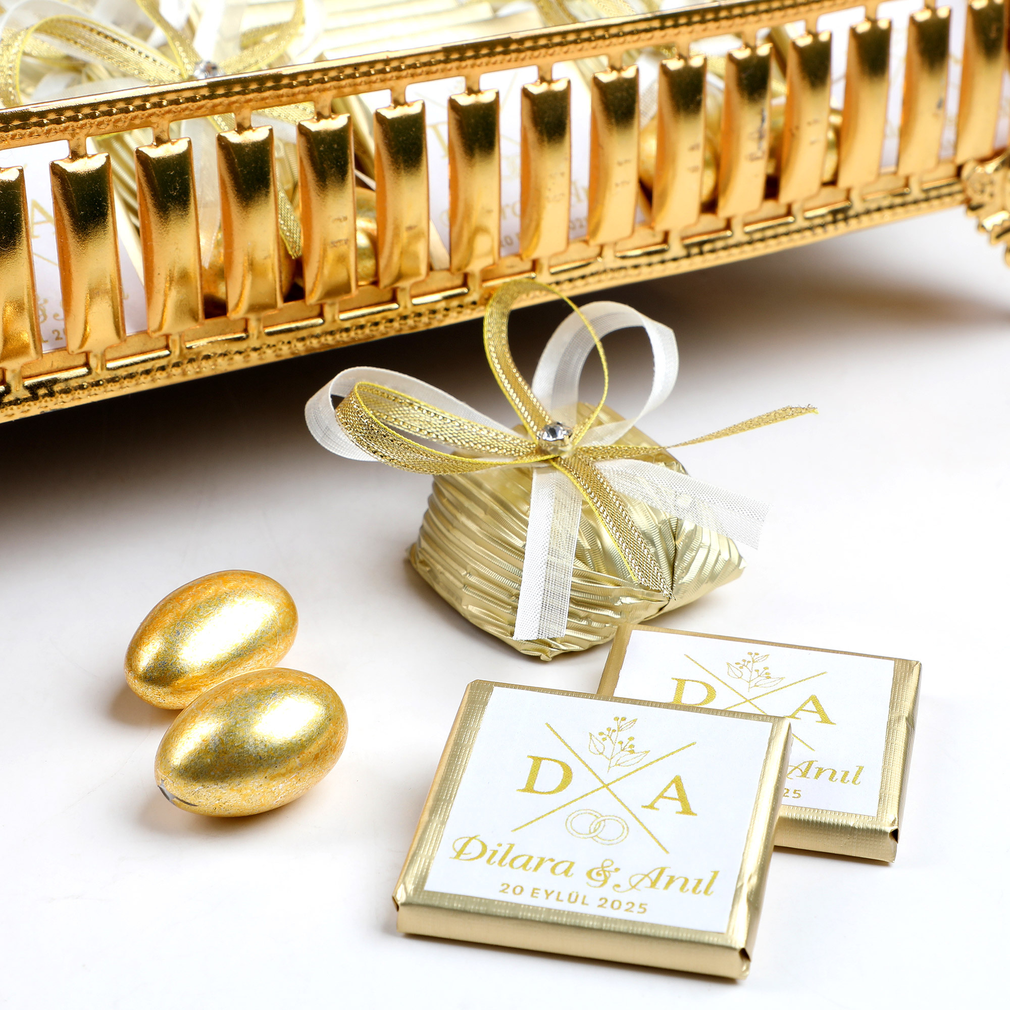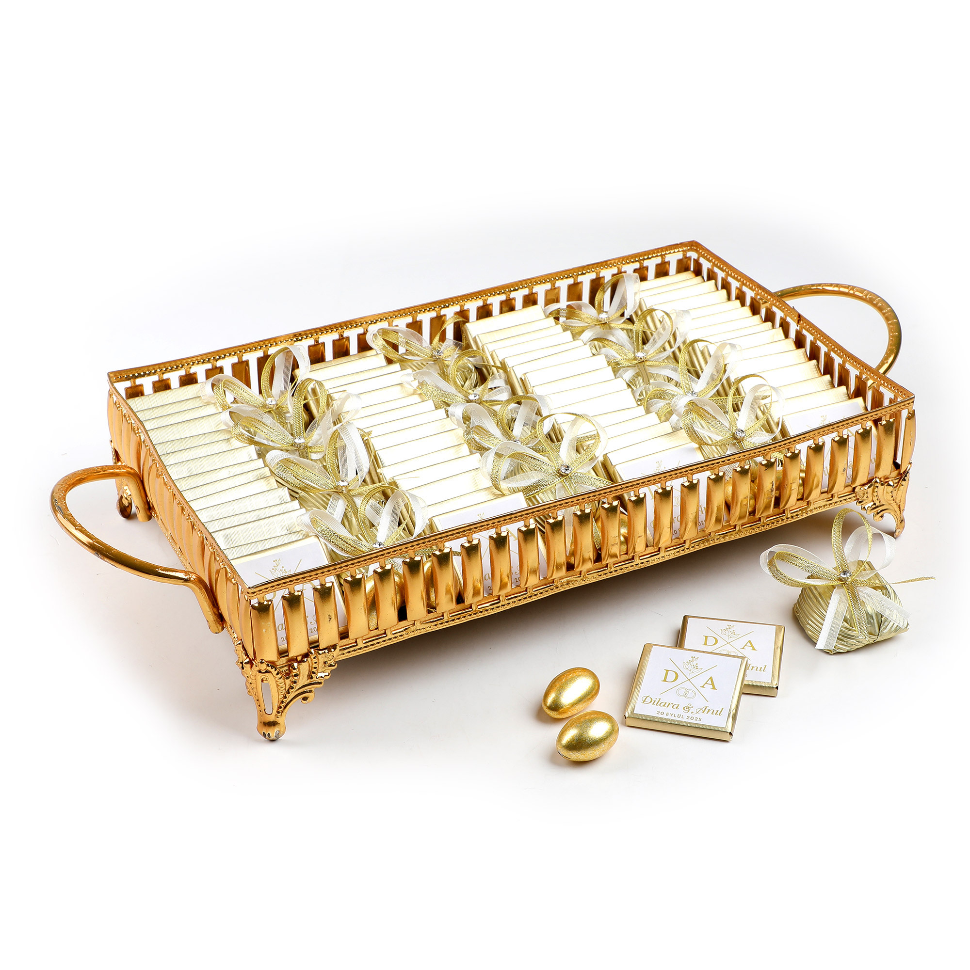 İsimli Gold Dikdörtgen Aynalı Tepsi Söz Nişan Çikolatası