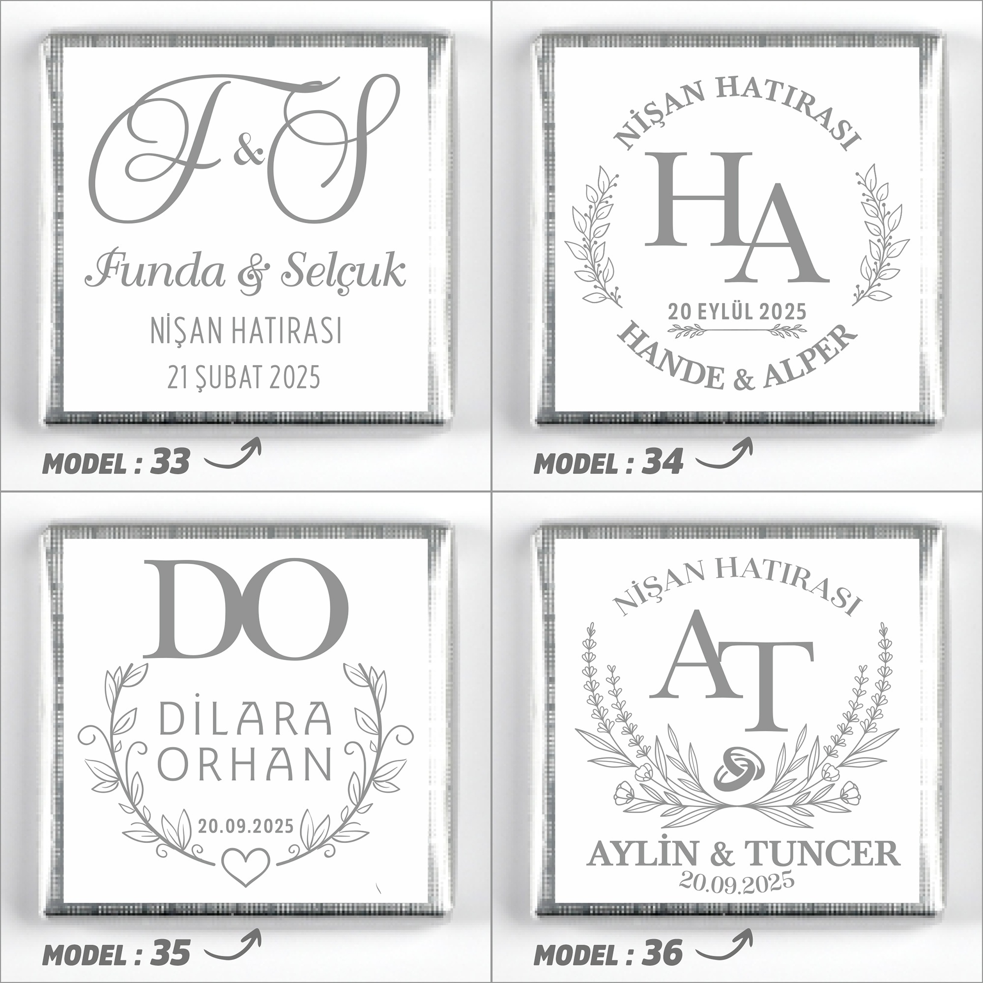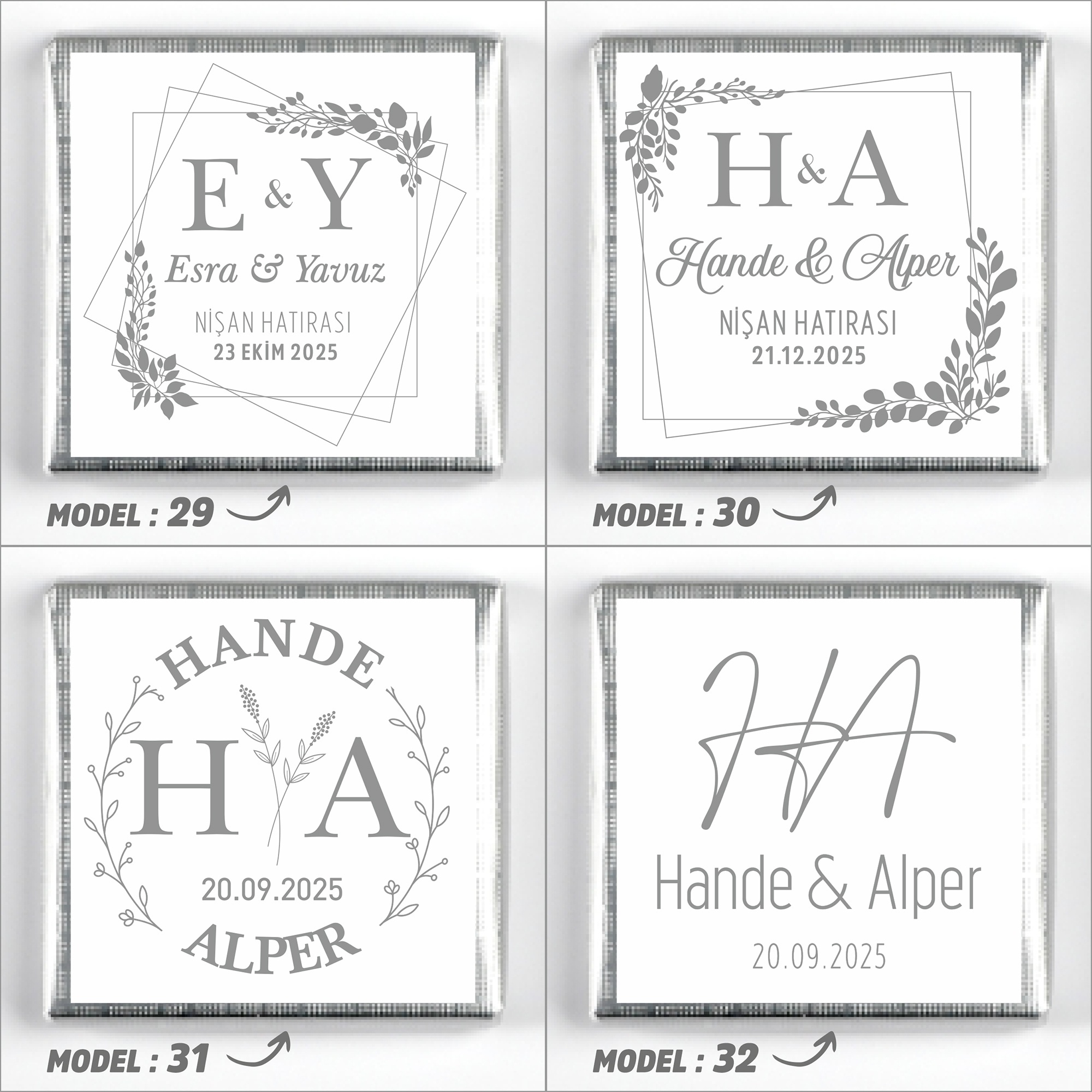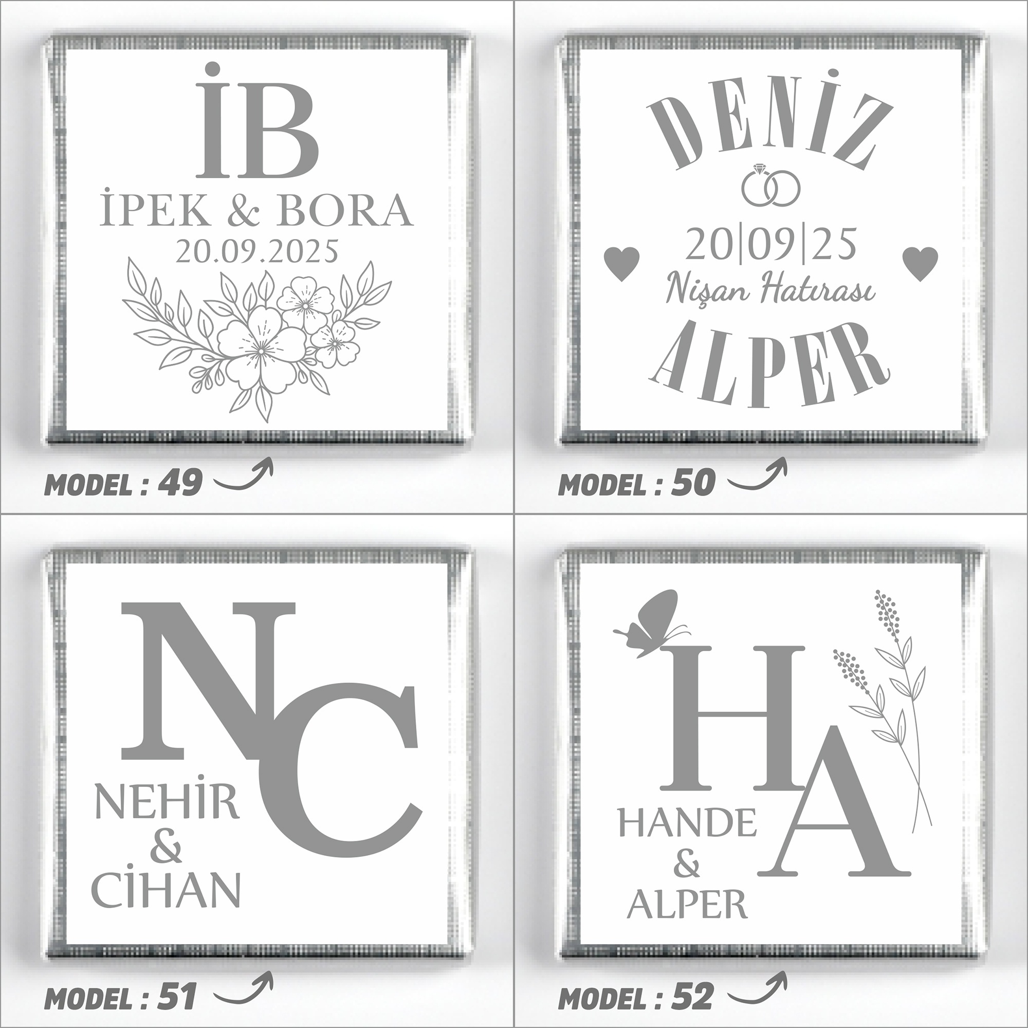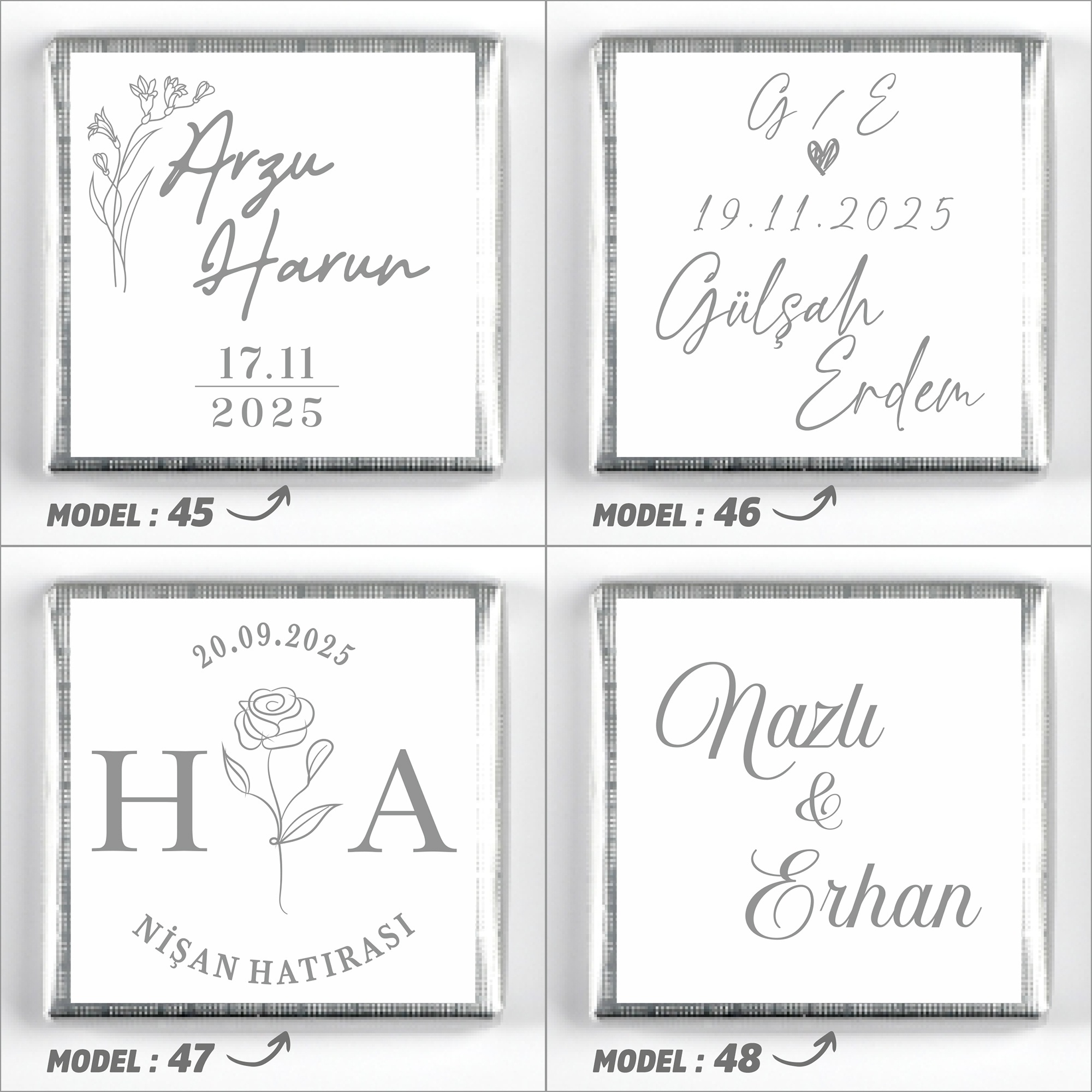 İsimlerinizi, tarih bilgisini ve model seçimini ürün sayfasındaki ilgili kutucuklara yazınız.