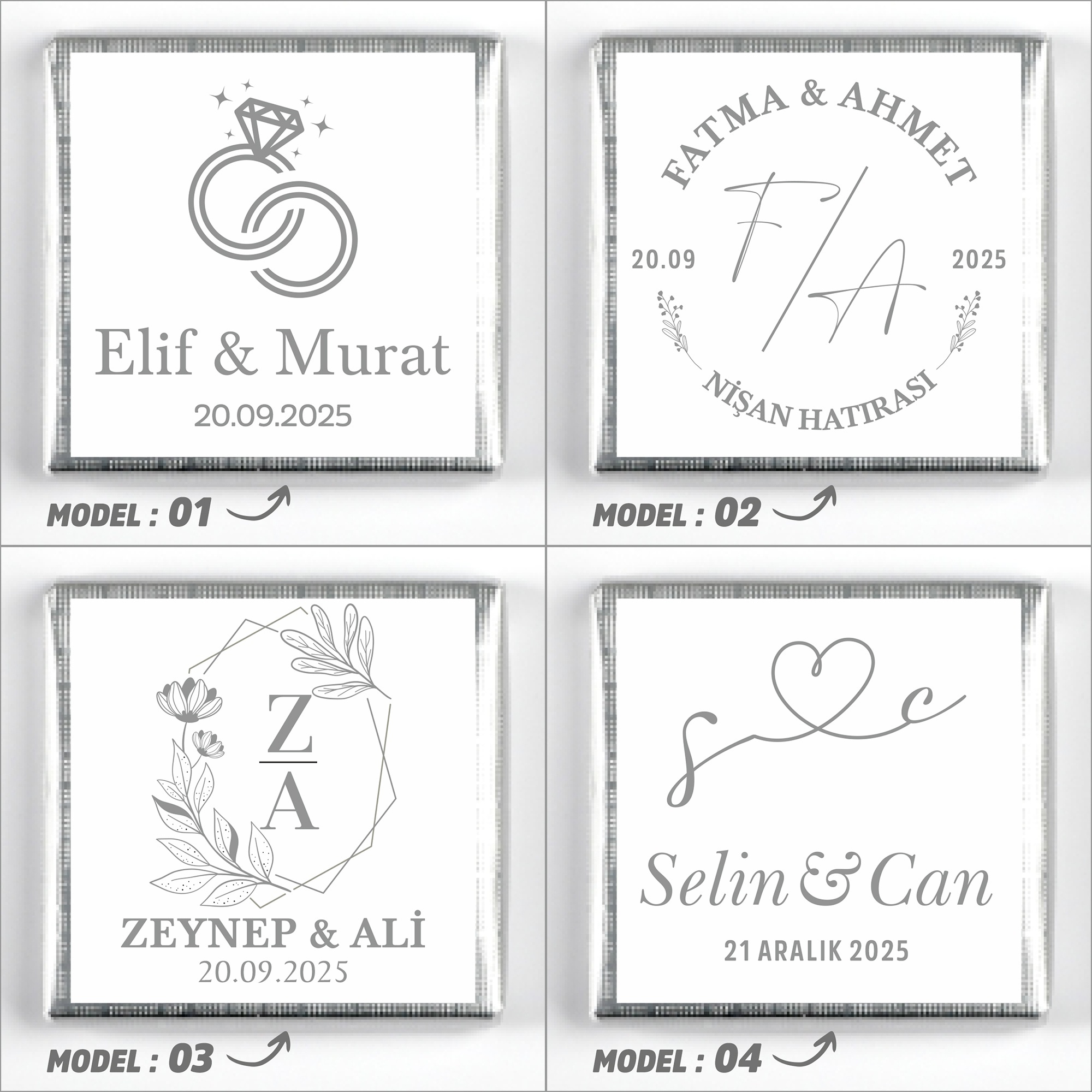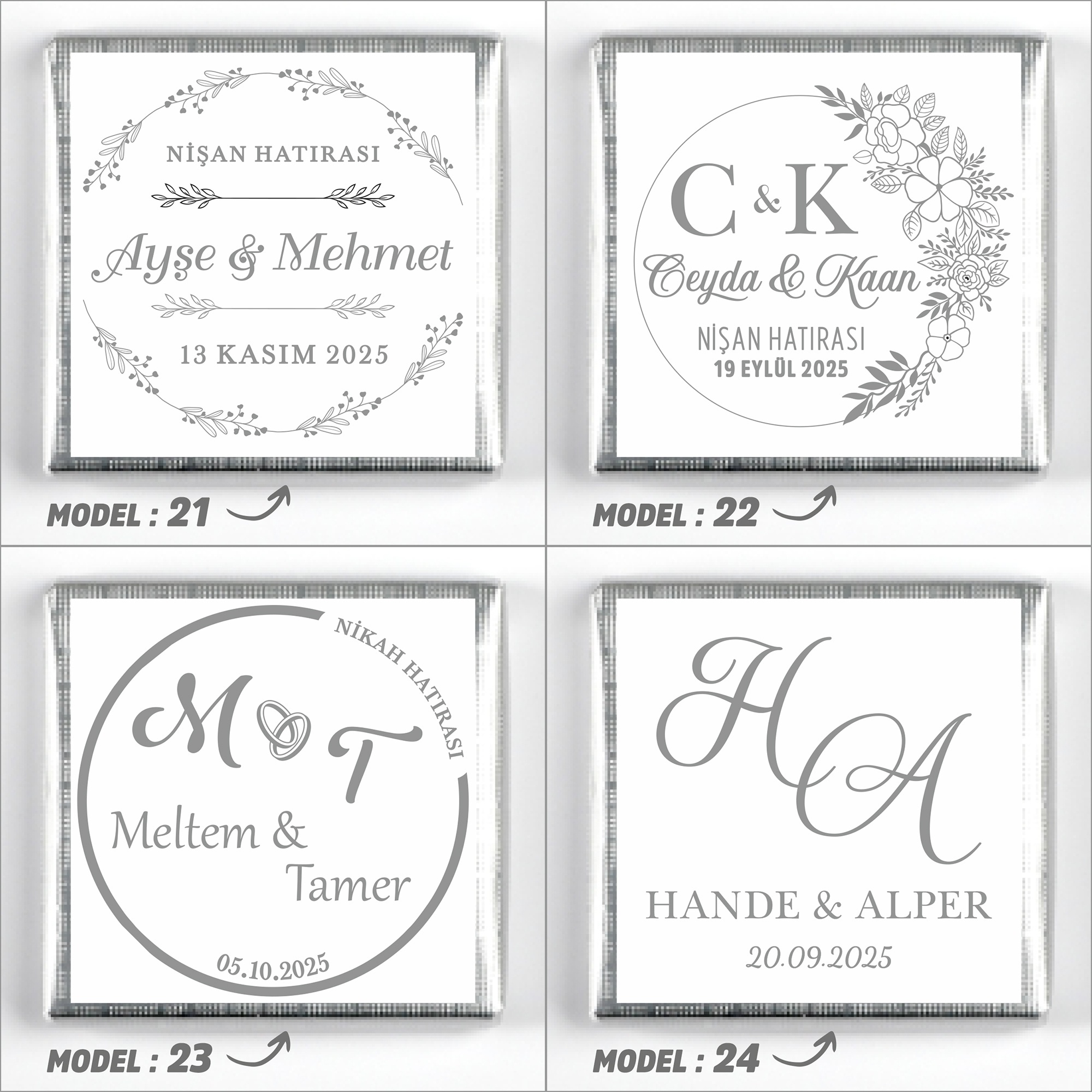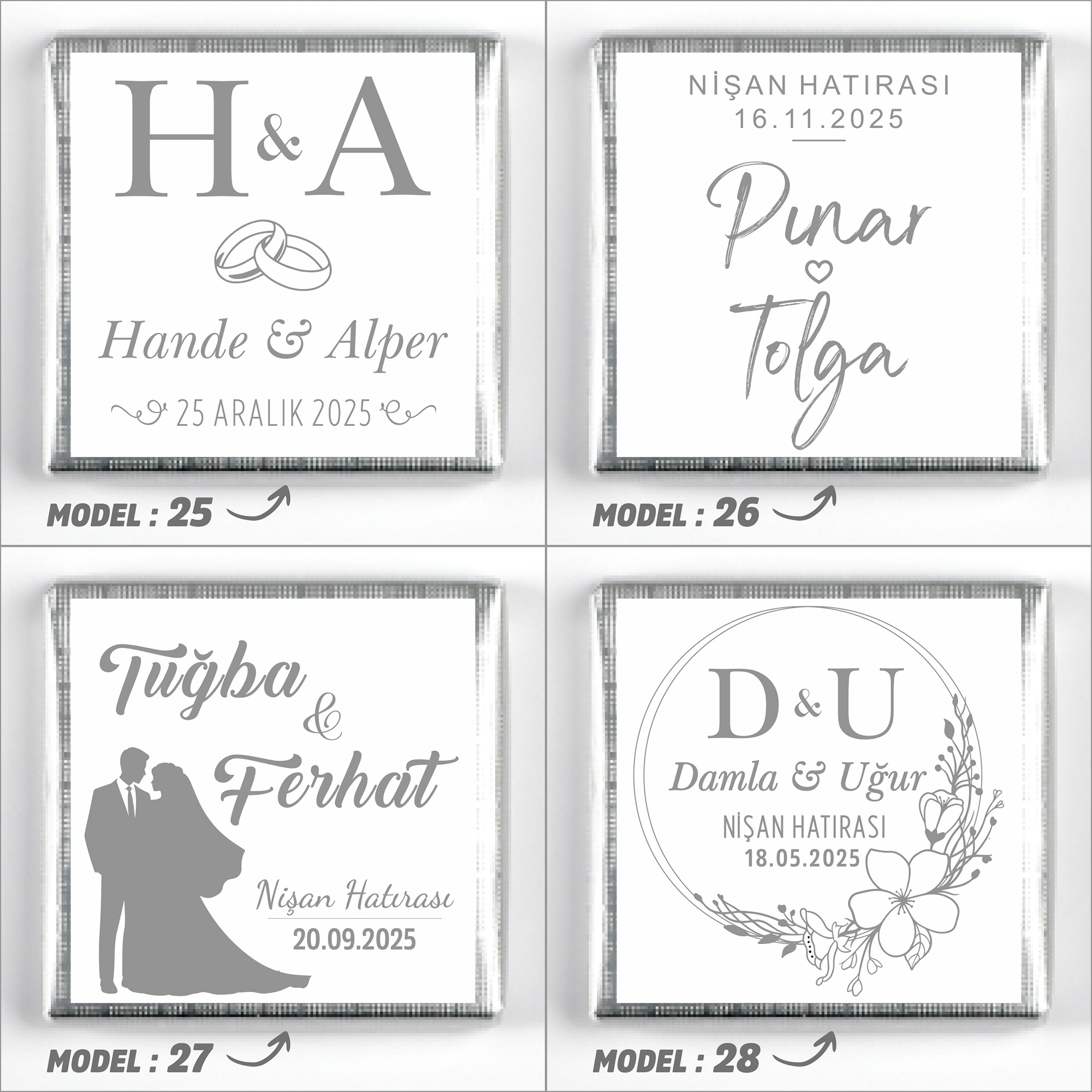 İsimlerinizi, tarih bilgisini ve model seçimini ürün sayfasındaki ilgili kutucuklara yazınız.