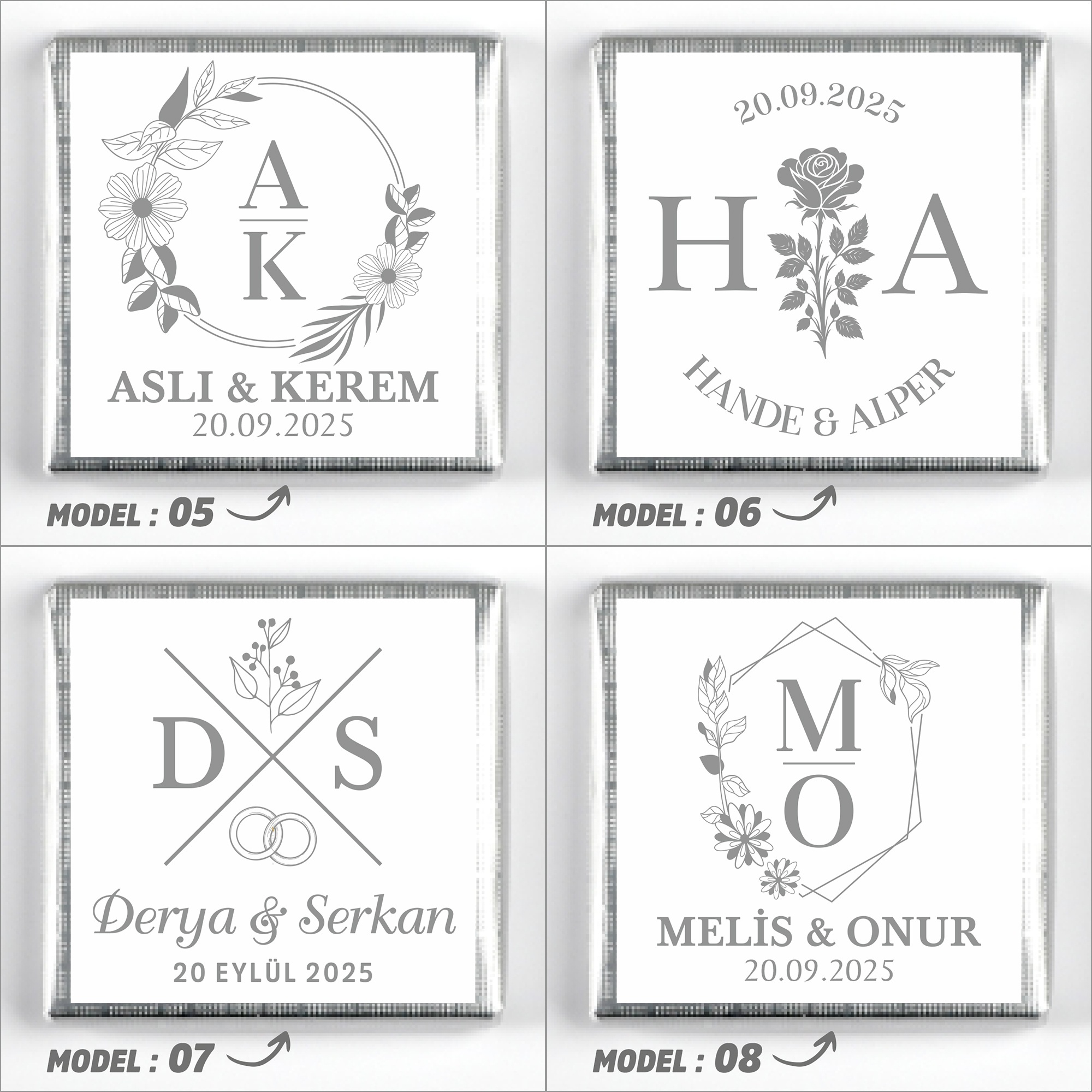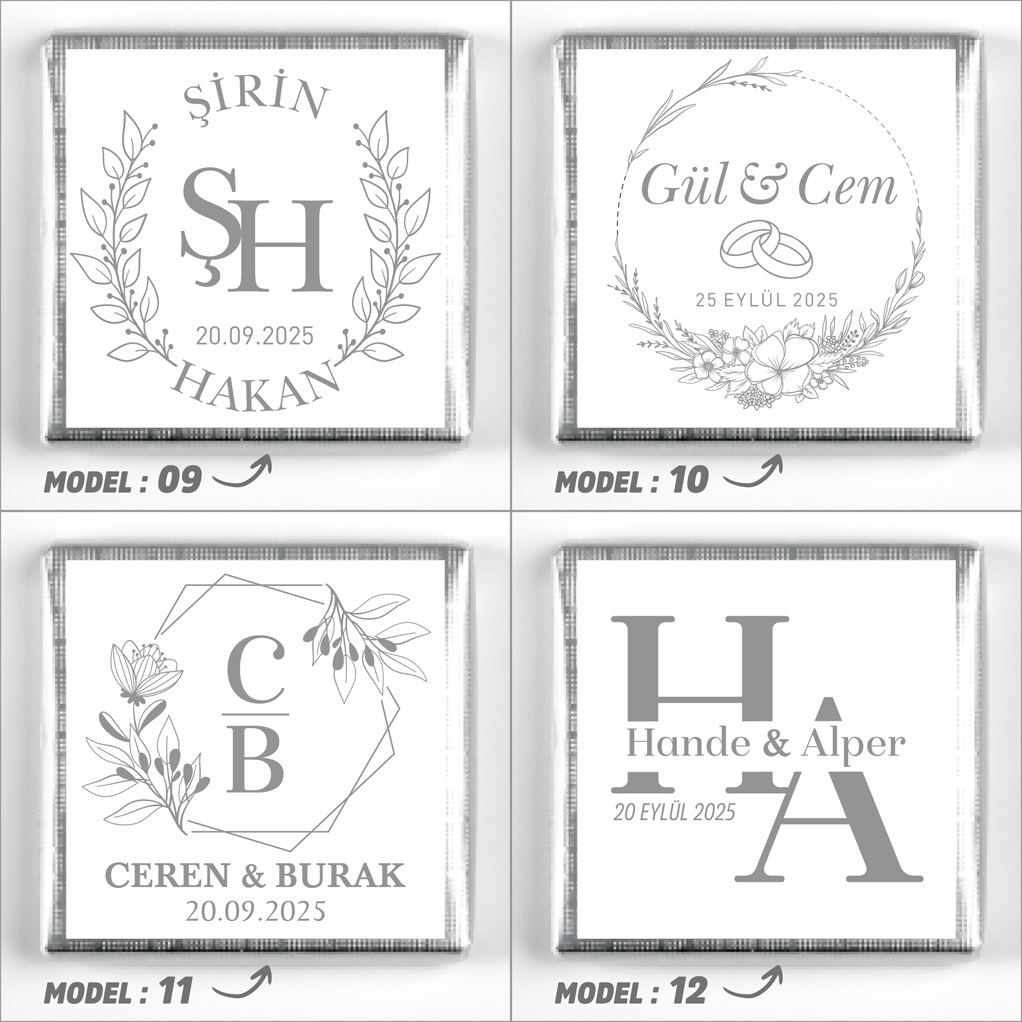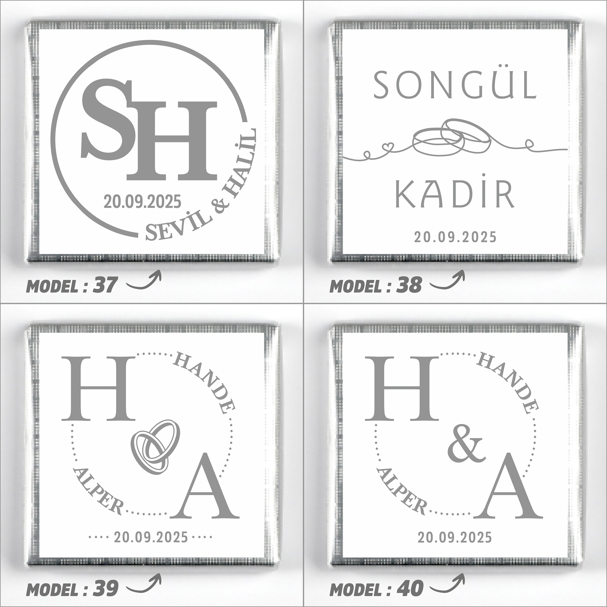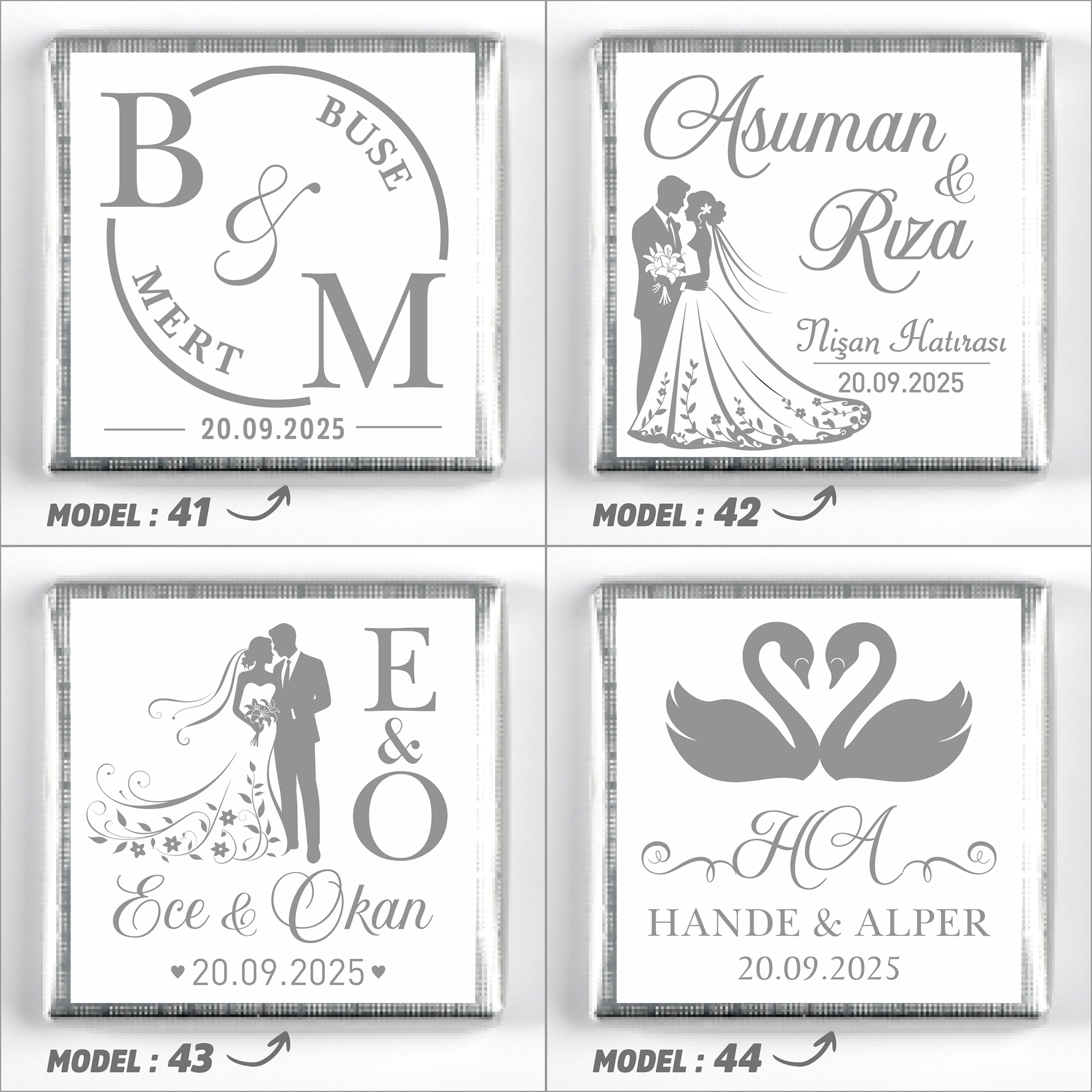 İsimlerinizi, tarih bilgisini ve model seçimini ürün sayfasındaki ilgili kutucuklara yazınız.