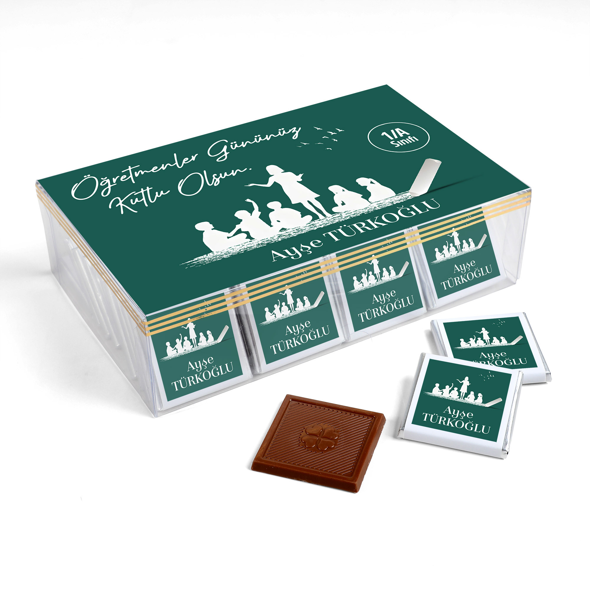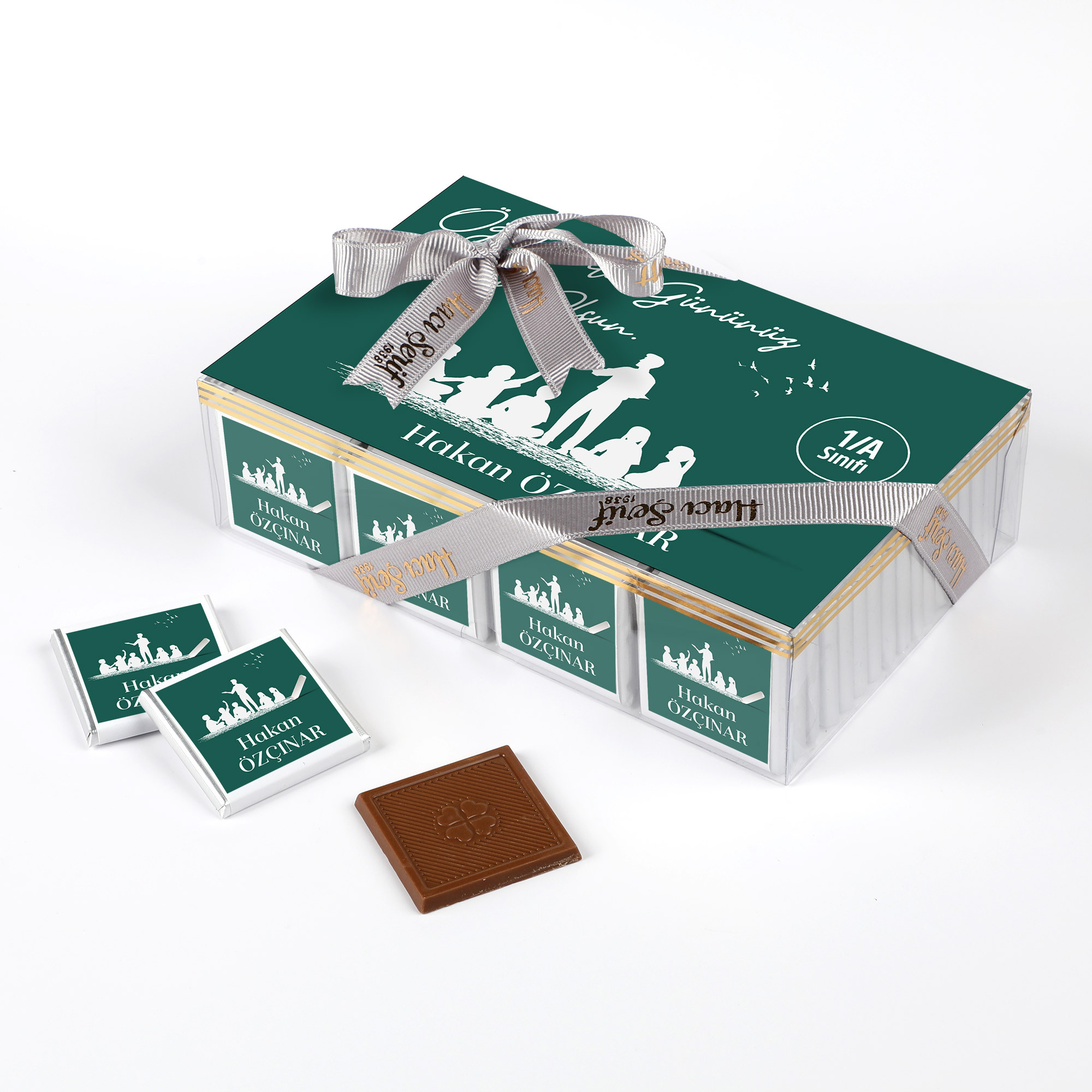 Asetat kapak bölümünde "Öğretmenler Gününüz Kutlu Olsun" mesajı ayrıca Öğretmeninizin ismi ve sınıf eklenir. Madlen çikolatalar üzerine öğretmenin ismi ve sınıf yazılır.