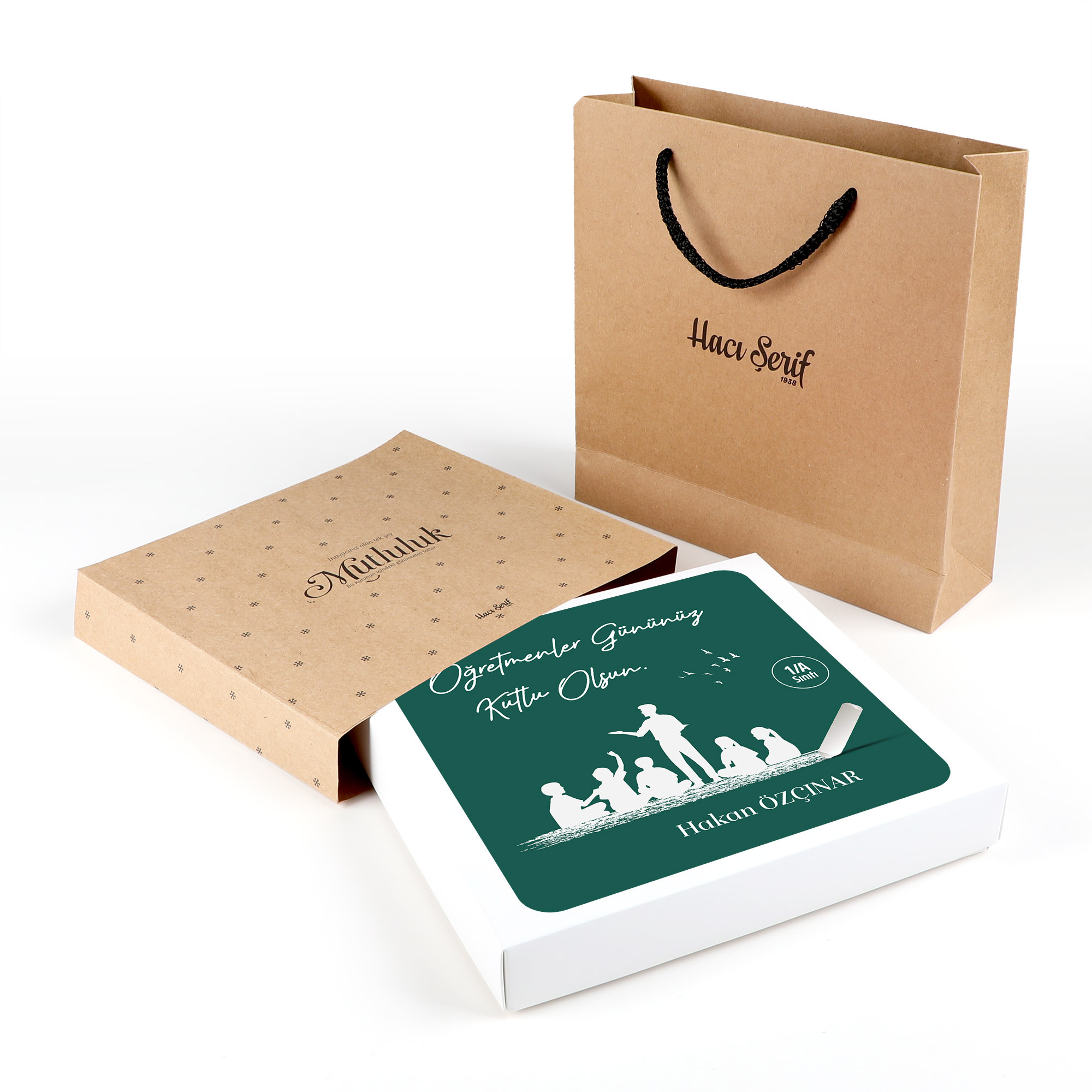 İsimli Öğretmenler Günü Hediyesi Çikolatin 450g Kraft Kutu Çanta