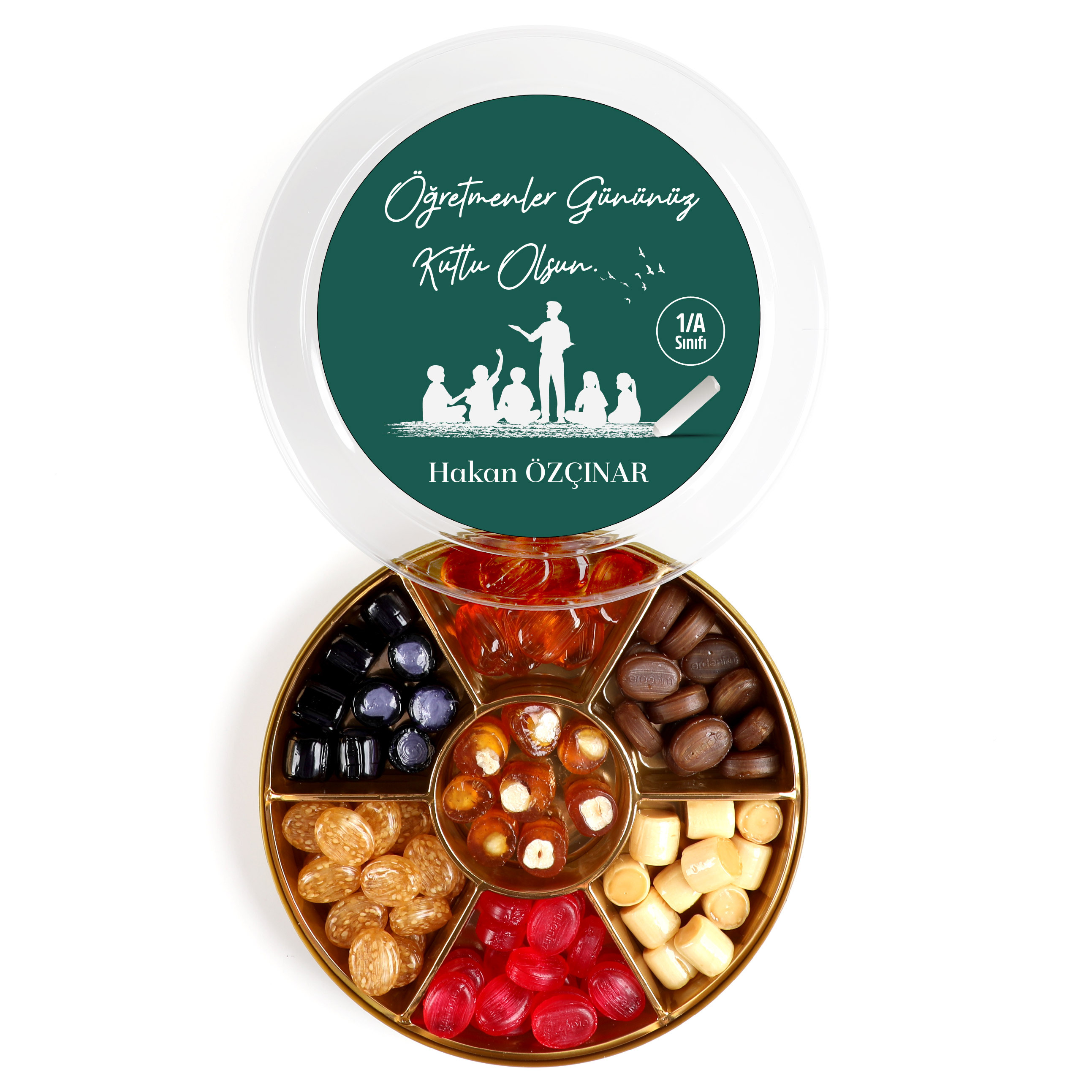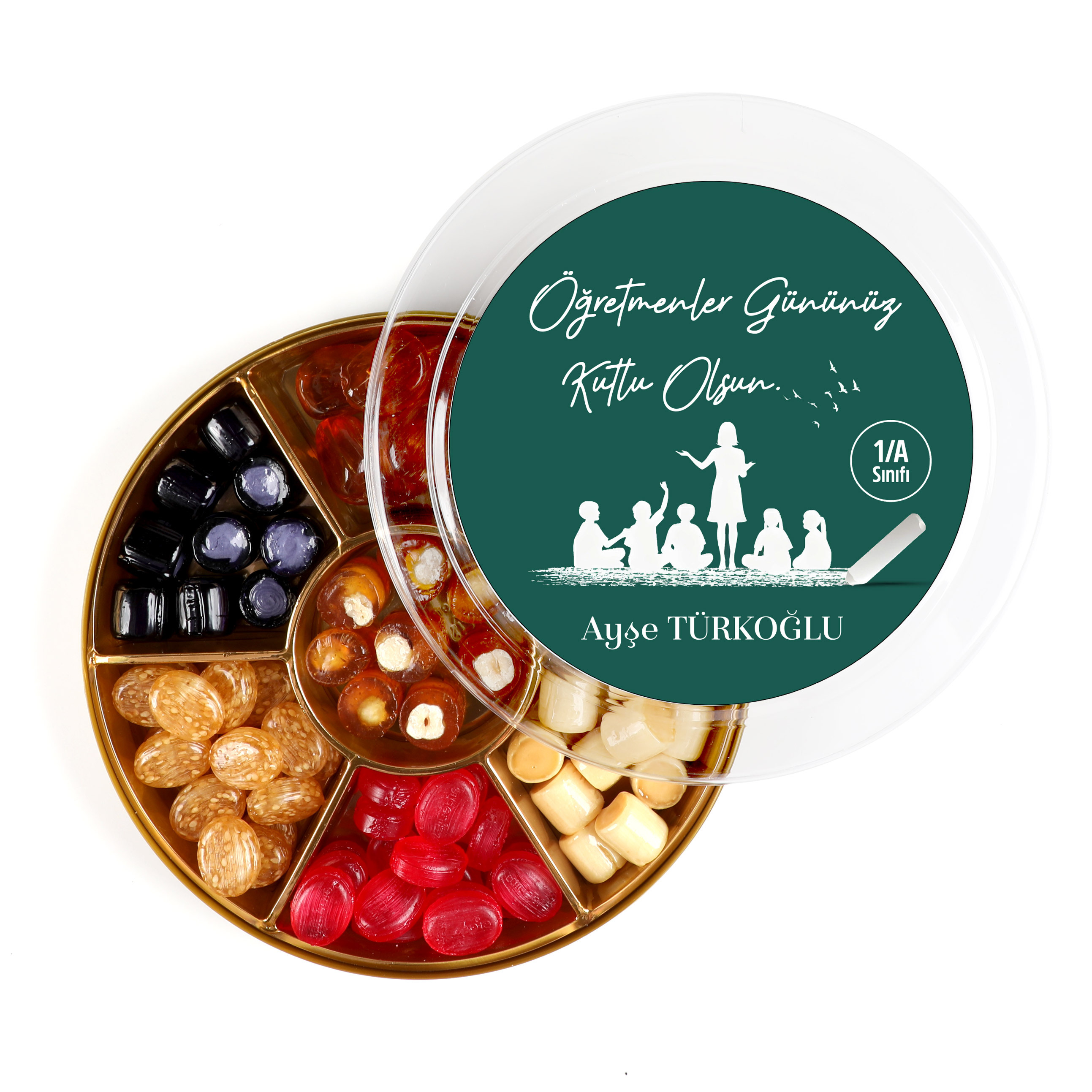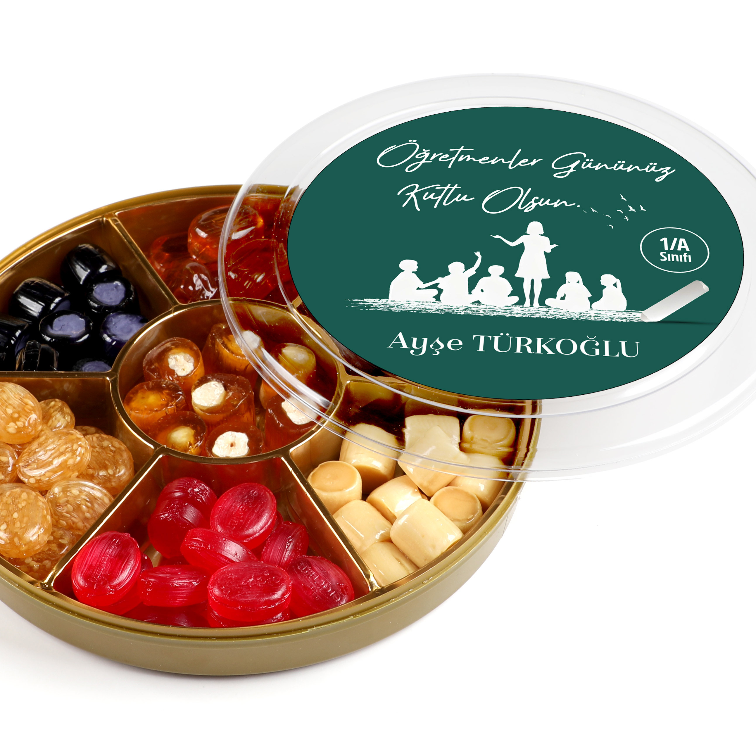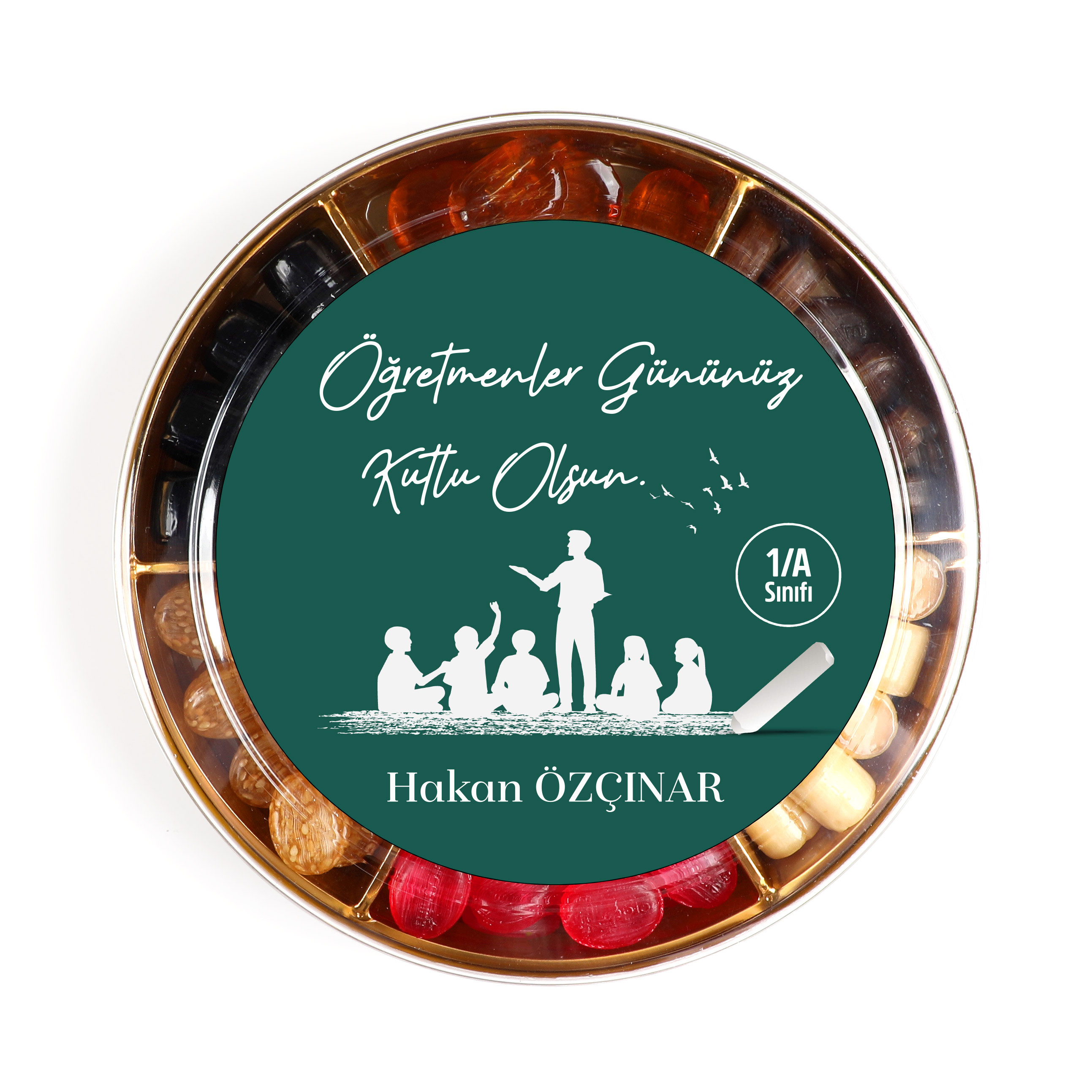 İçerik : Yuvarlak kutuda Karışık Akide Şekeri kapak üzerinde Öğretmenler Gününe özel çalışması ile birlikte gönderilir.