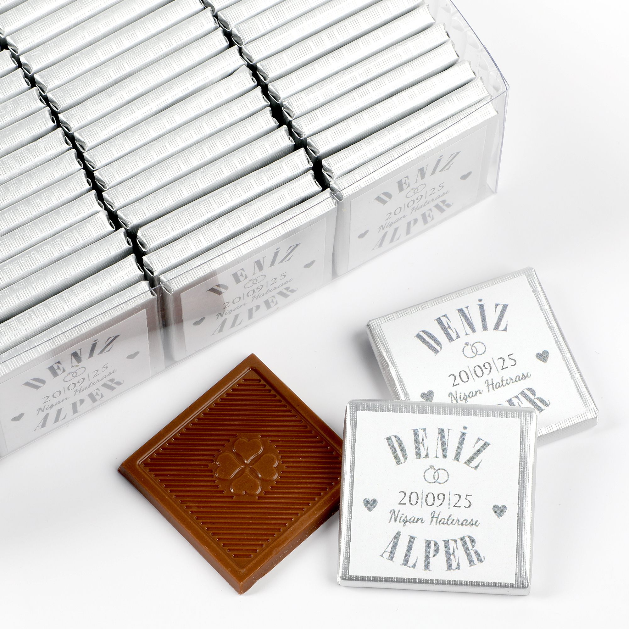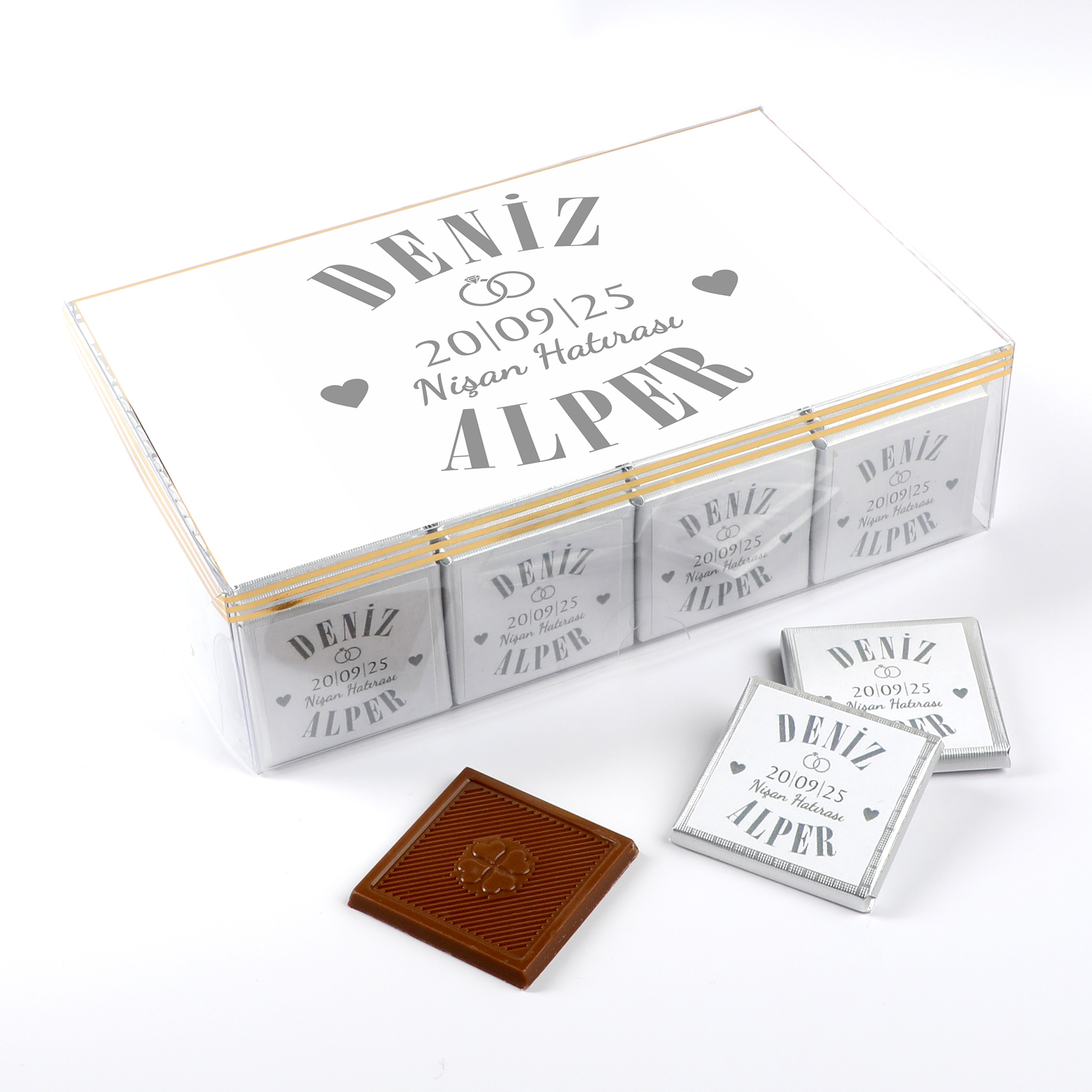 İsimli Söz Nişan 70 Adet Madlen Çikolata (Asetat Kutu) Gümüş