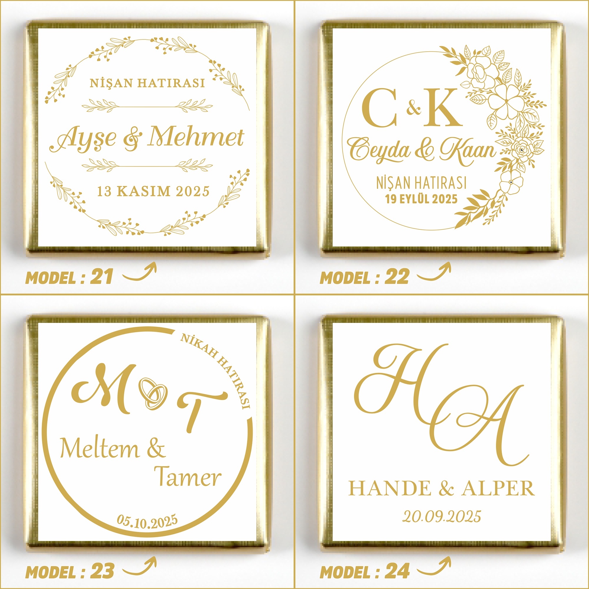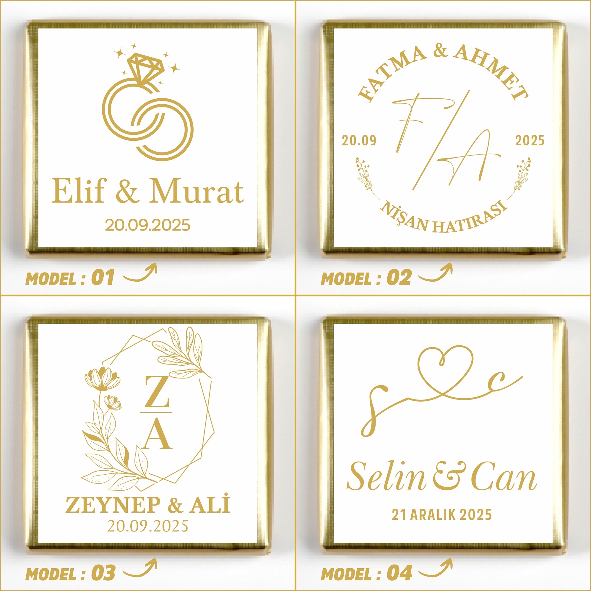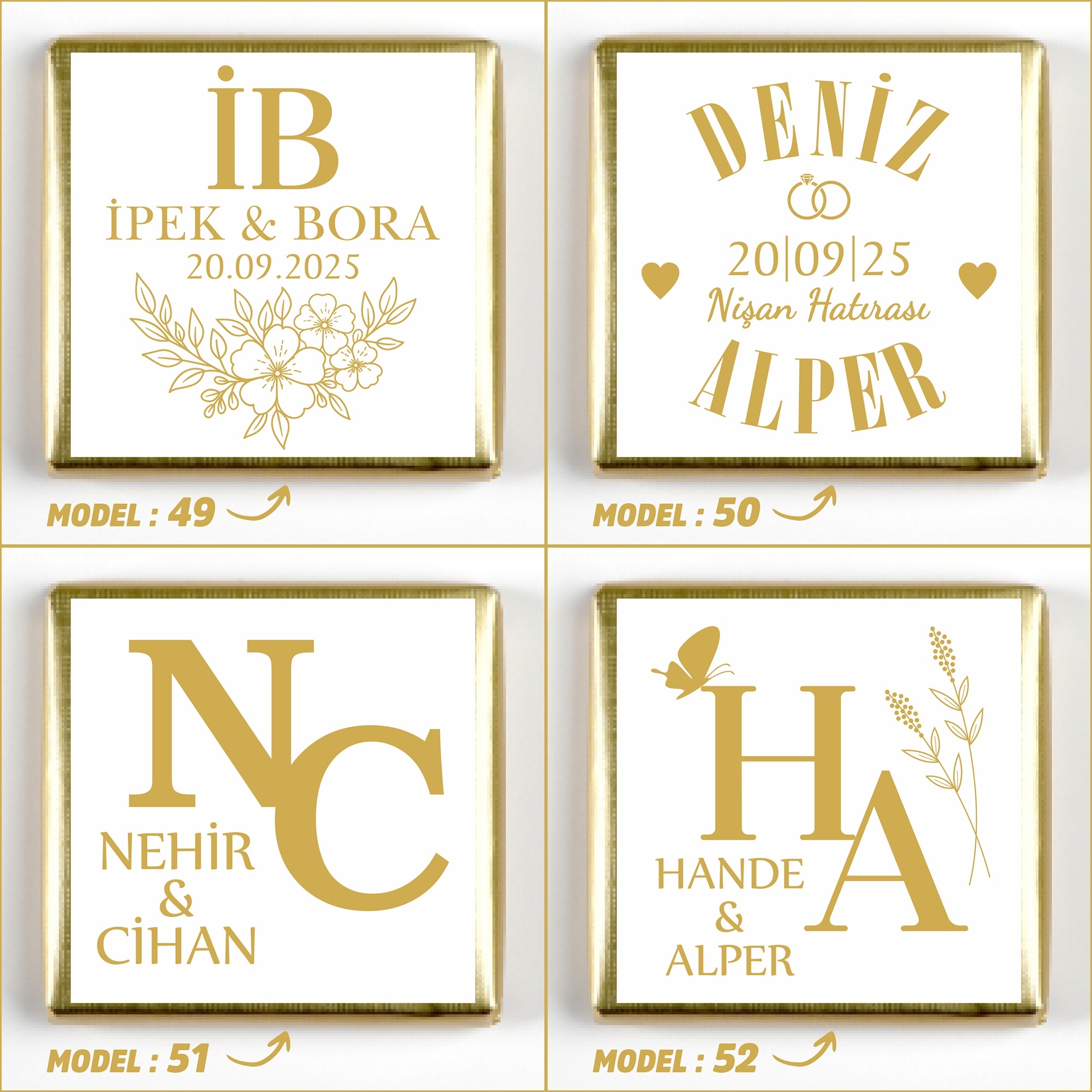 İsimlerinizi, tarih bilgisini ve model seçimini ürün sayfasındaki ilgili kutucuklara yazınız.