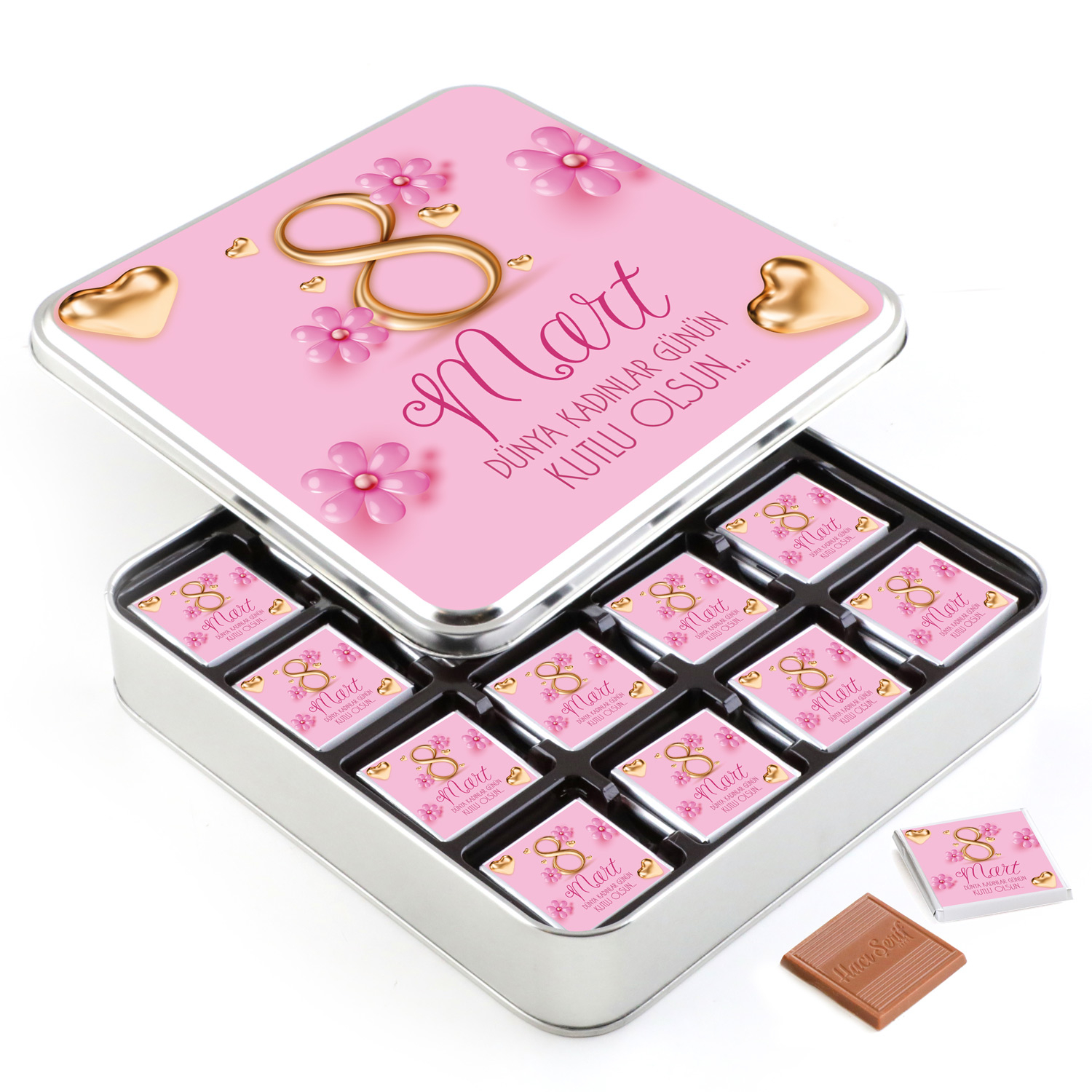 32 adet sütlü madlen çikolata (Toplam 220g) üzerine "8 Mart Kadınlar Günün Kutlu Olsun" mesajı yapıştırılarak Gönderilir.